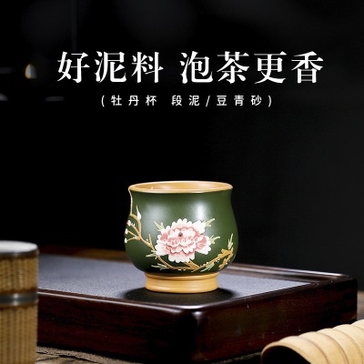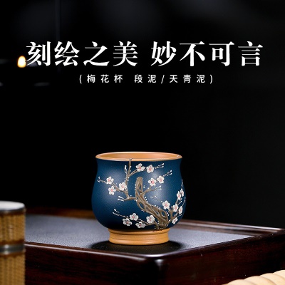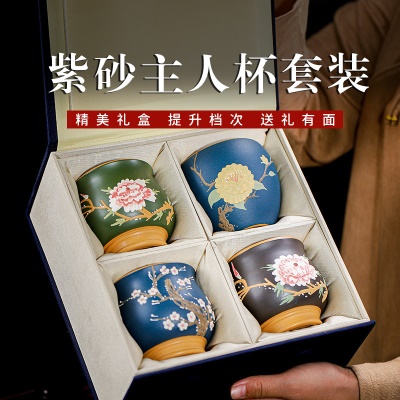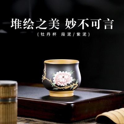 商品名称:宜兴手工紫砂杯百花争艳牡丹黄菊梅花杯主人杯大口品茗杯功夫茶