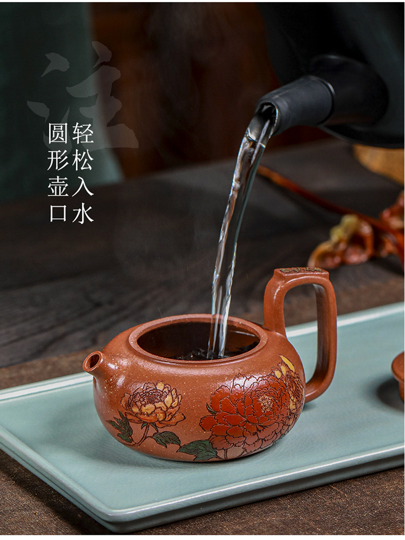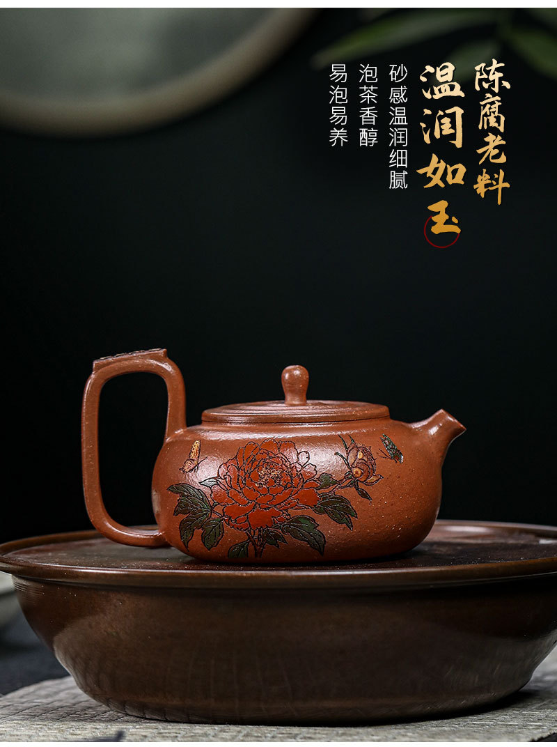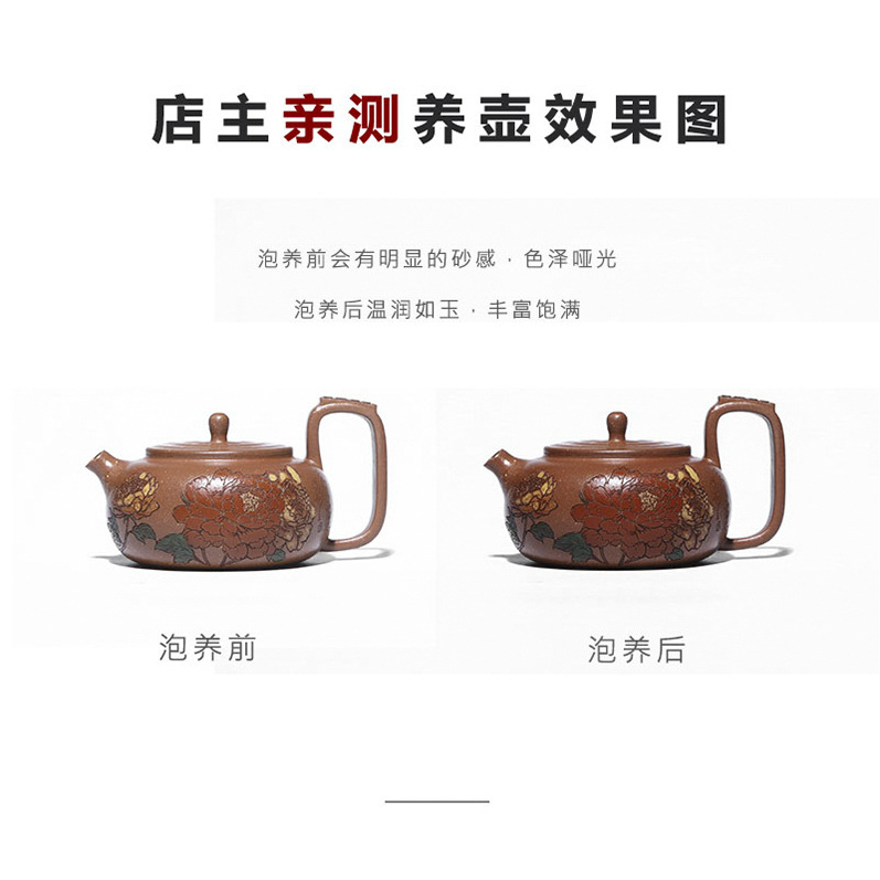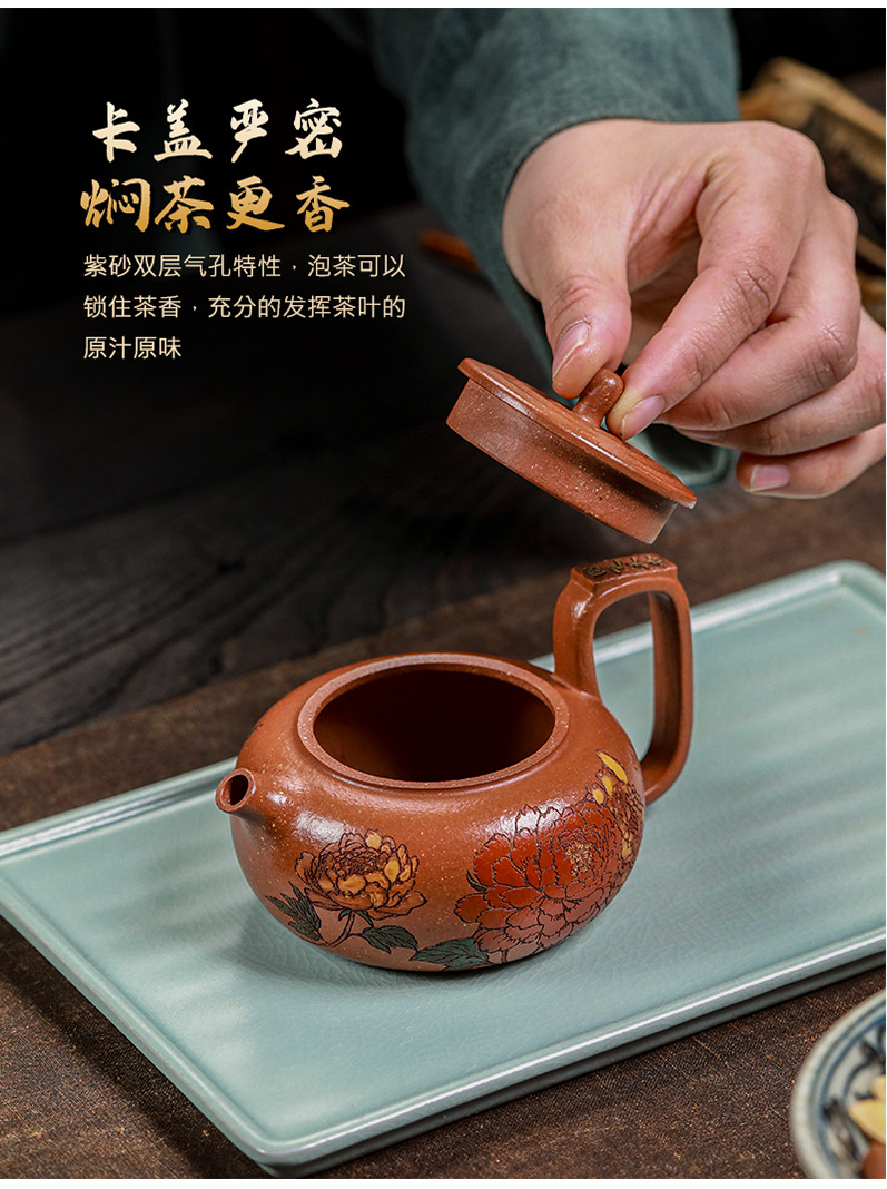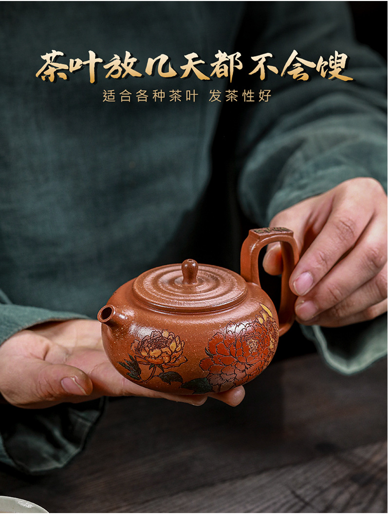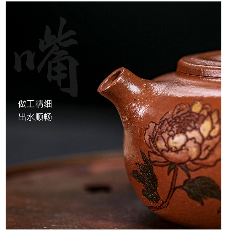 宜兴原矿无添加手工紫砂壶 国色天香 降坡泥 家用茶具茶壶