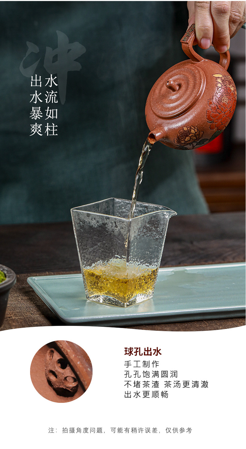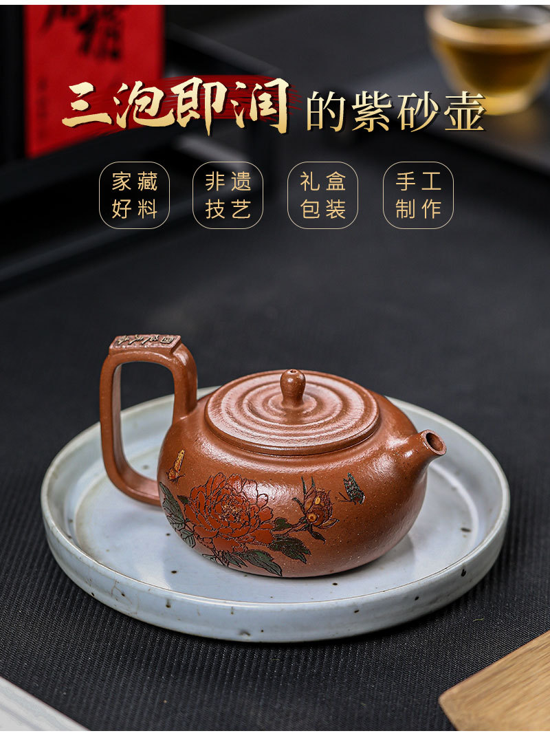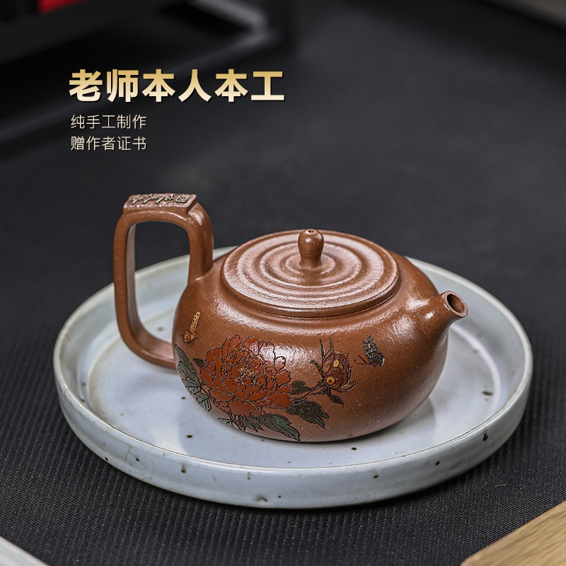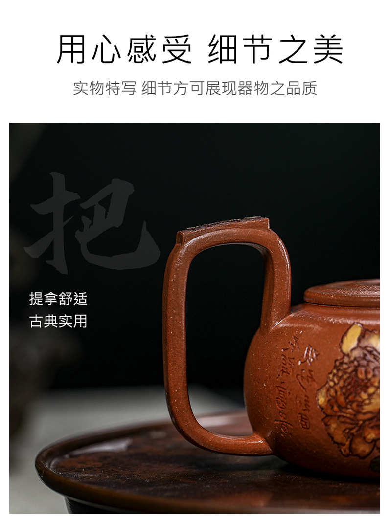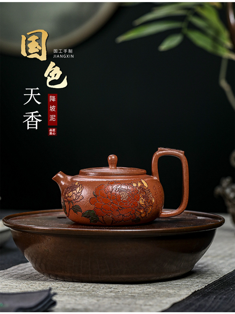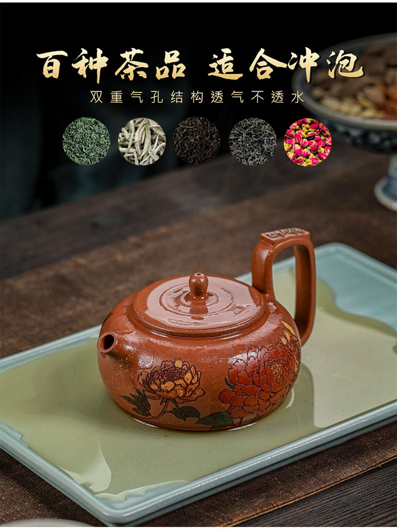 宜兴原矿无添加手工紫砂壶 国色天香 降坡泥 家用茶具茶壶