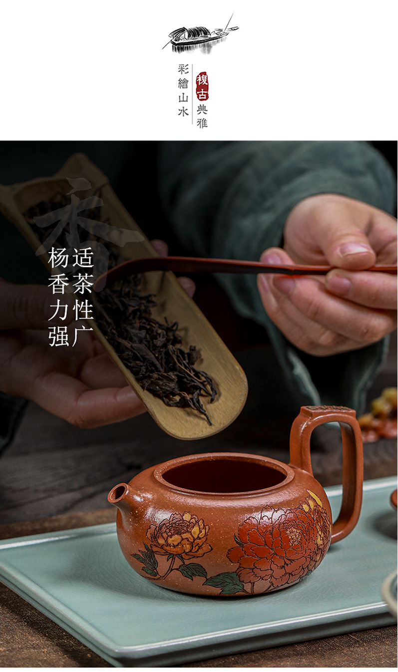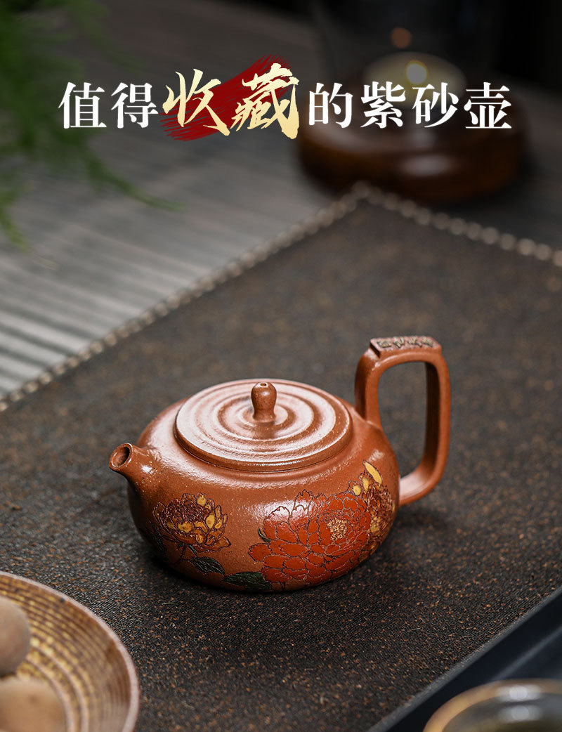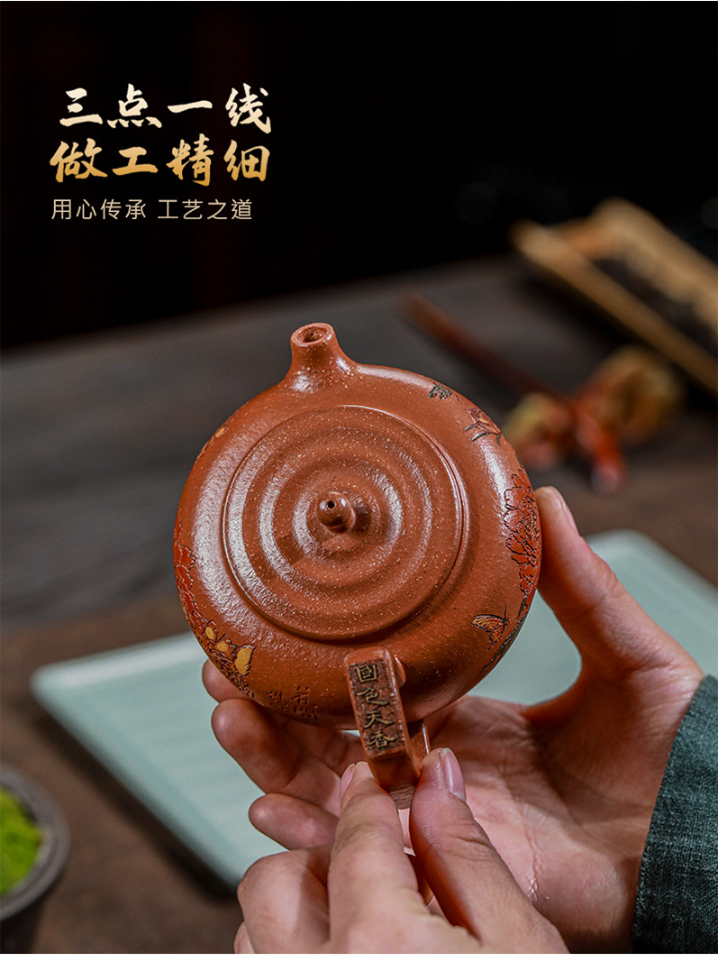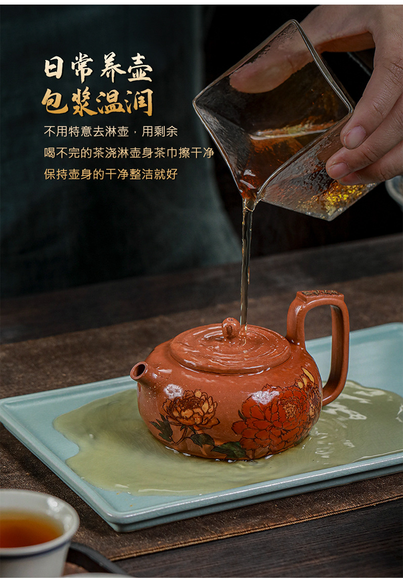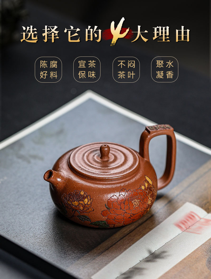 宜兴原矿无添加手工紫砂壶 国色天香 降坡泥 家用茶具茶壶