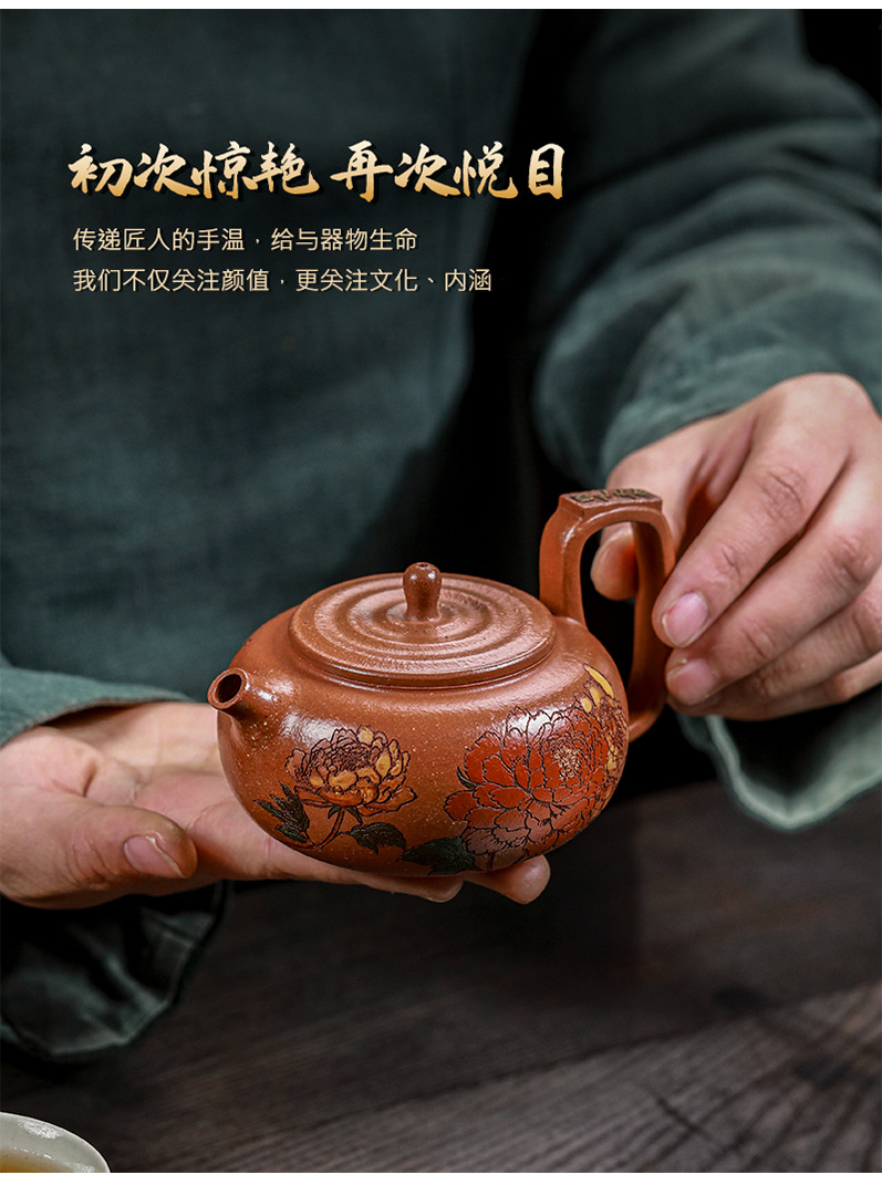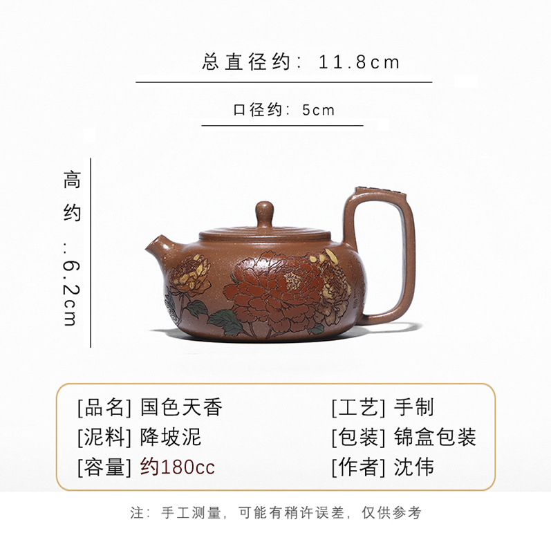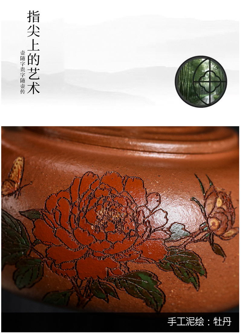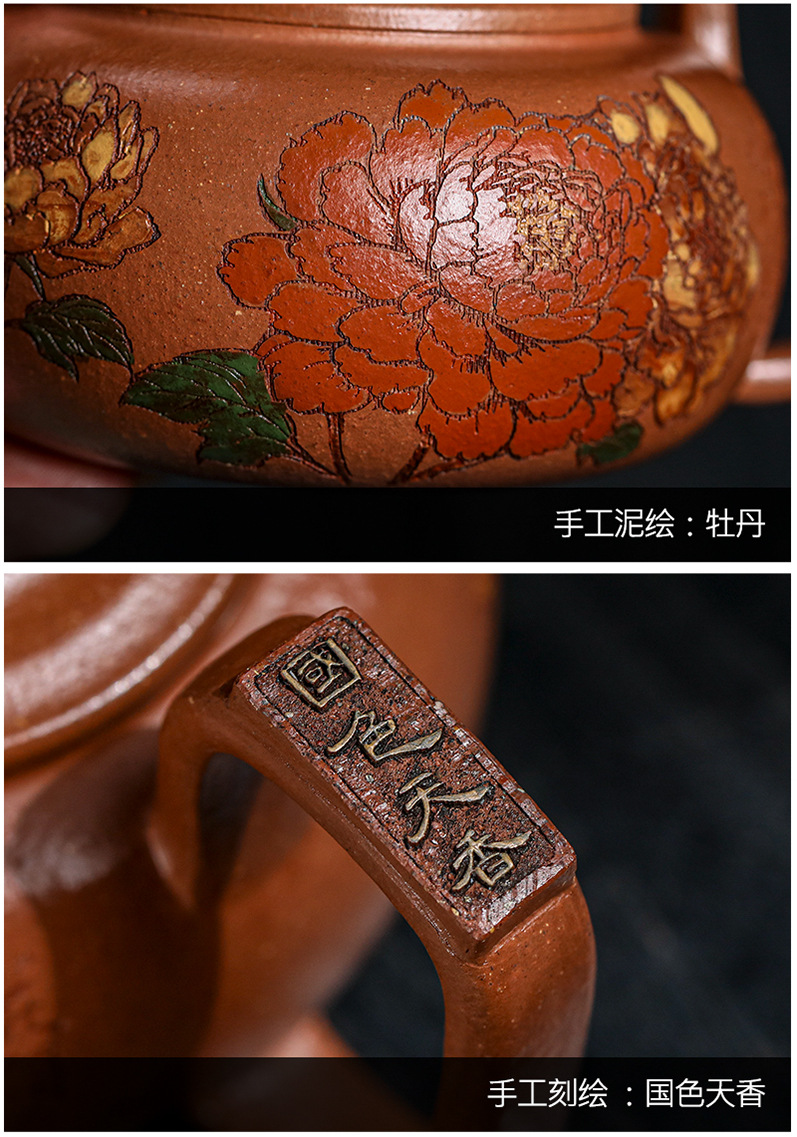 商品名称:宜兴原矿无添加手工紫砂壶 国色天香 降坡泥 家用茶具茶壶