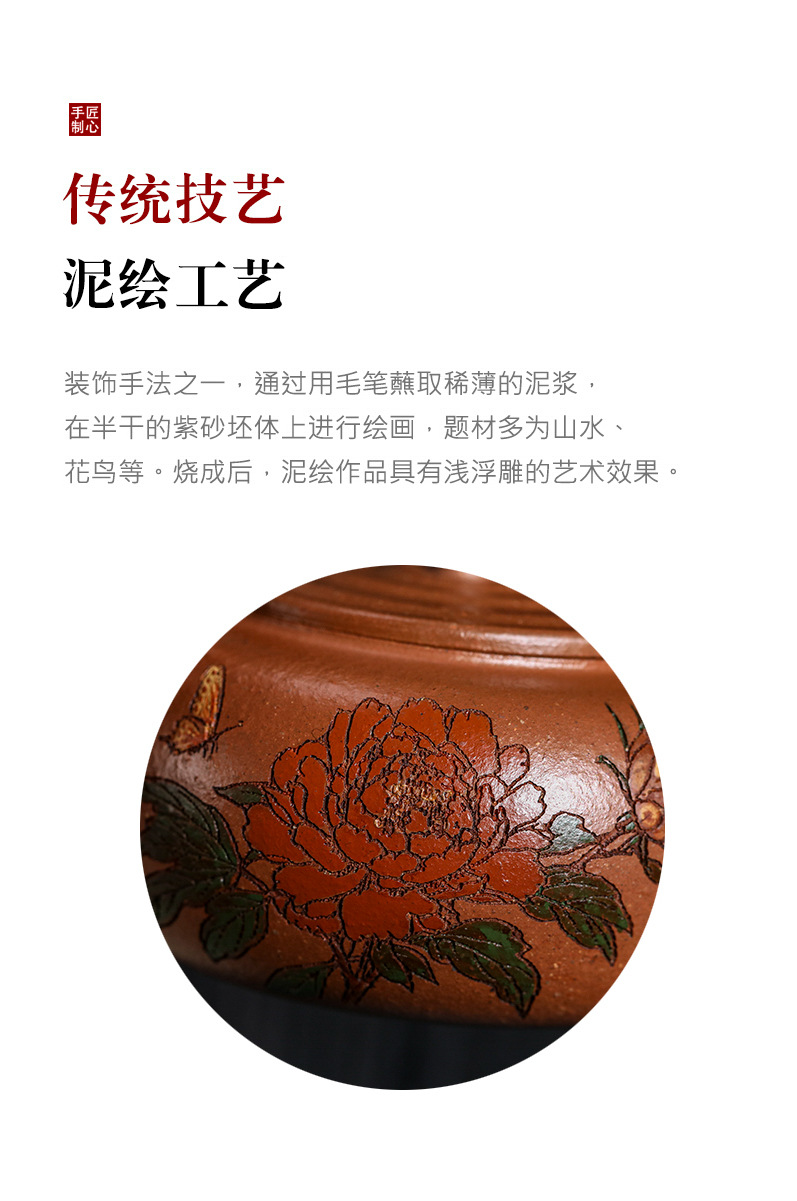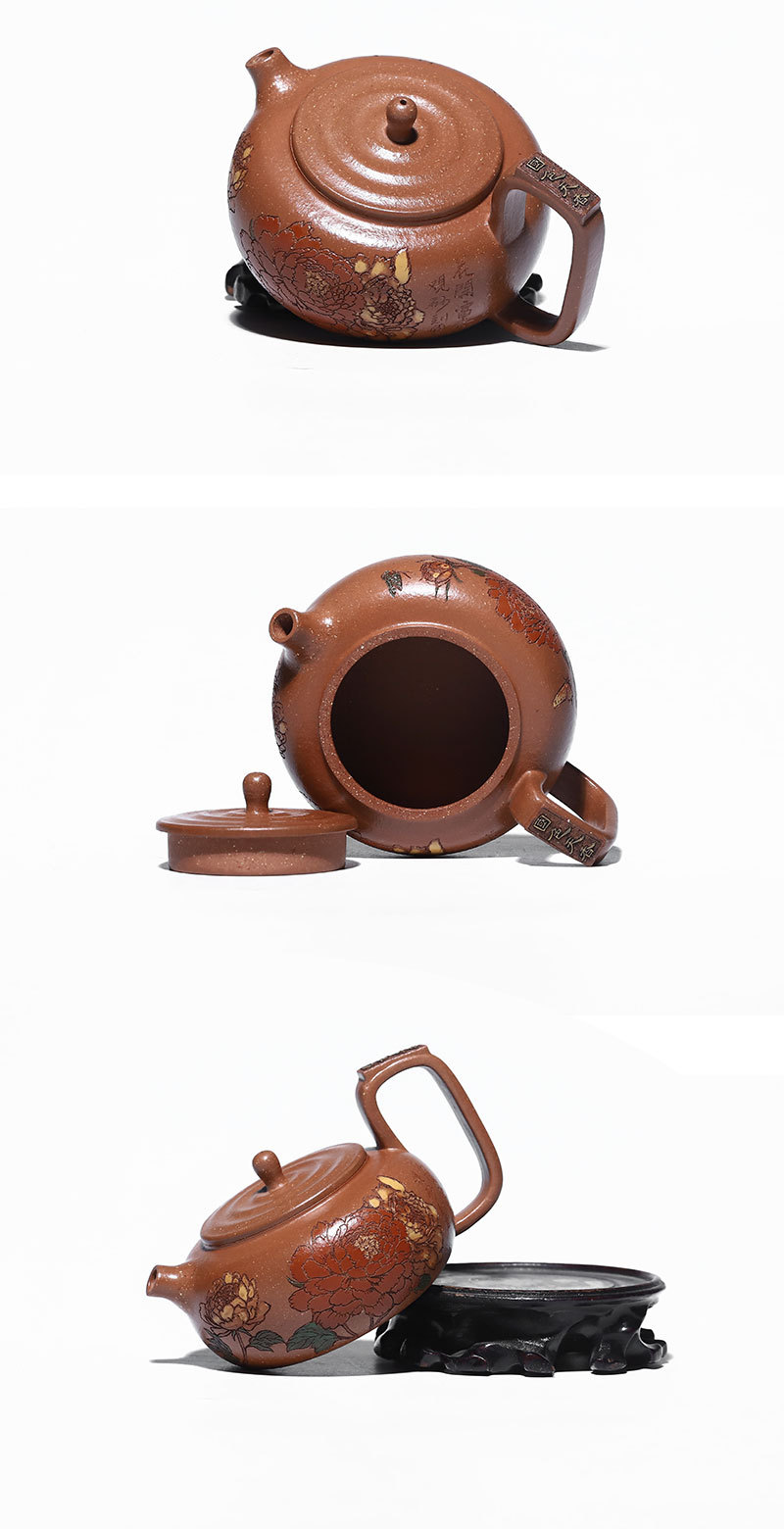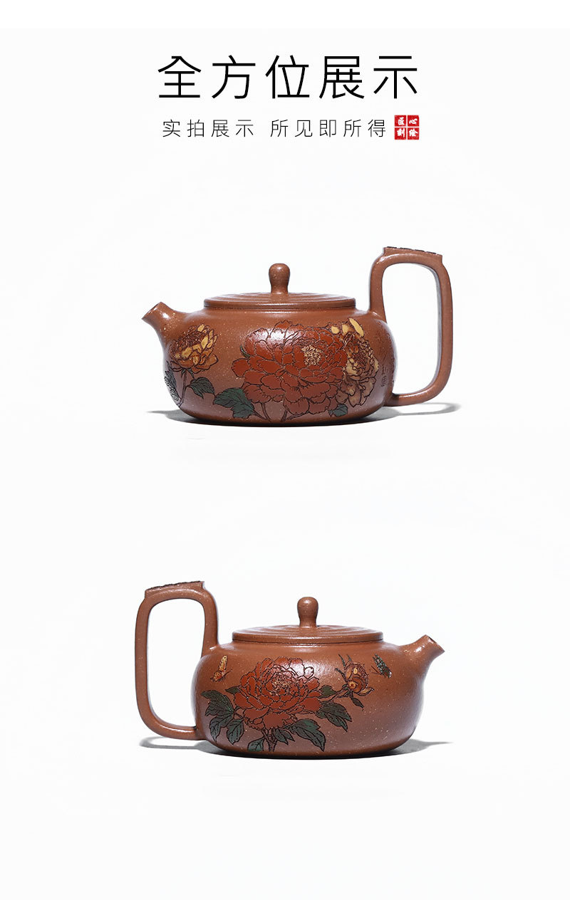 商品名称:宜兴原矿无添加手工紫砂壶 国色天香 降坡泥 家用茶具茶壶