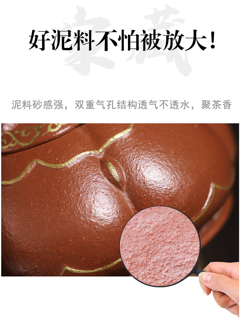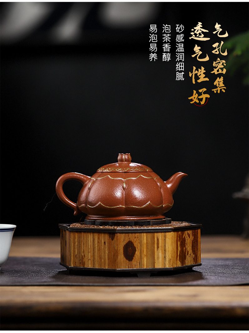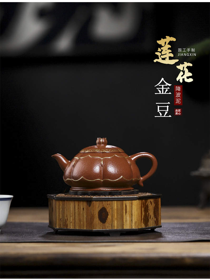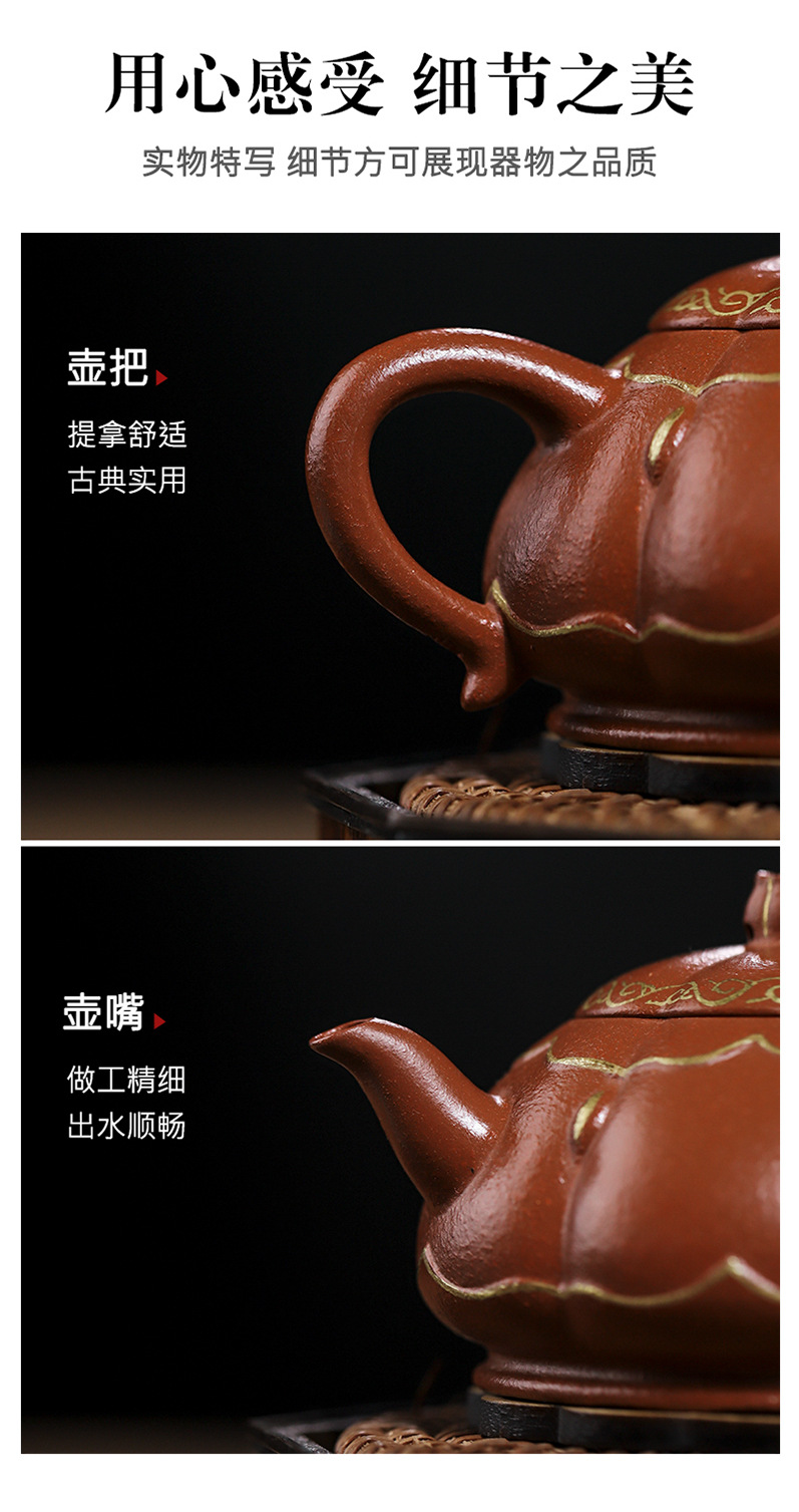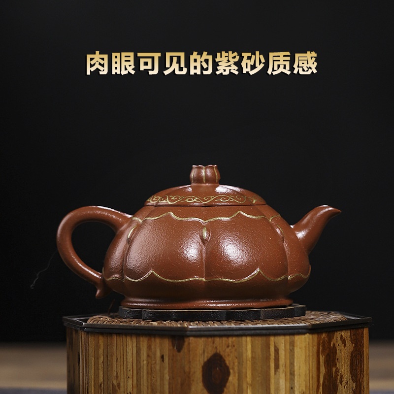 商品名称:宜兴手工紫砂壶家藏降坡泥莲花金豆家用茶具茶壶泡茶壶出水爆爽