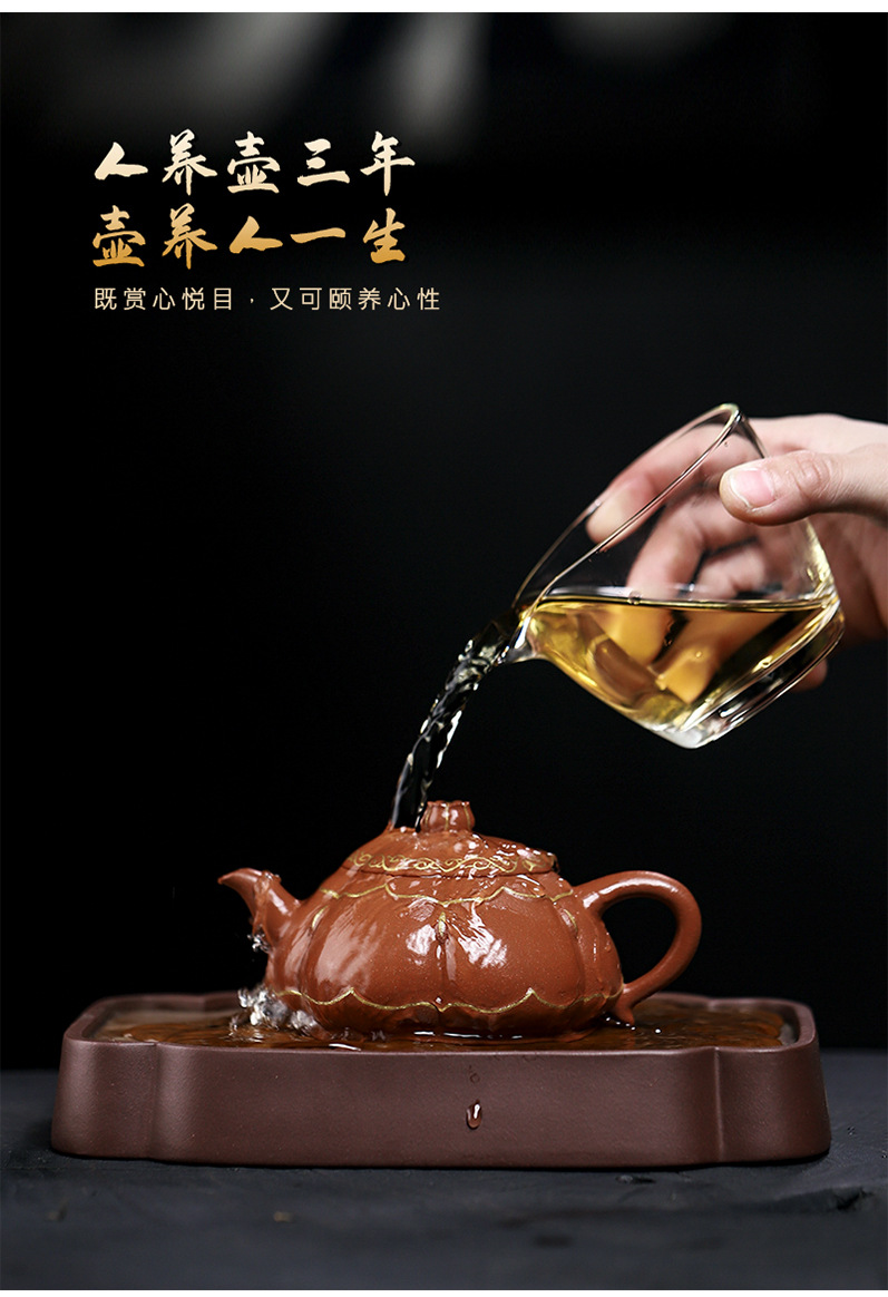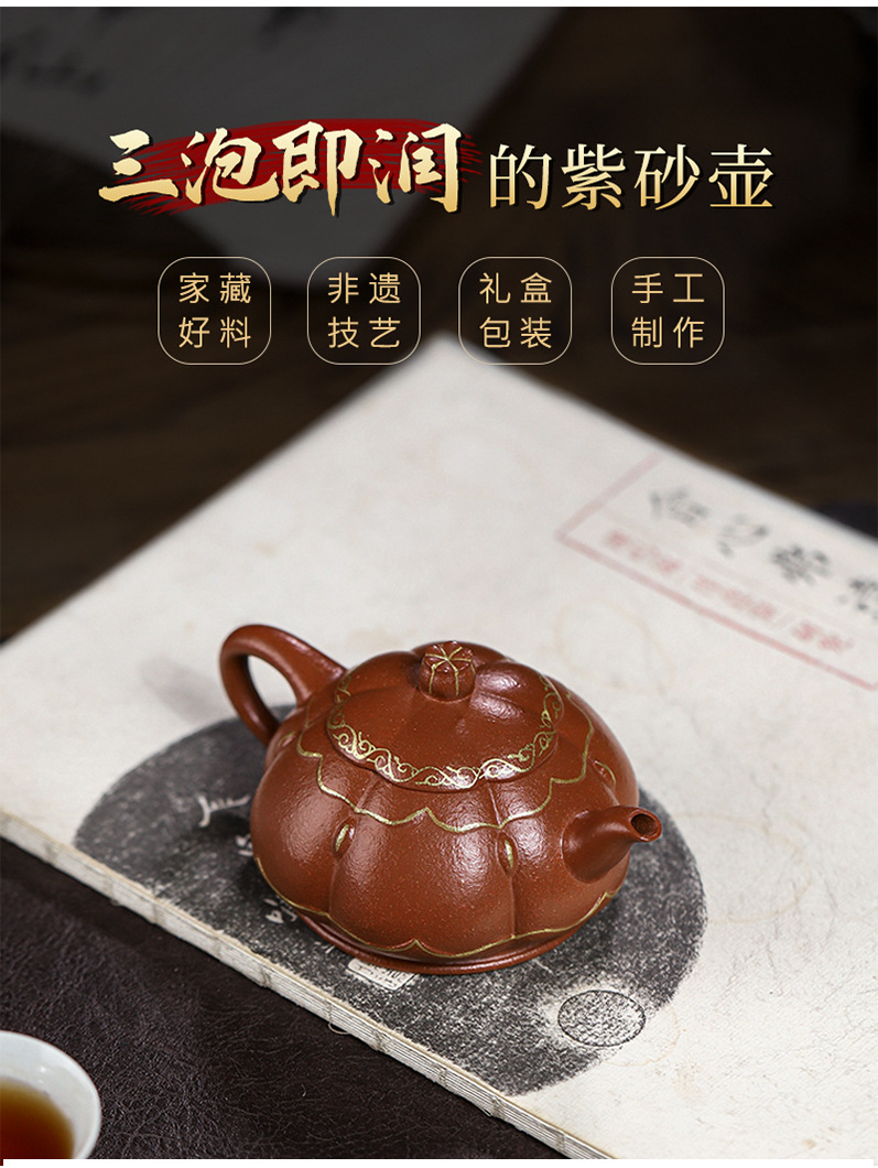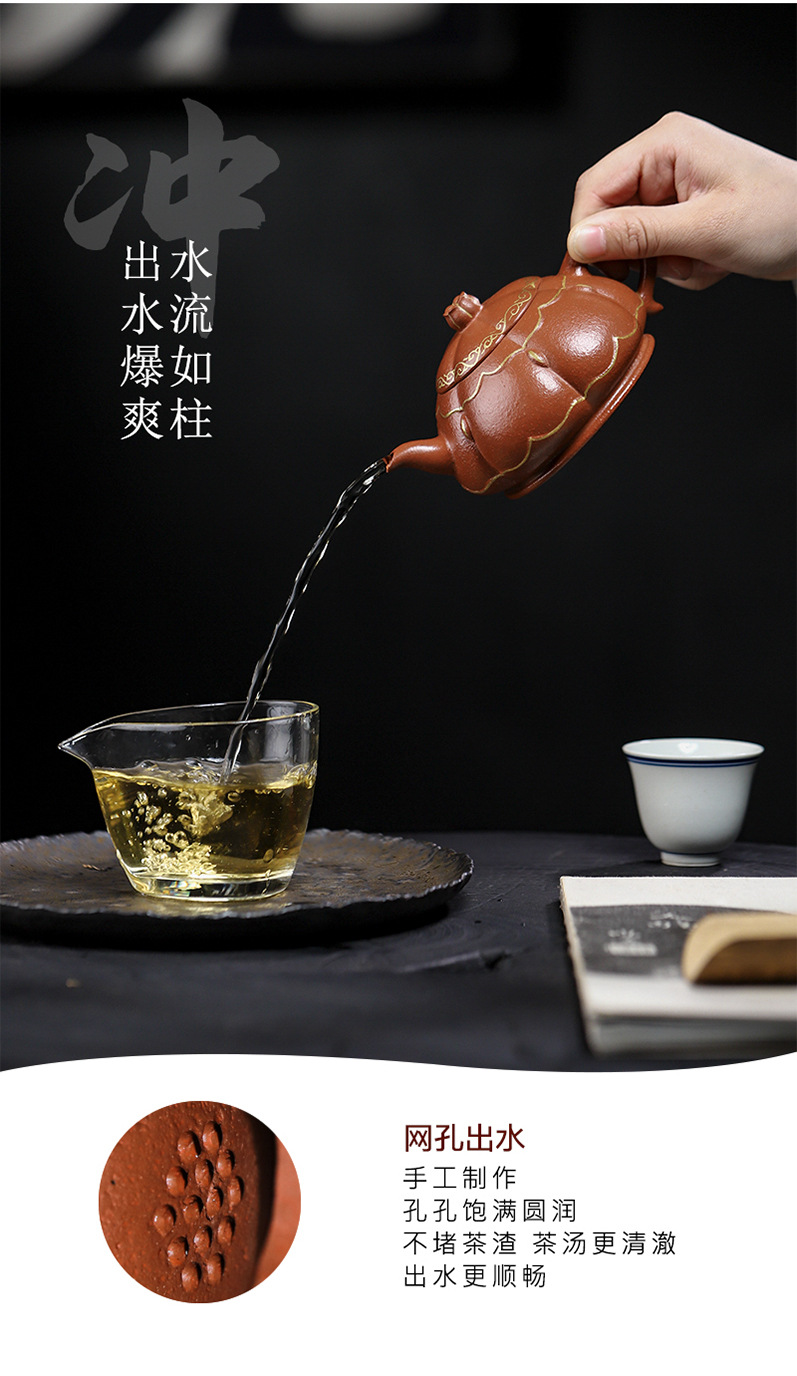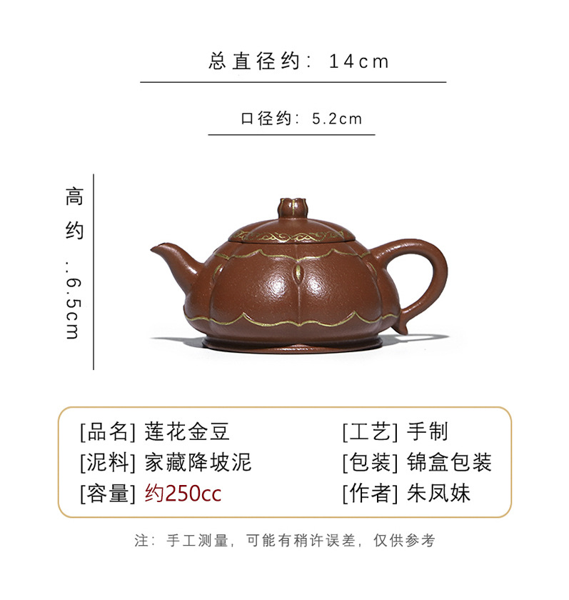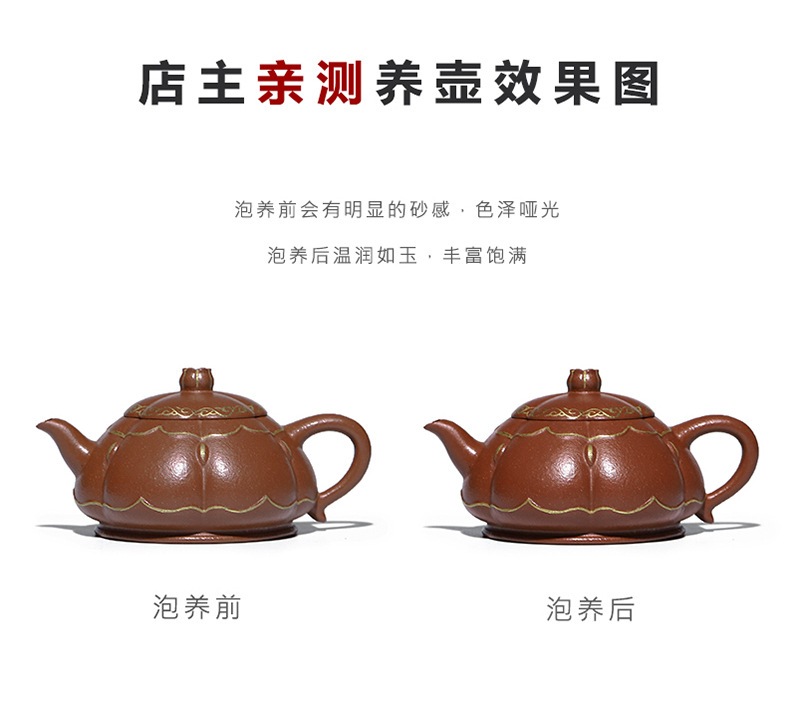 商品名称:宜兴手工紫砂壶家藏降坡泥莲花金豆家用茶具茶壶泡茶壶出水爆爽