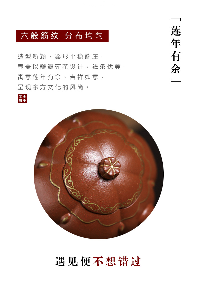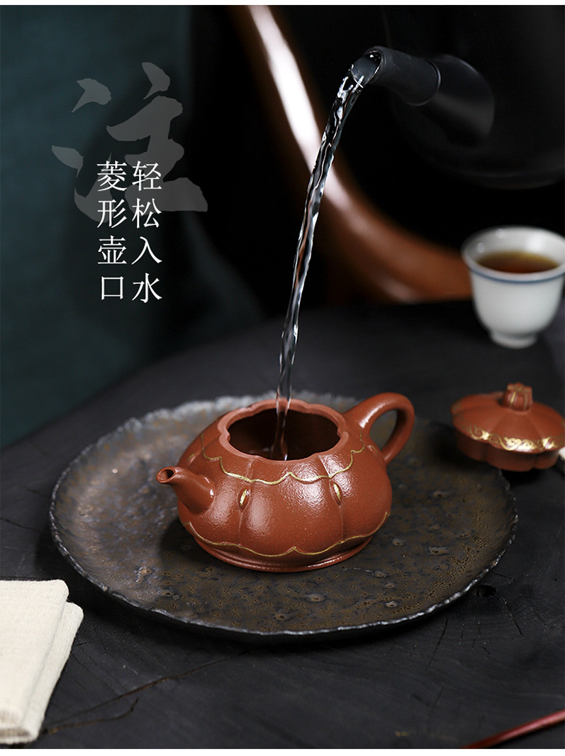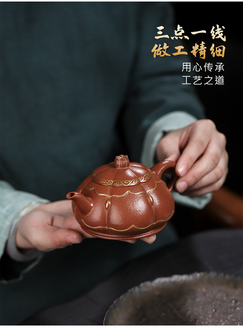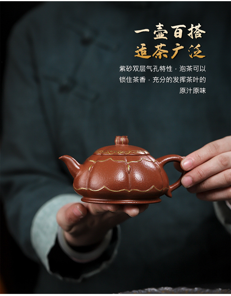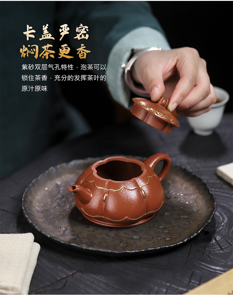 商品名称:宜兴手工紫砂壶家藏降坡泥莲花金豆家用茶具茶壶泡茶壶出水爆爽