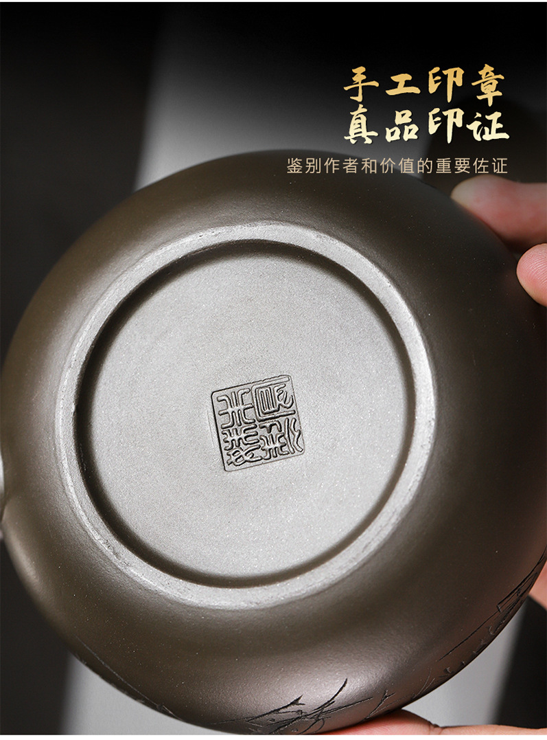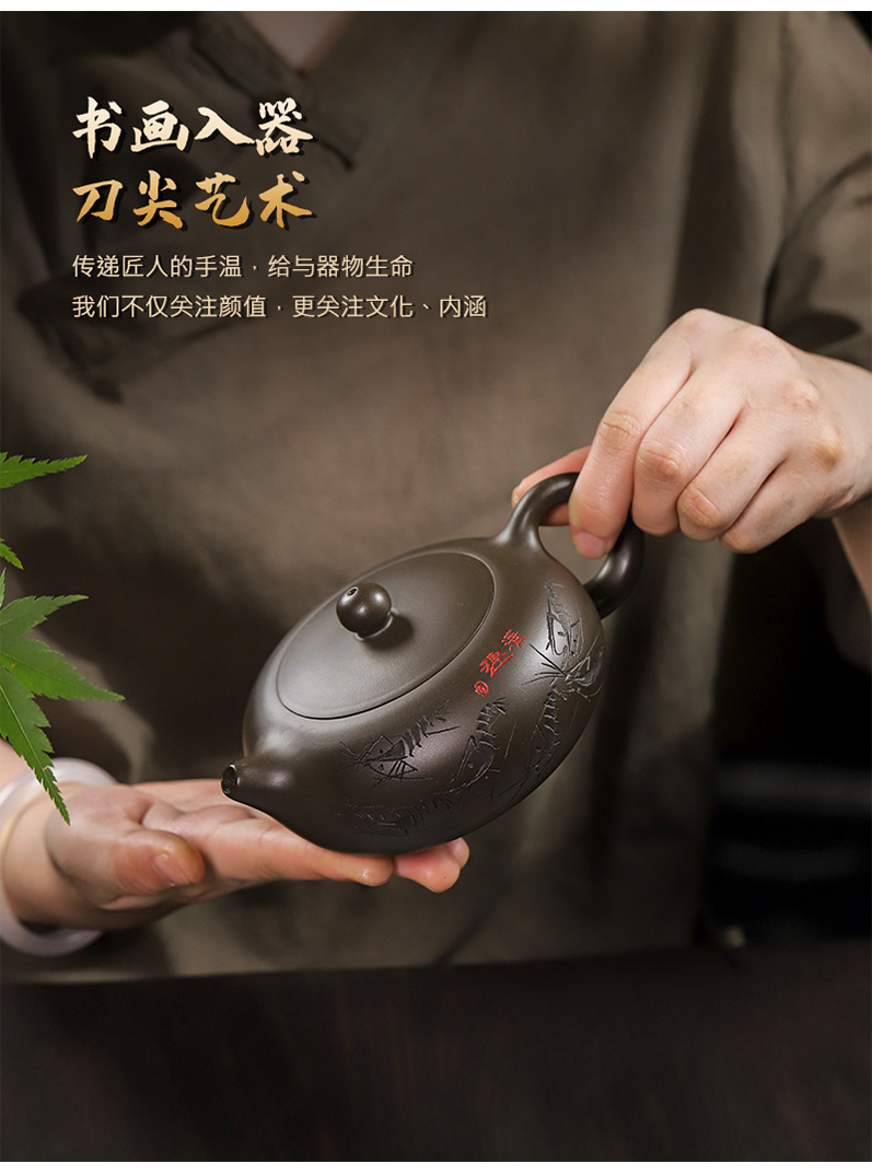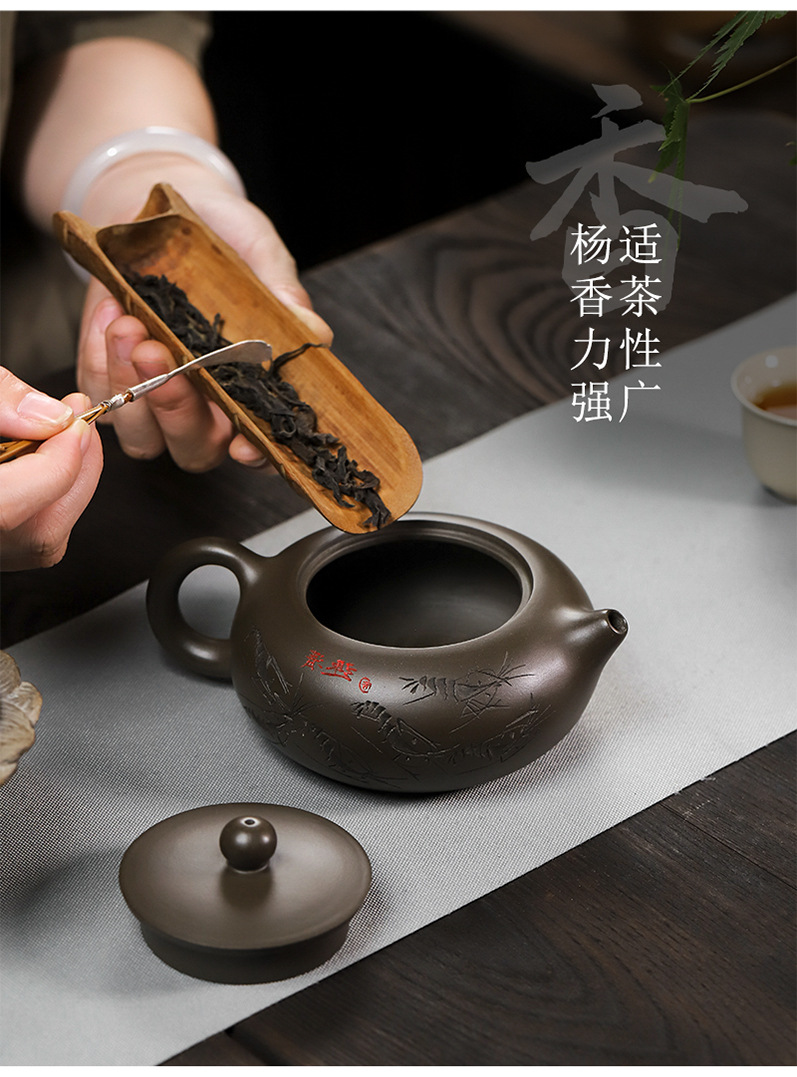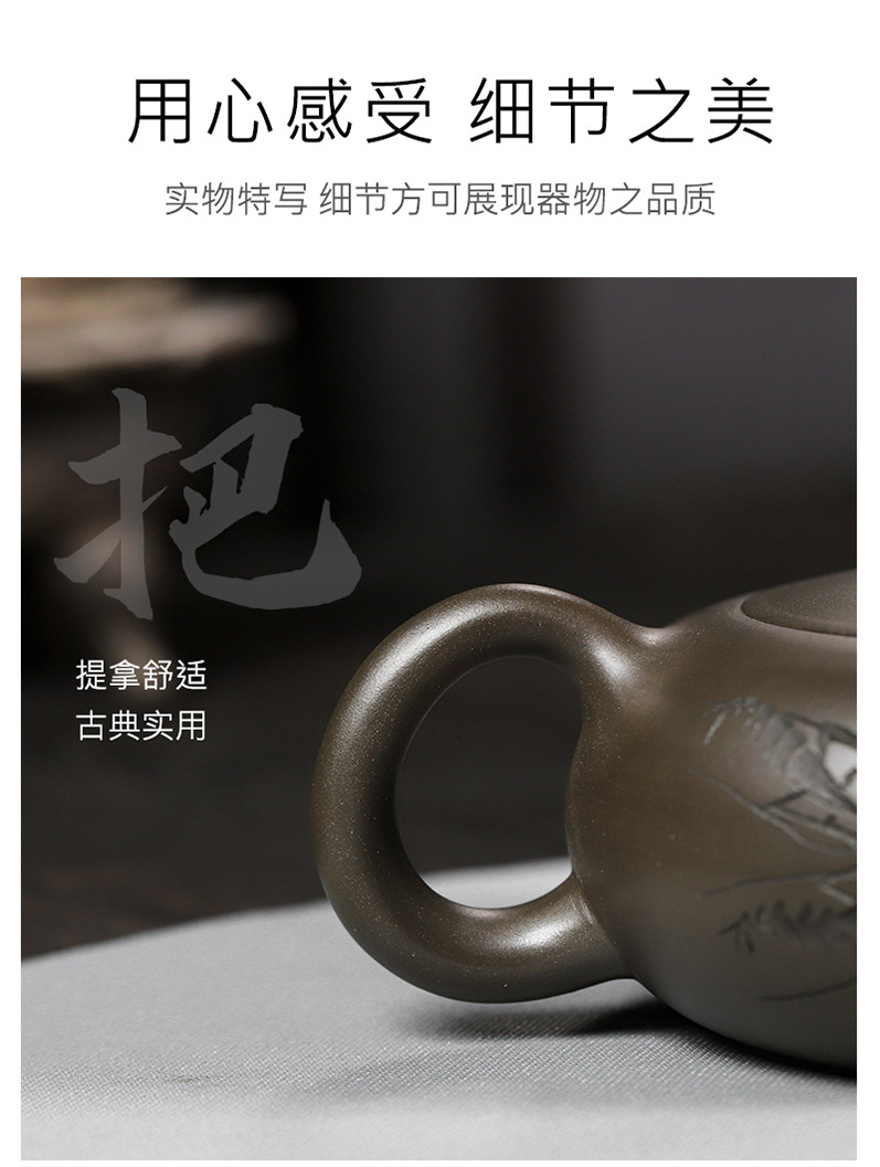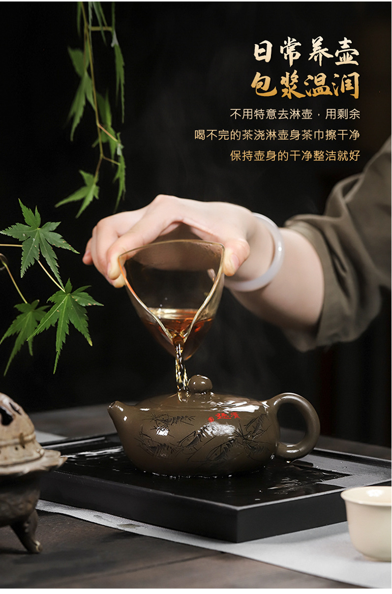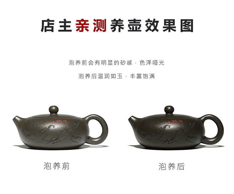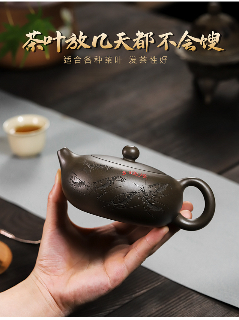 宜兴手工紫砂壶 原矿羊角山紫泥 美羽添香 家用茶具茶壶 证书齐全