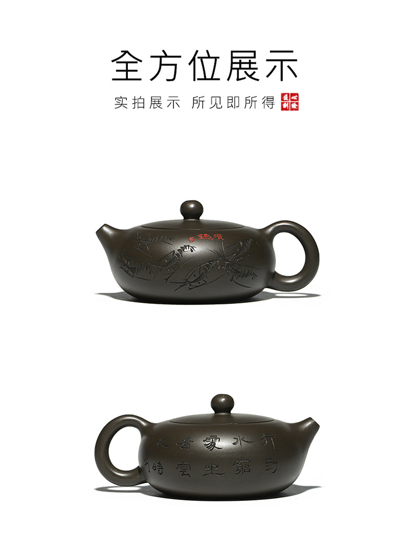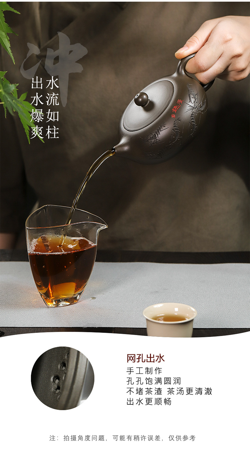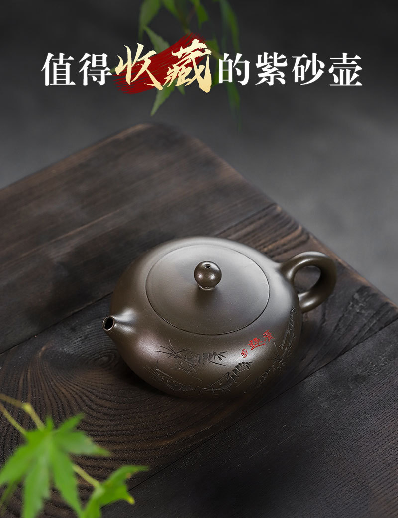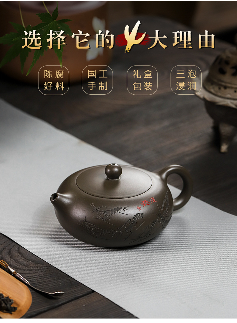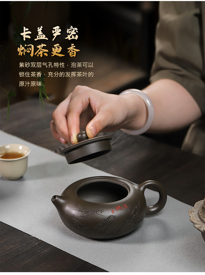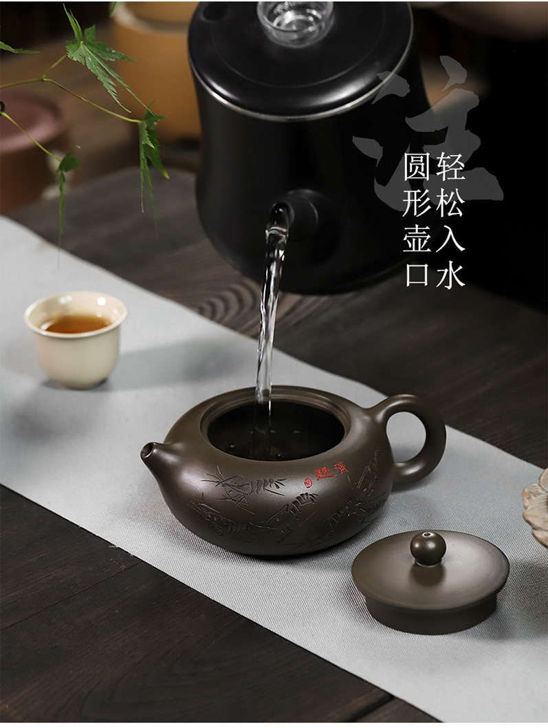 宜兴手工紫砂壶 原矿羊角山紫泥 美羽添香 家用茶具茶壶 证书齐全