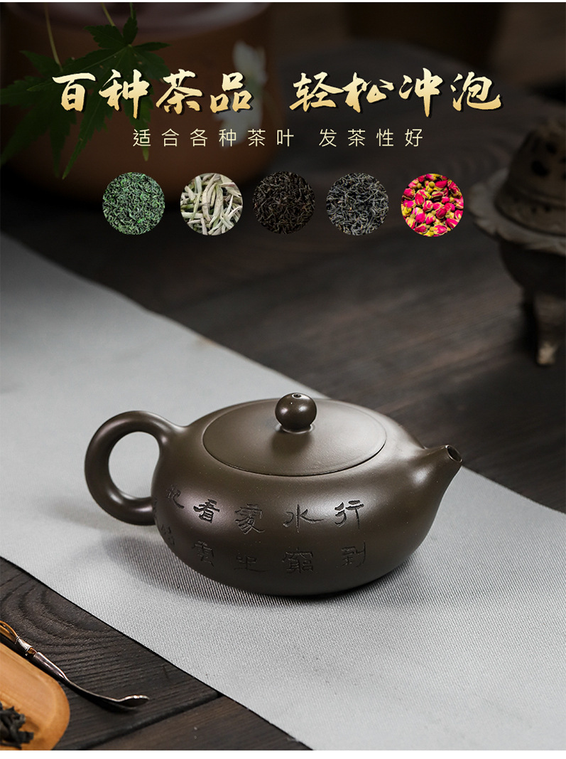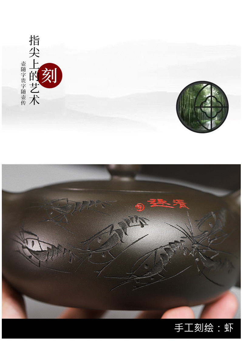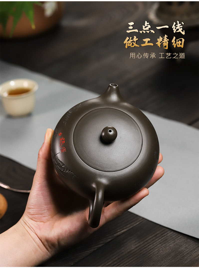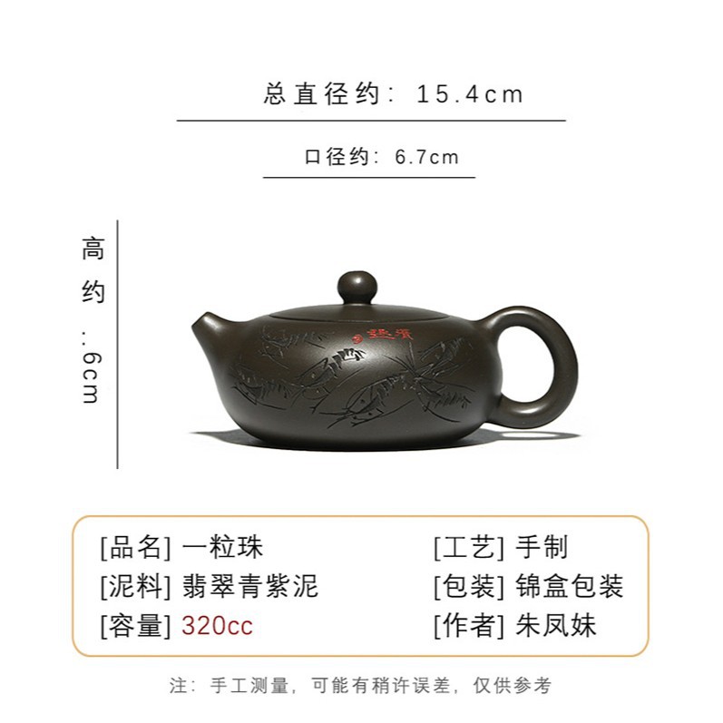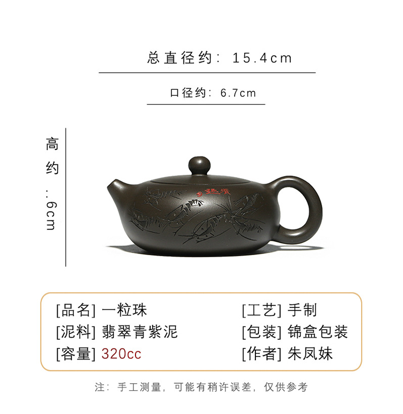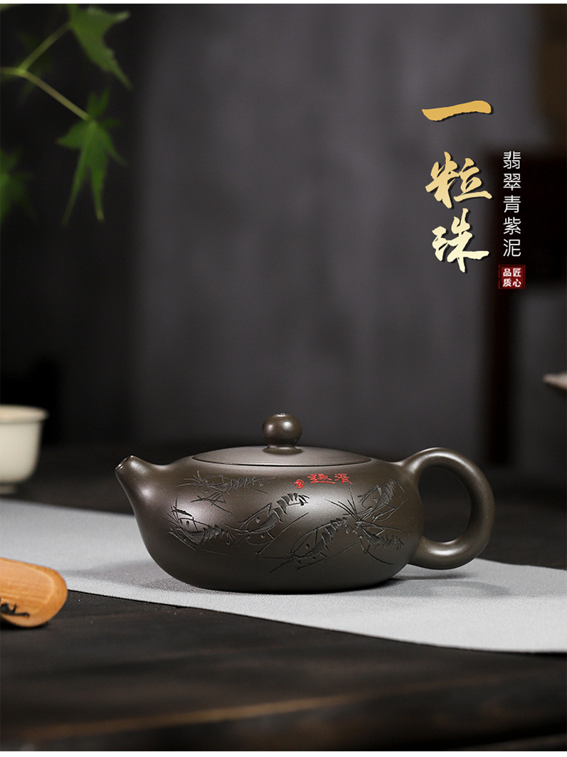 商品名称:宜兴手工紫砂壶 翡翠青紫泥 一粒珠家用茶具茶壶国工手制出水暴爽