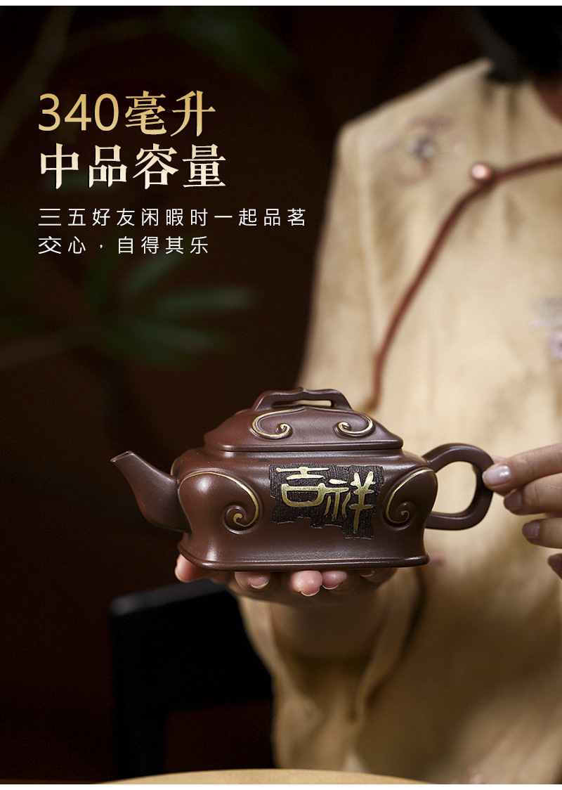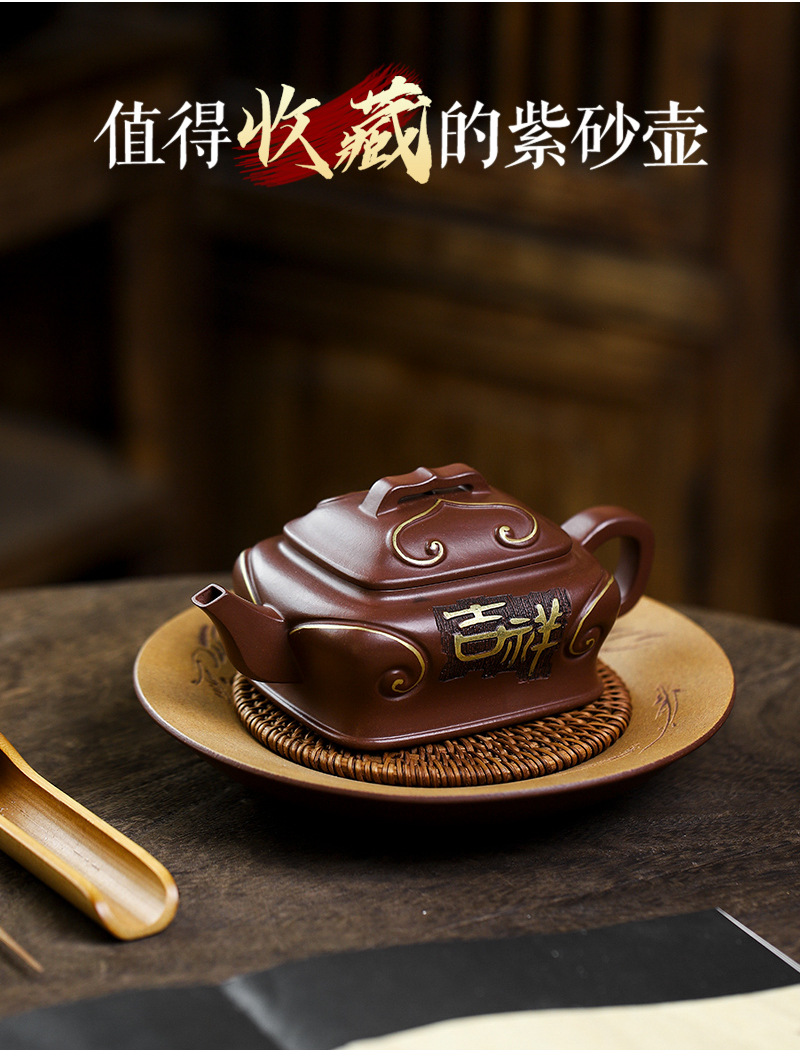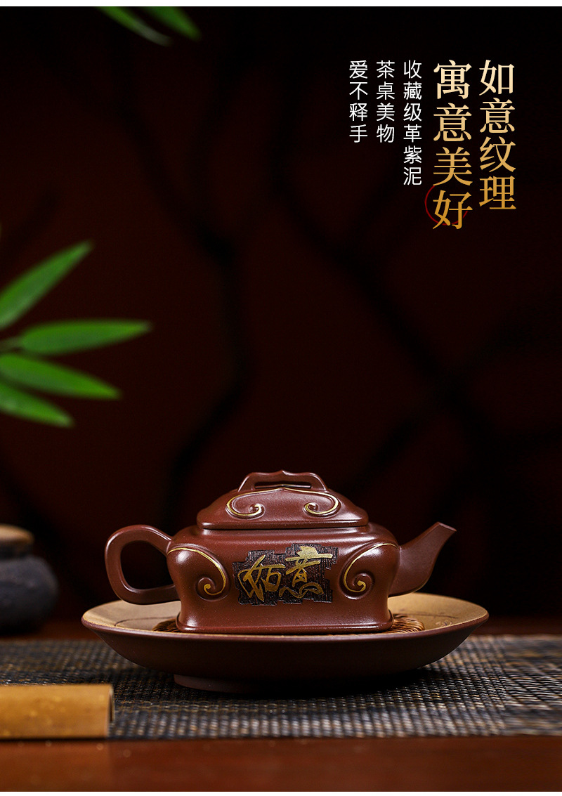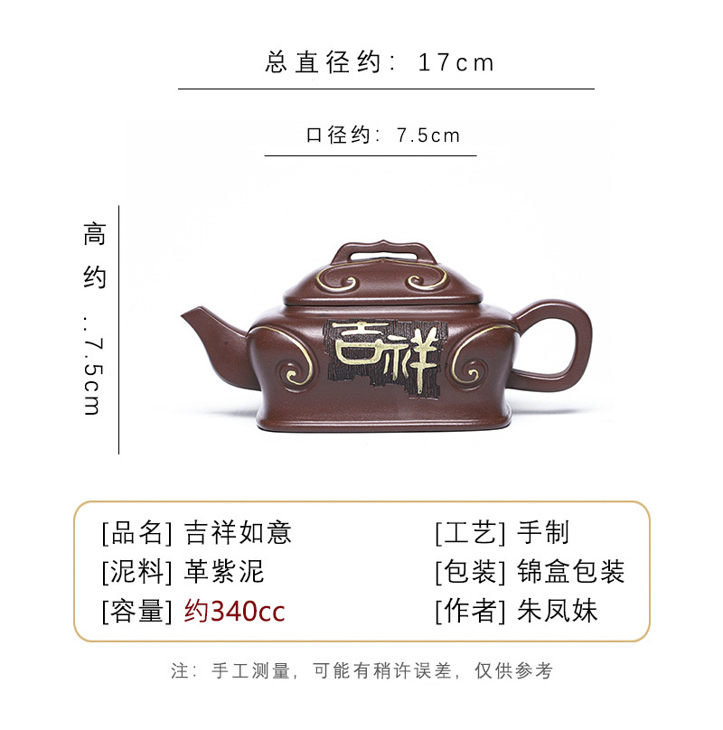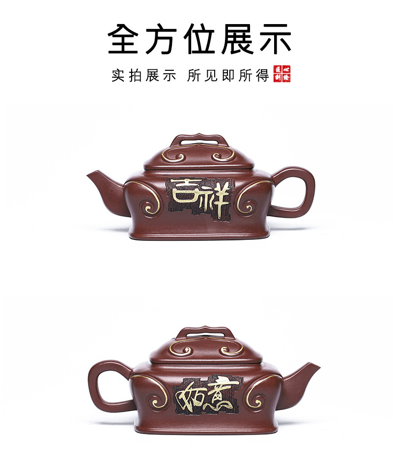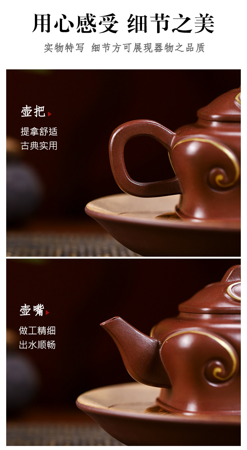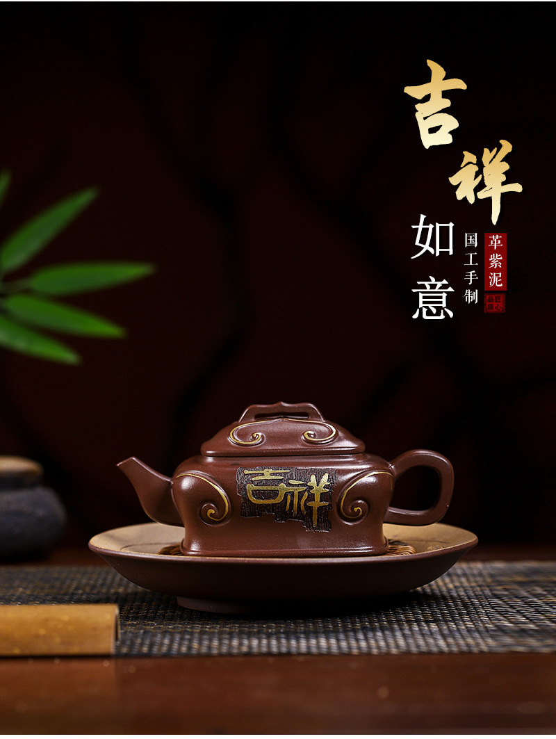 商品名称:宜兴手工紫砂壶吉祥如意革紫泥出水爆爽证书齐全国工手制