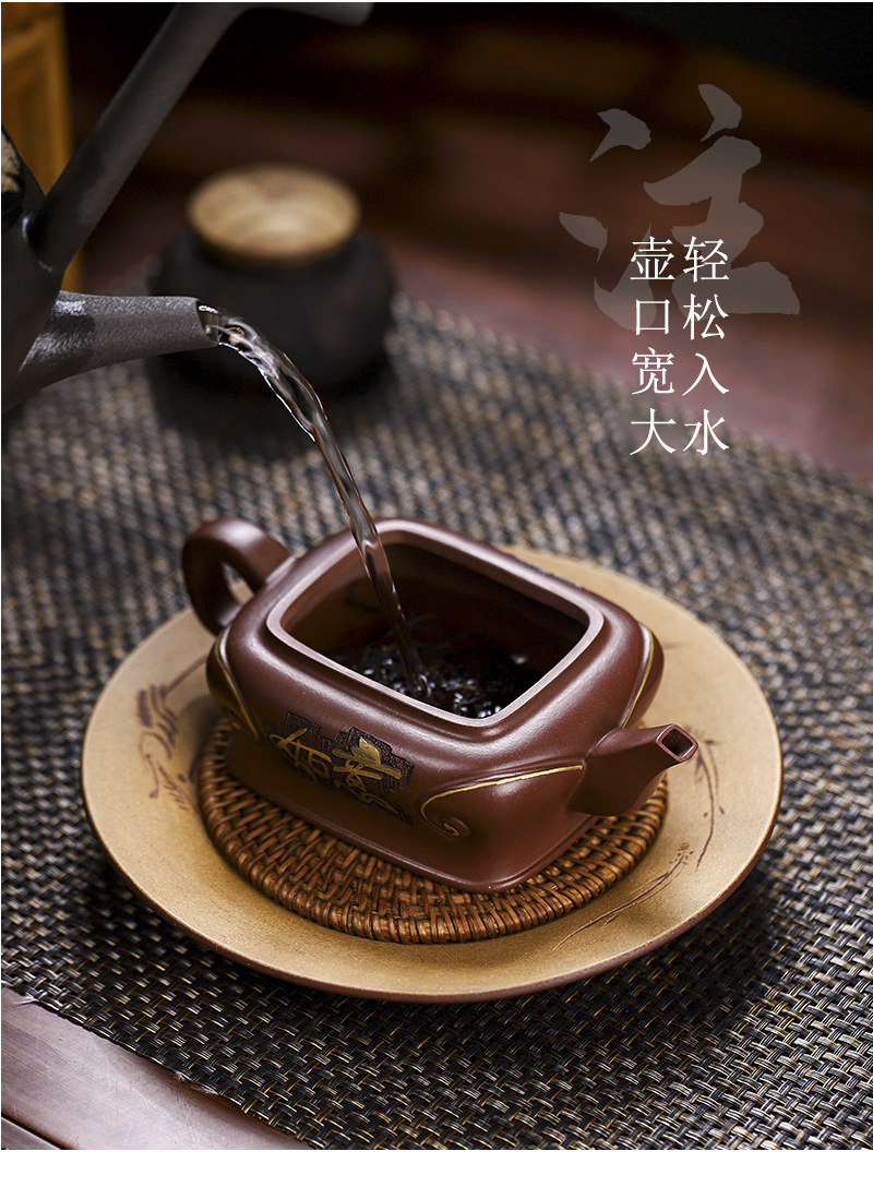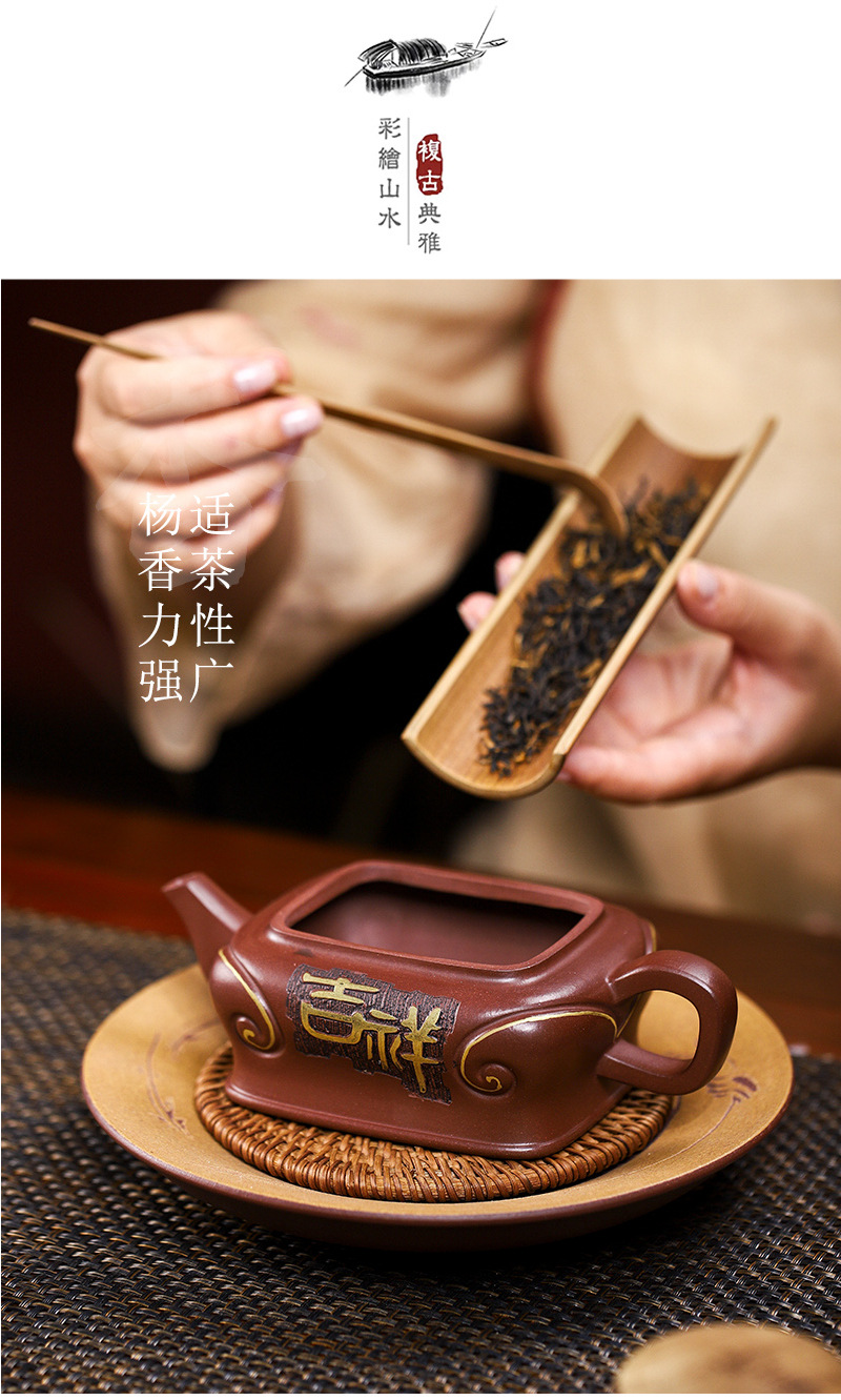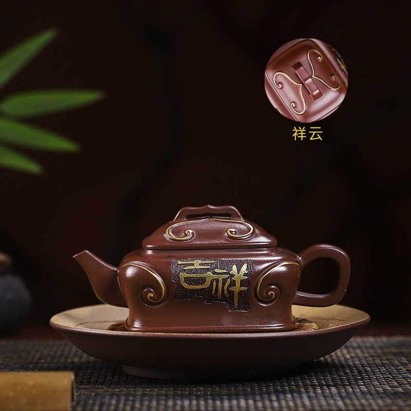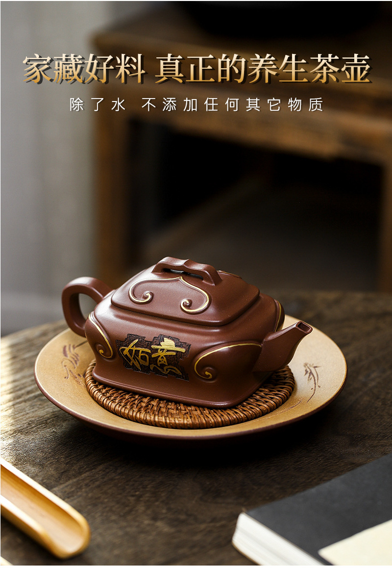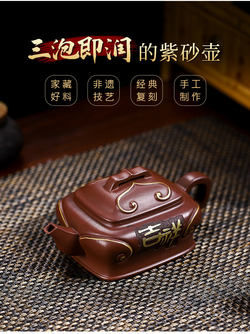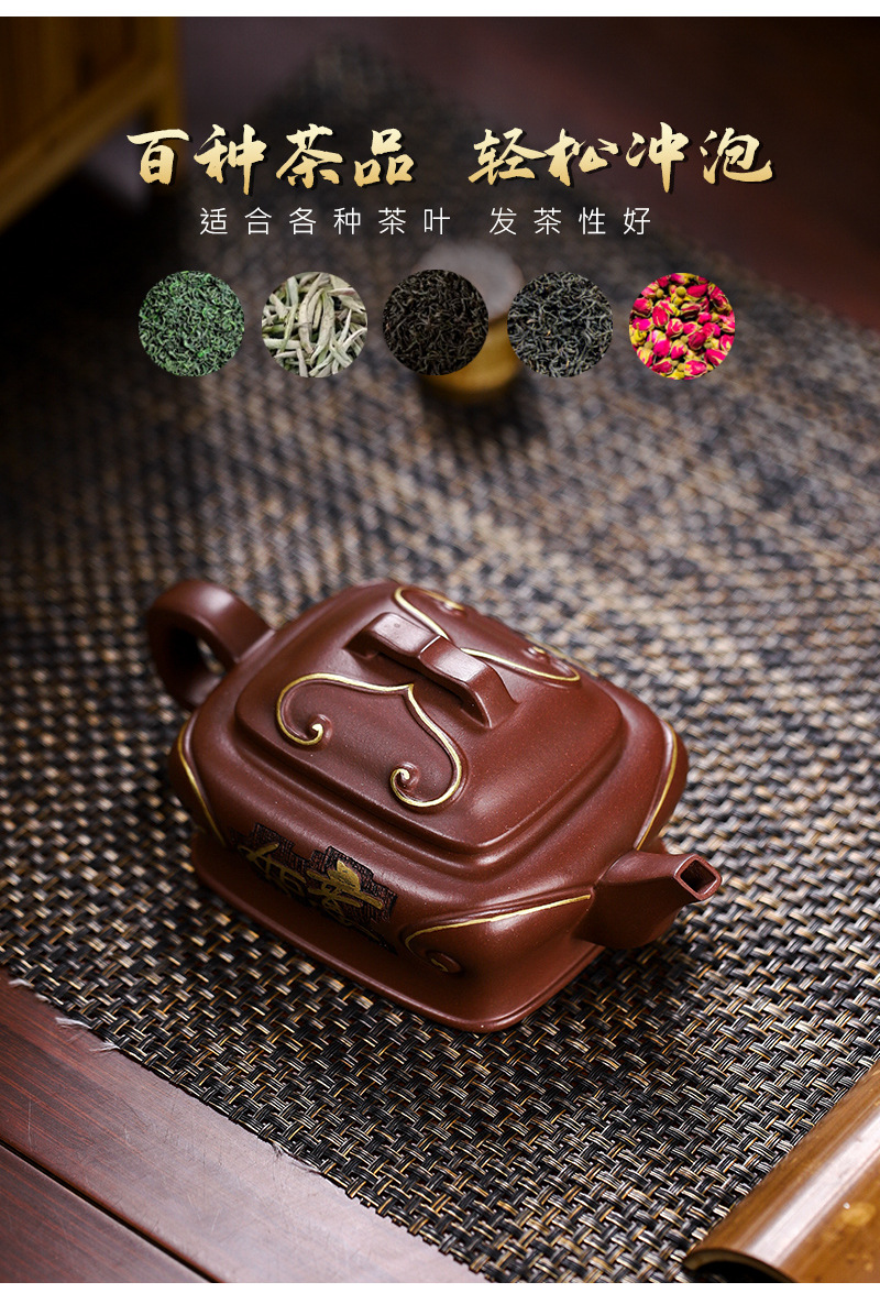 商品名称:宜兴手工紫砂壶吉祥如意革紫泥出水爆爽证书齐全国工手制