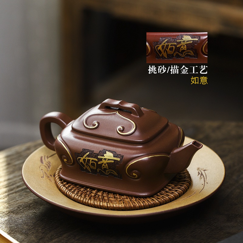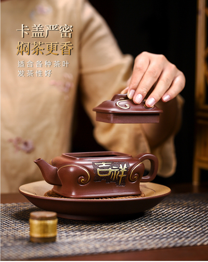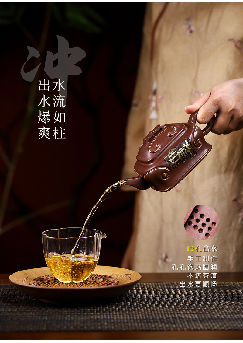 宜兴手工紫砂壶吉祥如意革紫泥出水爆爽证书齐全国工手制