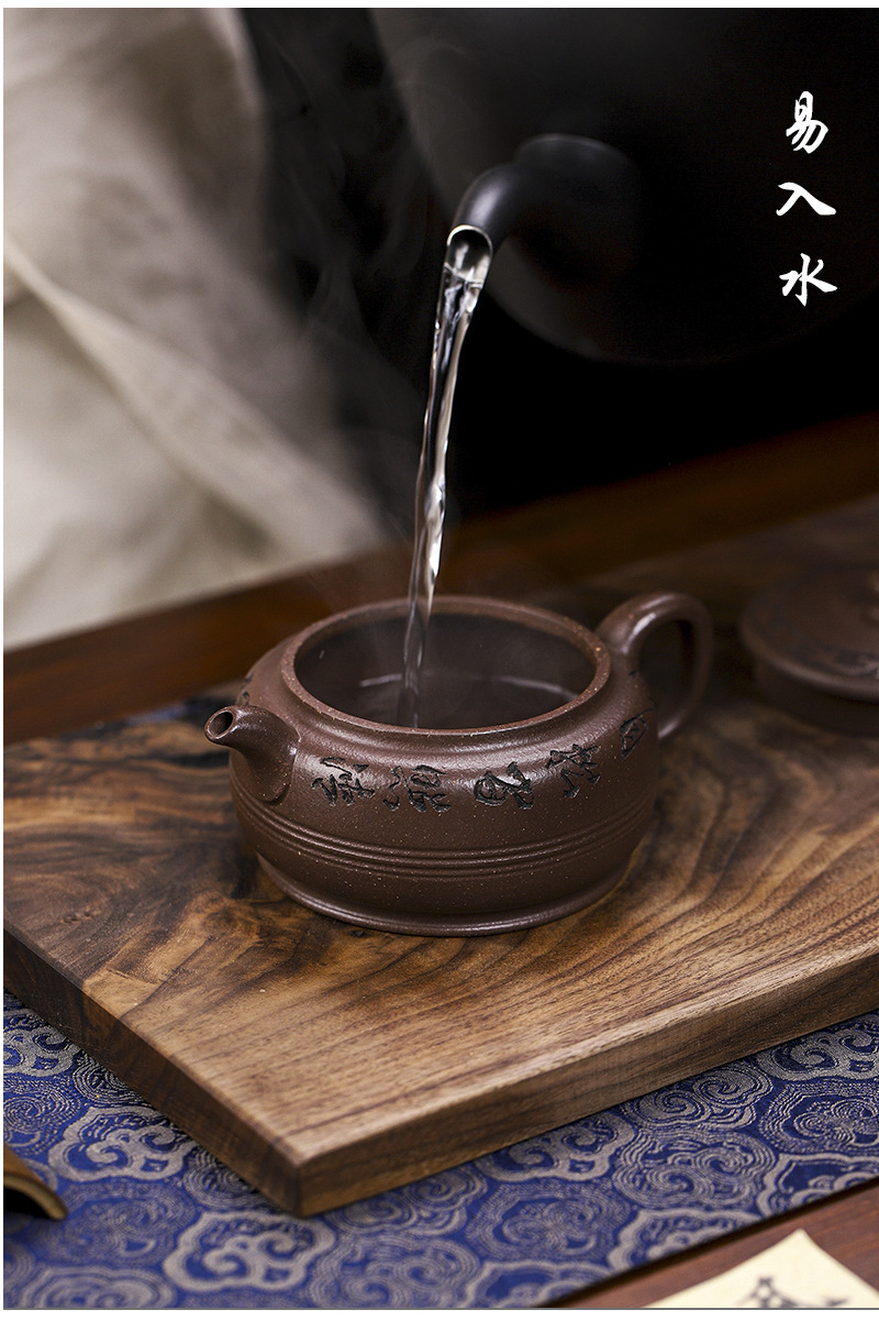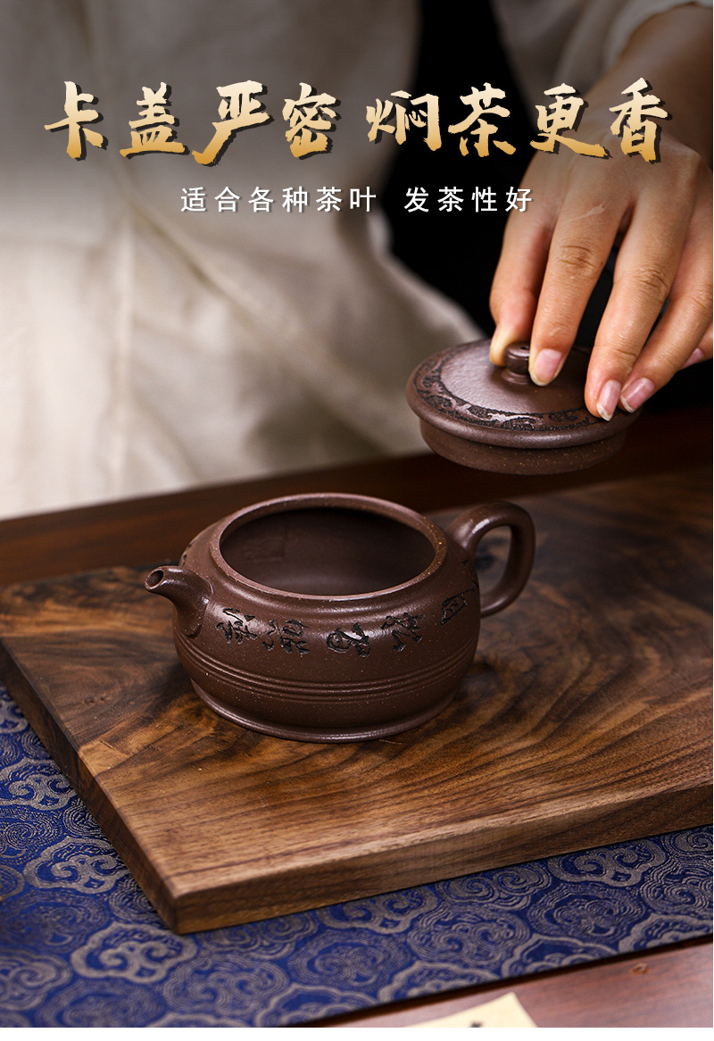 宜兴手工紫砂壶家藏紫玉金砂腹圆家用茶具茶壶