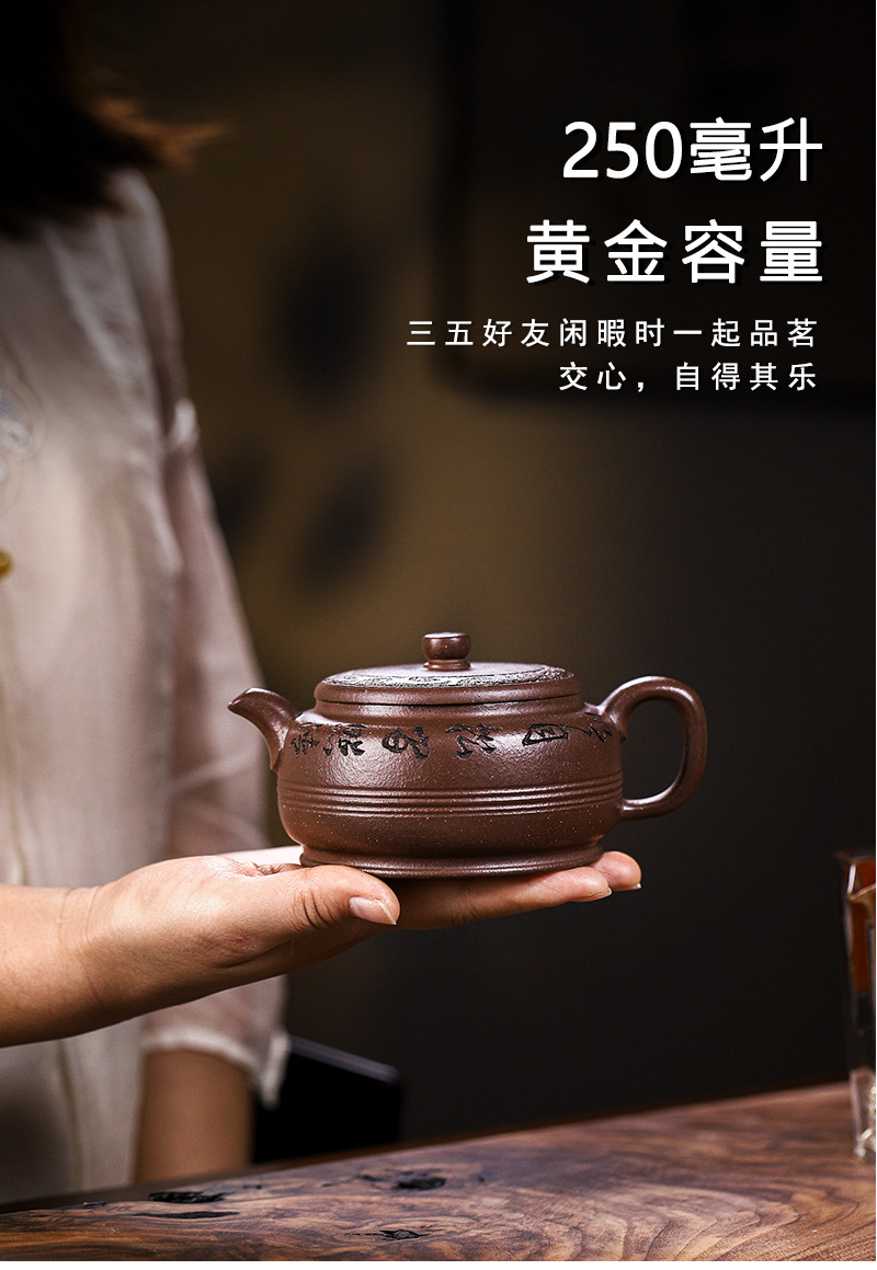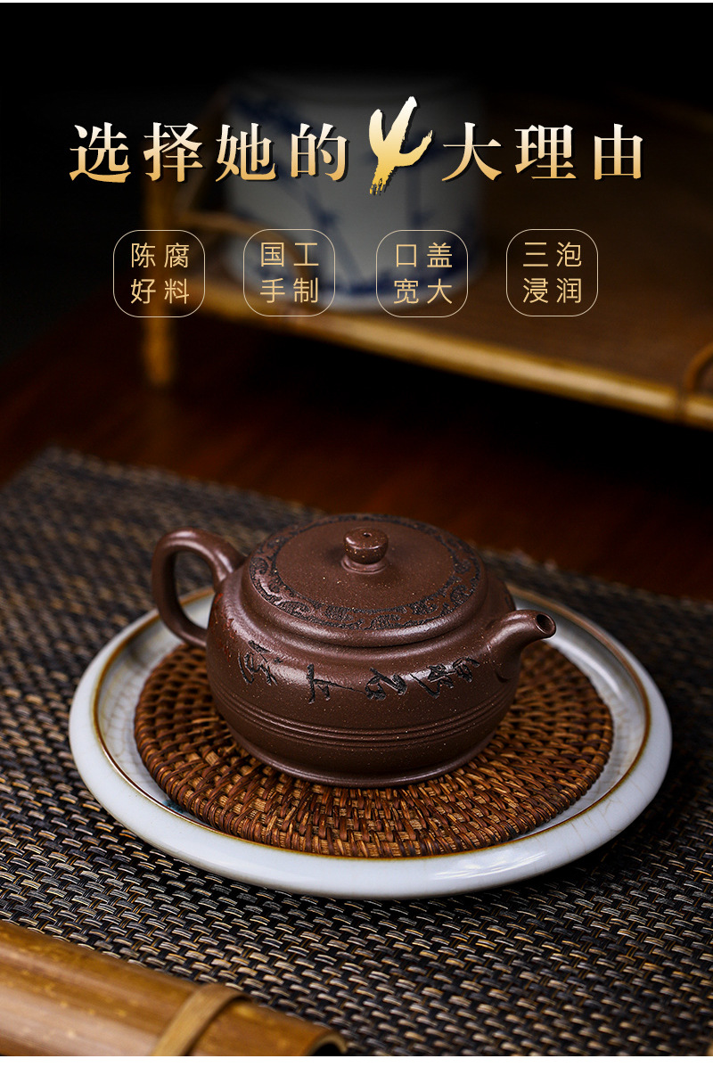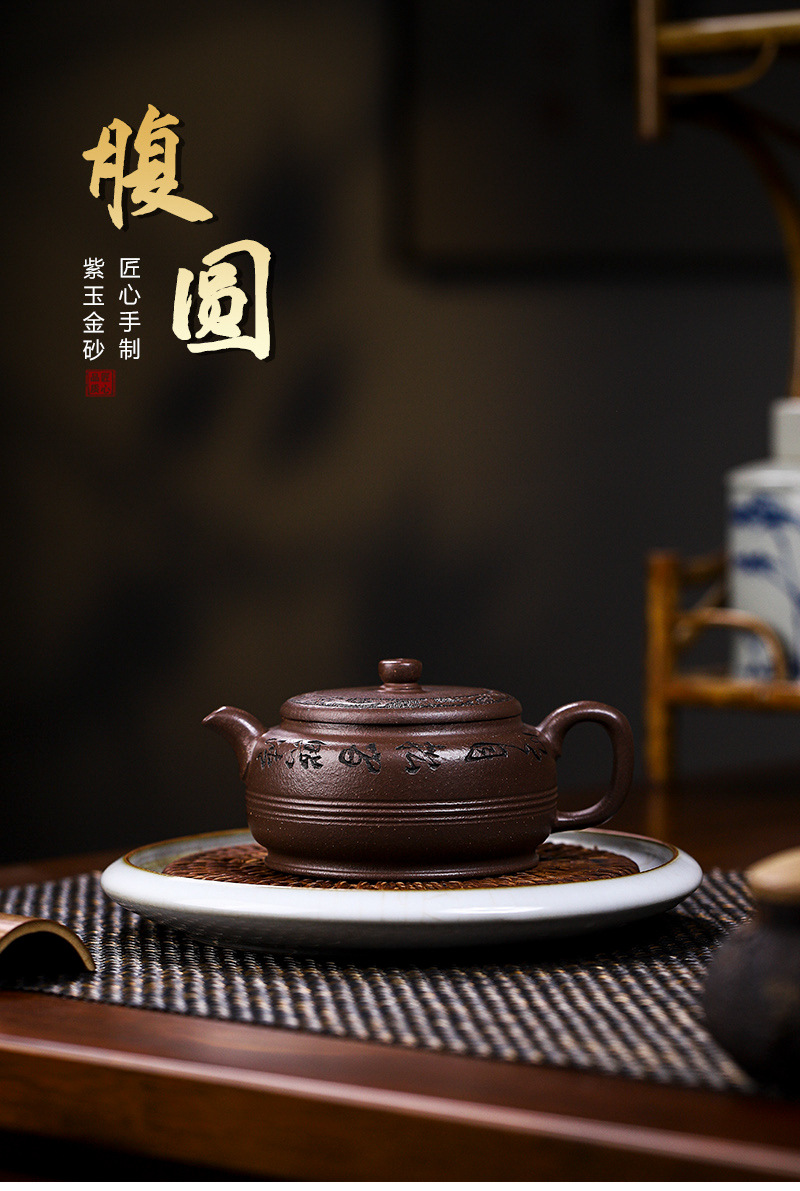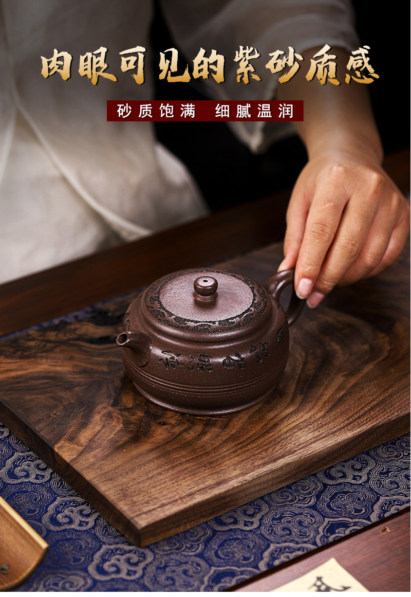 商品名称:宜兴手工紫砂壶家藏紫玉金砂腹圆家用茶具茶壶