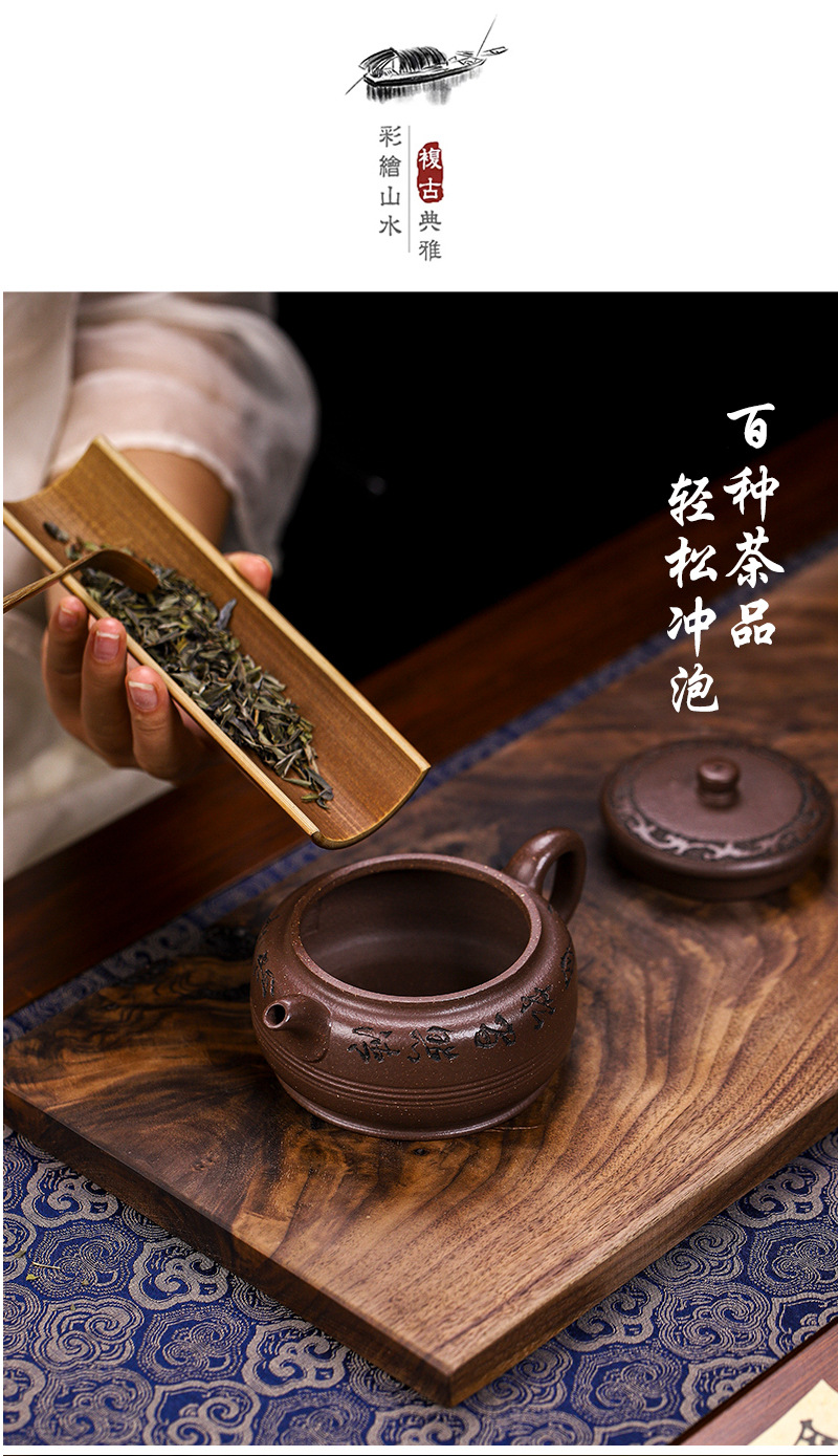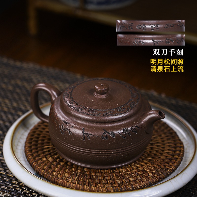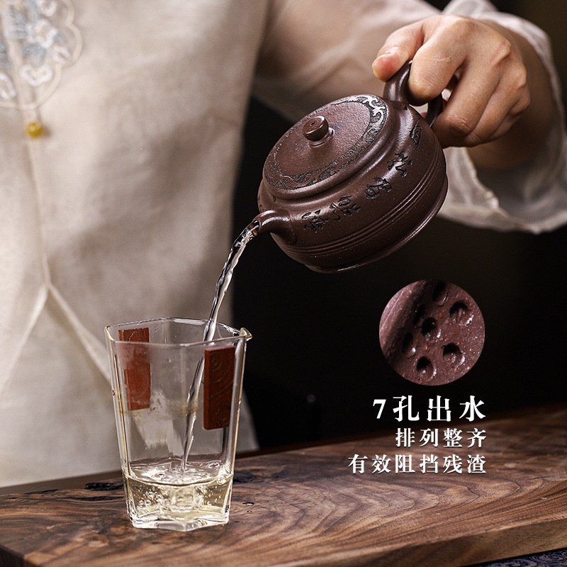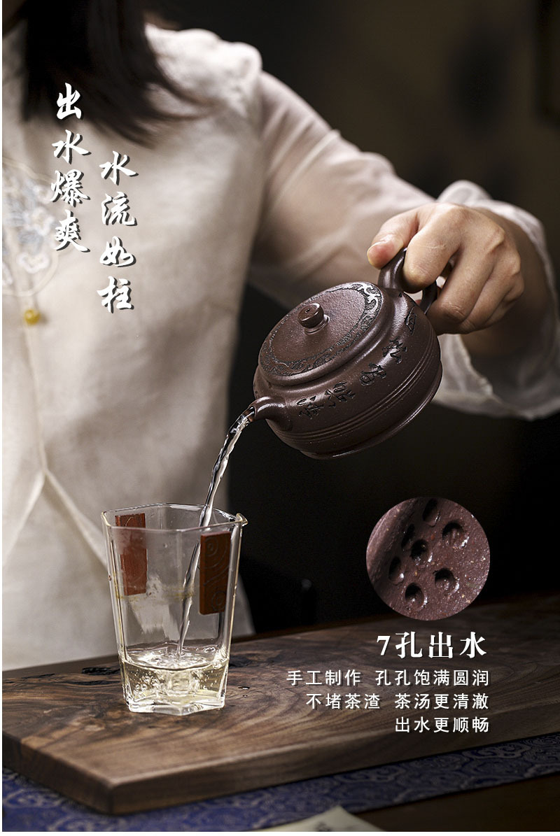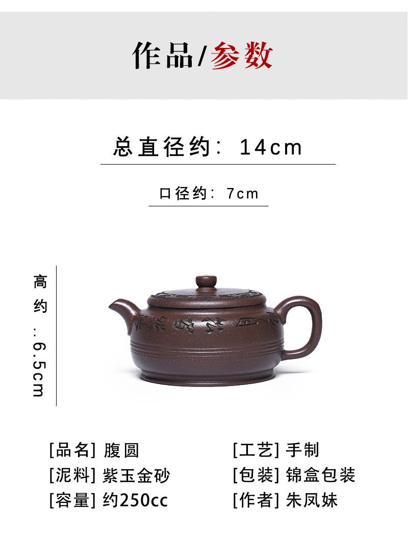 商品名称:宜兴手工紫砂壶家藏紫玉金砂腹圆家用茶具茶壶