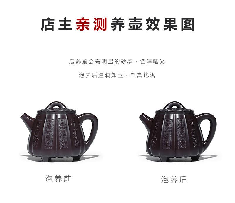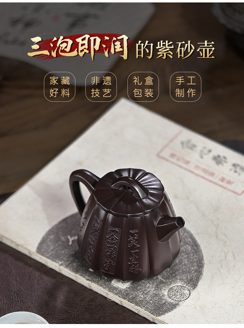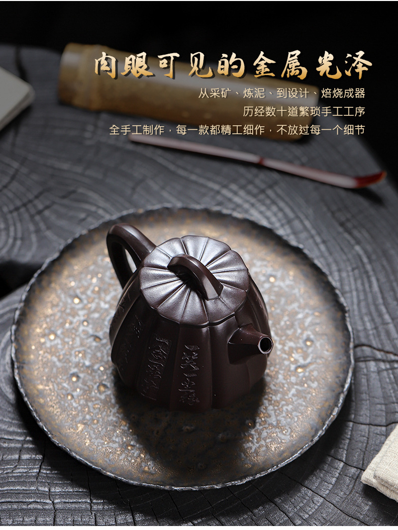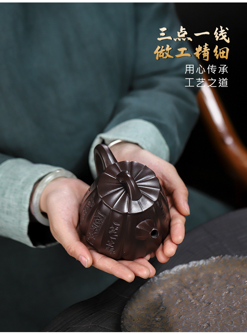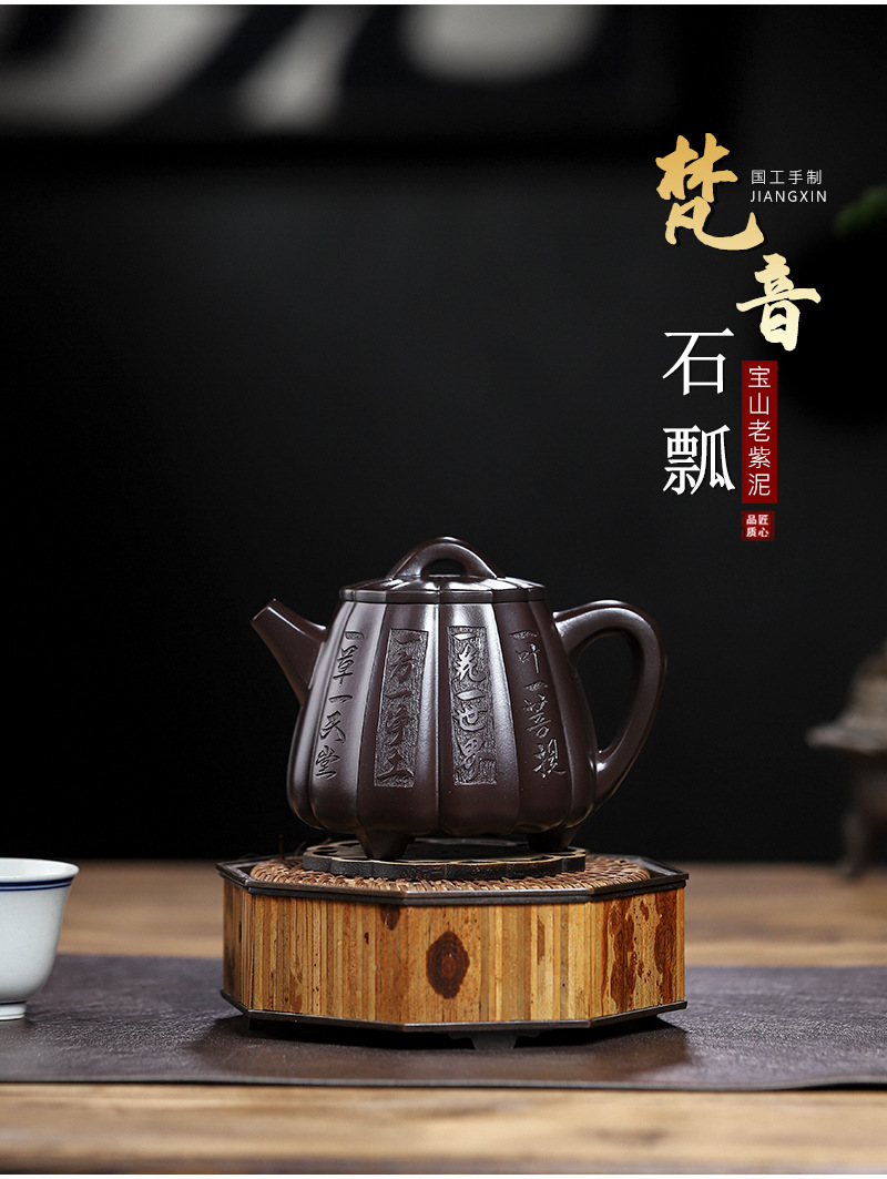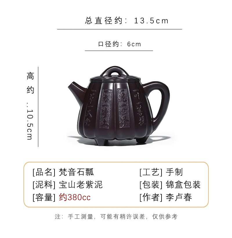 商品名称:宜兴手工紫砂壶宝山老紫泥梵音石瓢出水爆爽证书齐全