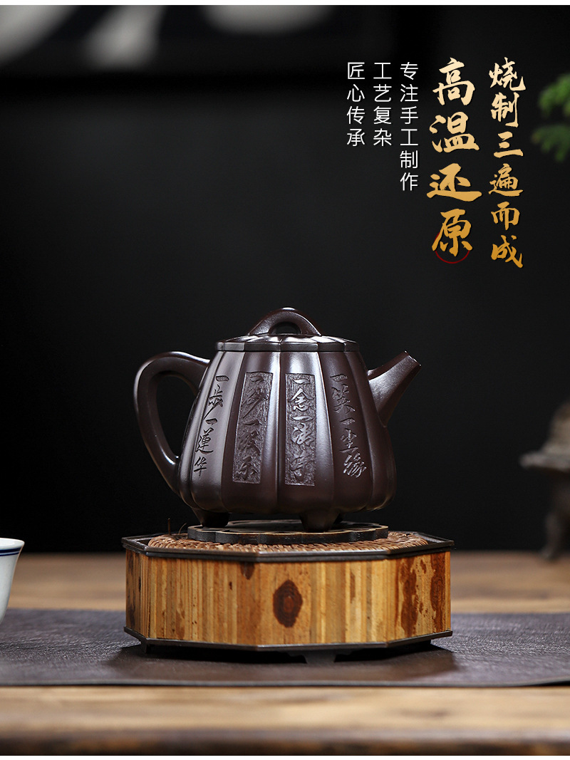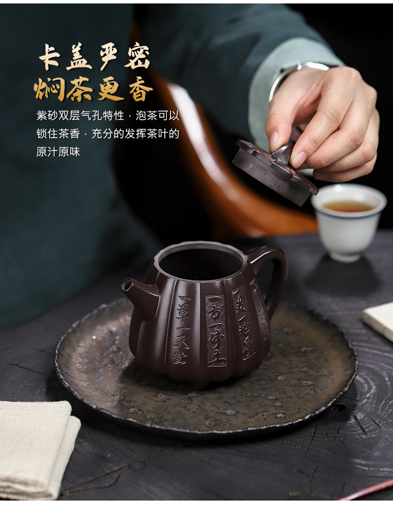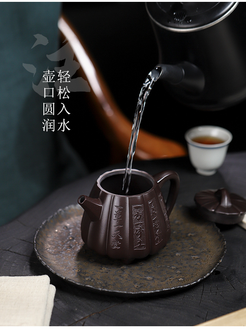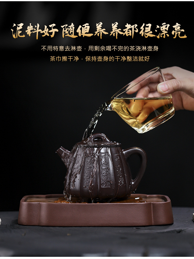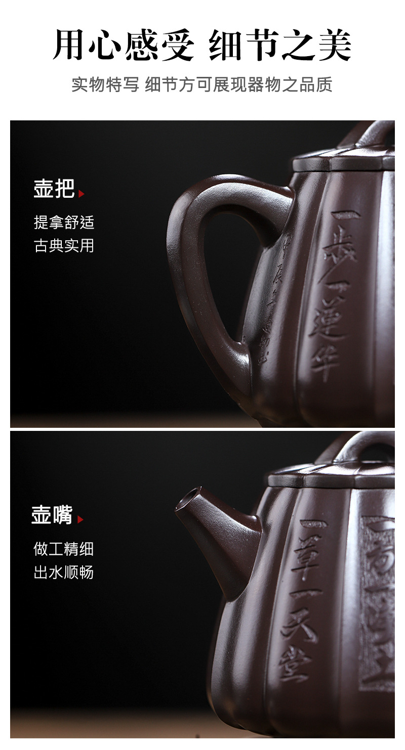 商品名称:宜兴手工紫砂壶宝山老紫泥梵音石瓢出水爆爽证书齐全