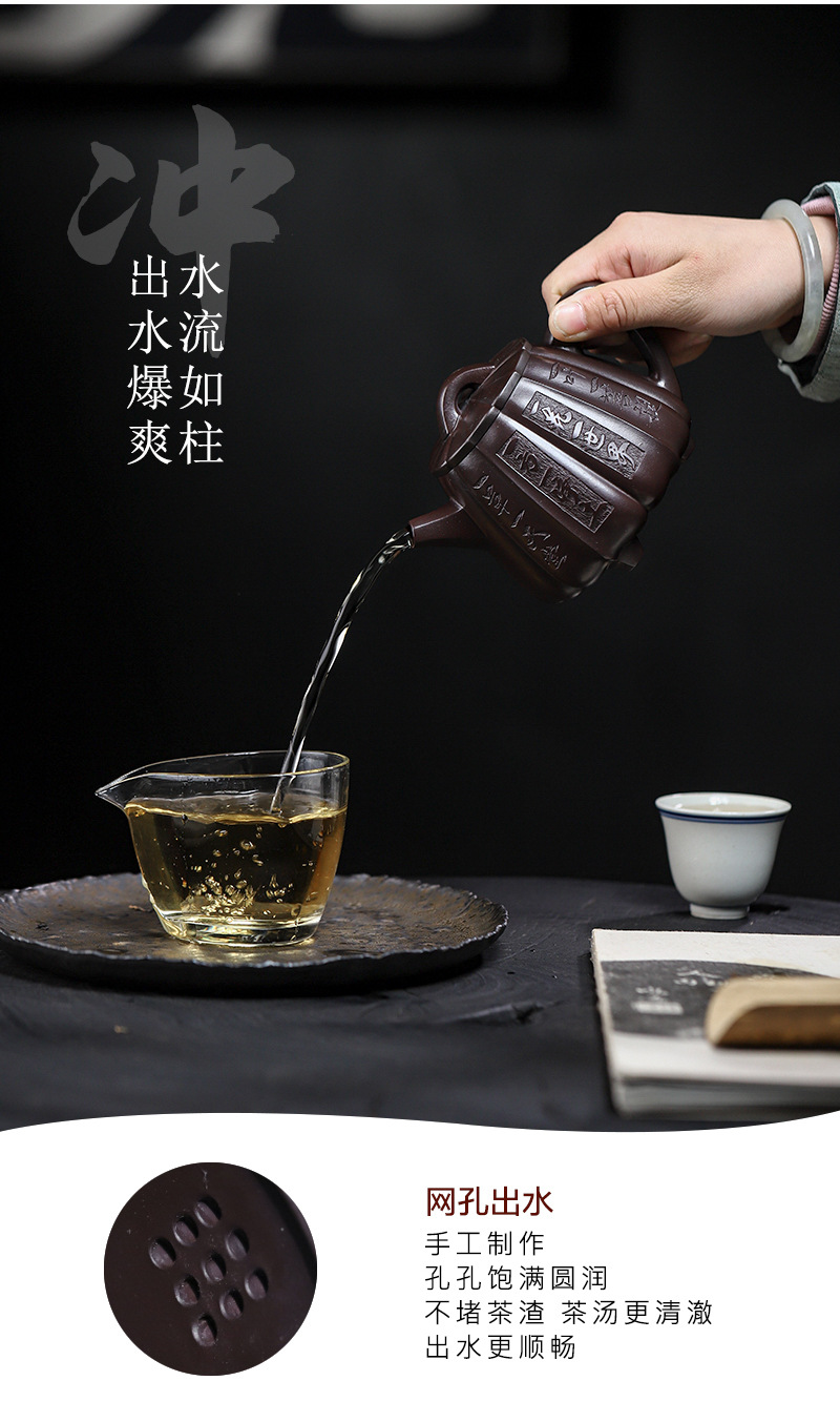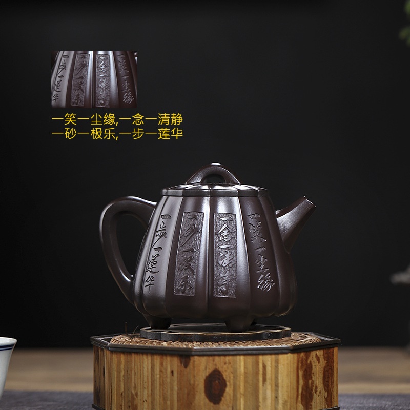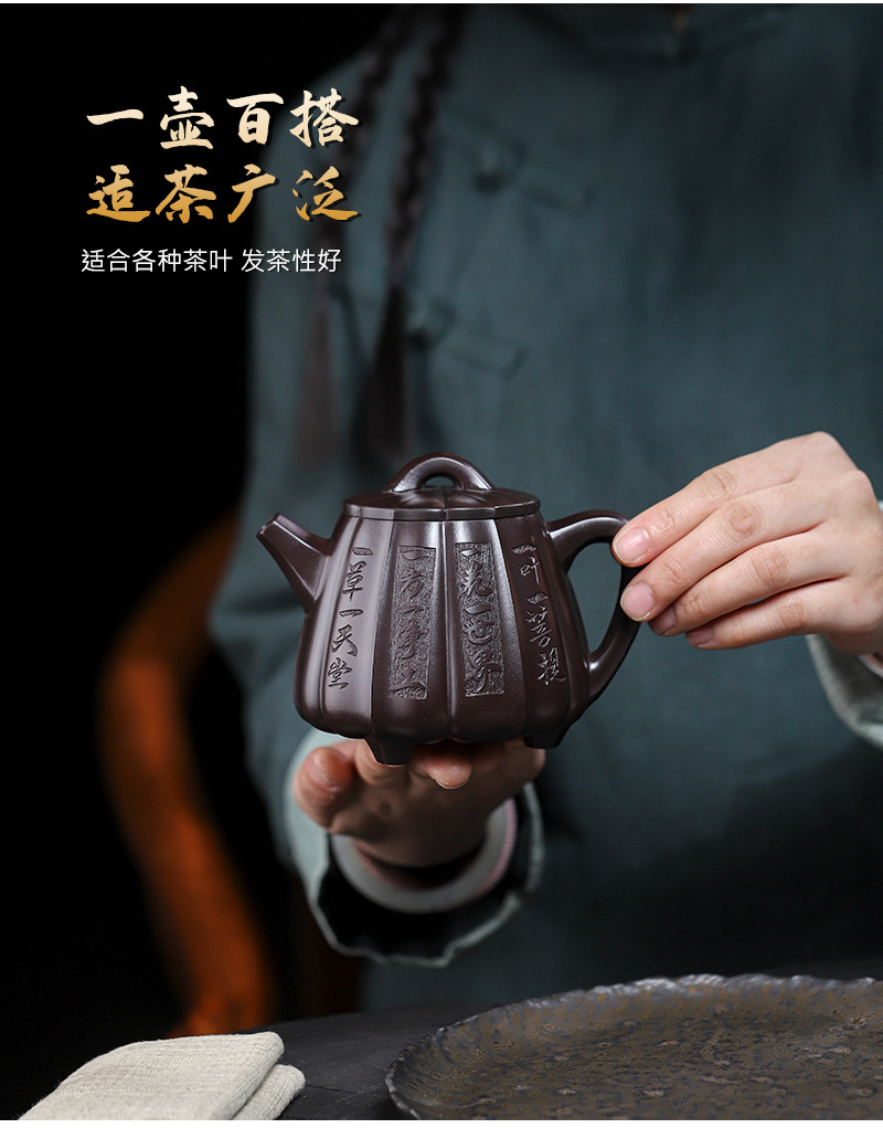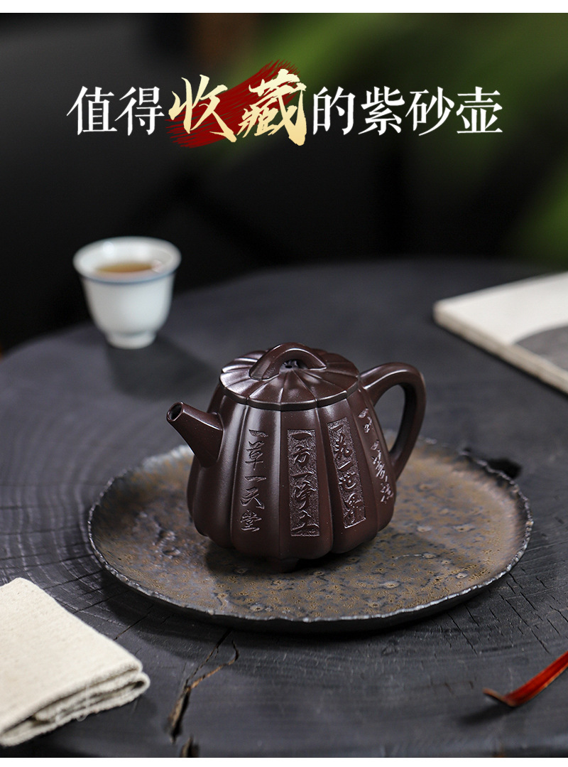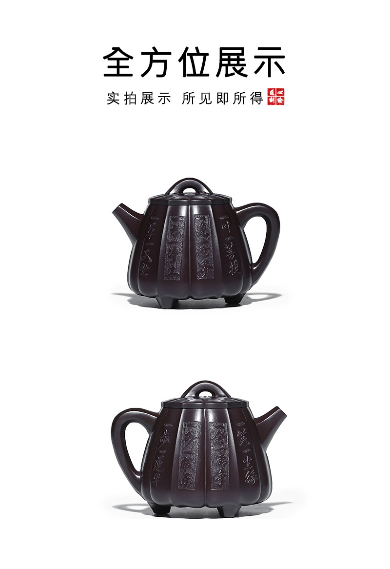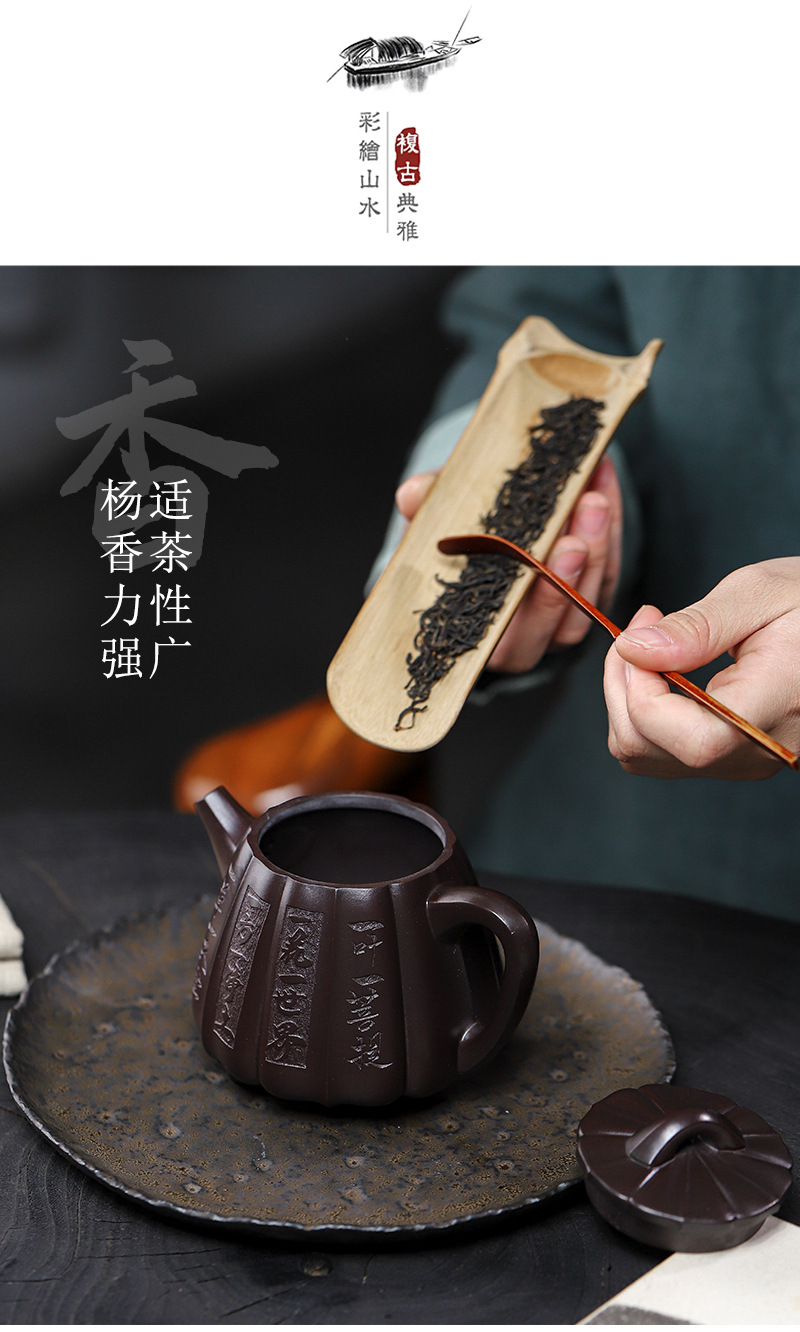 商品名称:宜兴手工紫砂壶宝山老紫泥梵音石瓢出水爆爽证书齐全