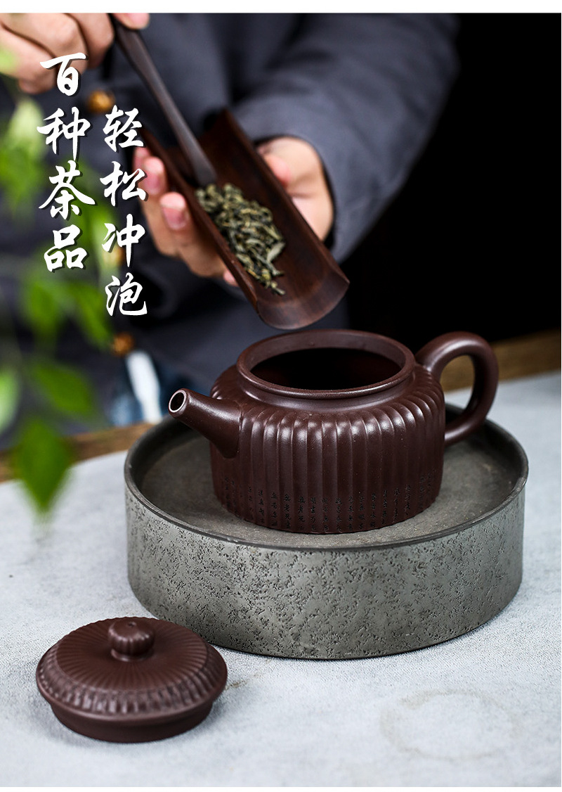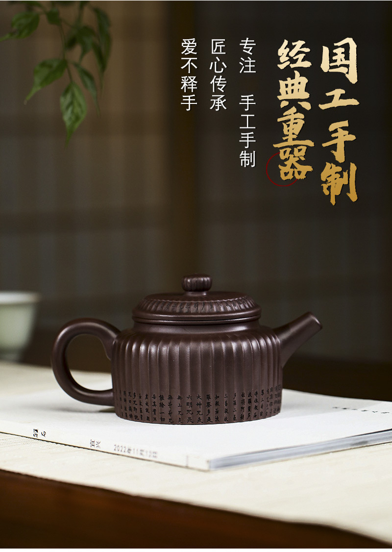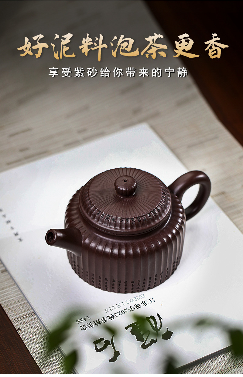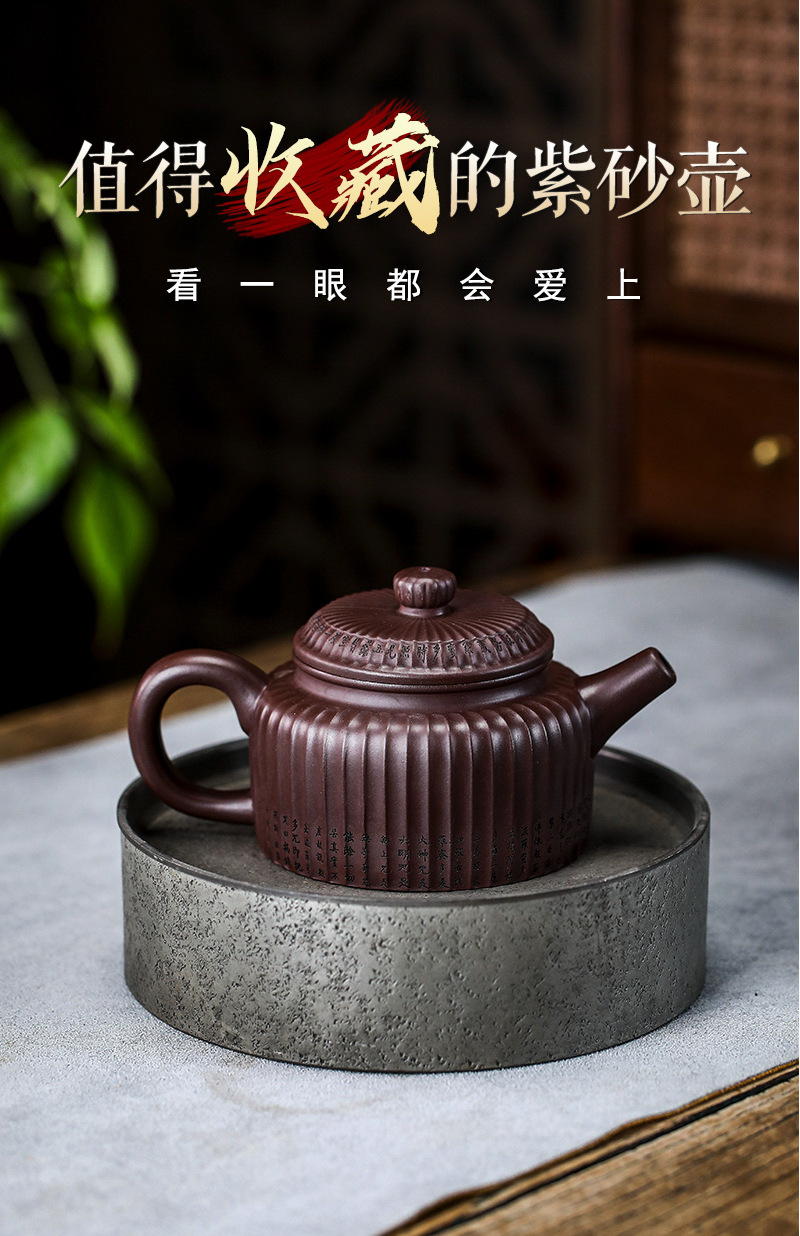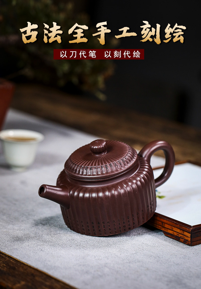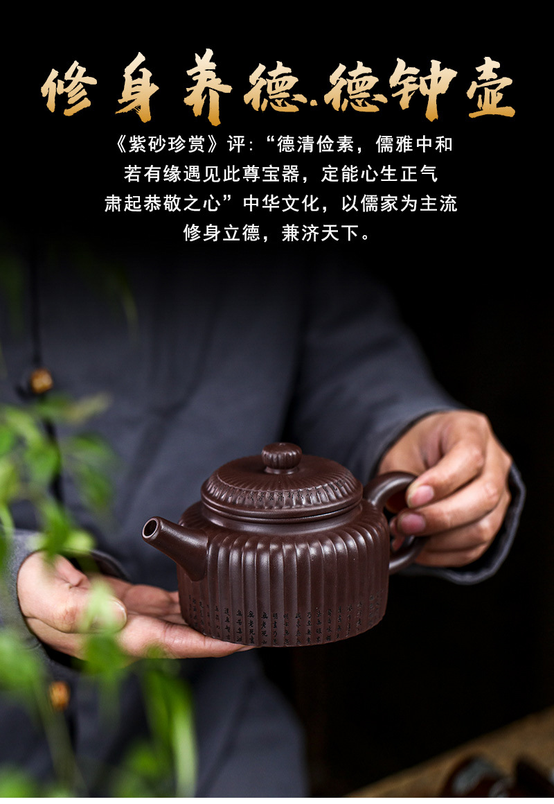 商品名称:宜兴手工紫砂壶证书全家藏紫茄泥心经德钟易包浆出水暴爽滴水不漏