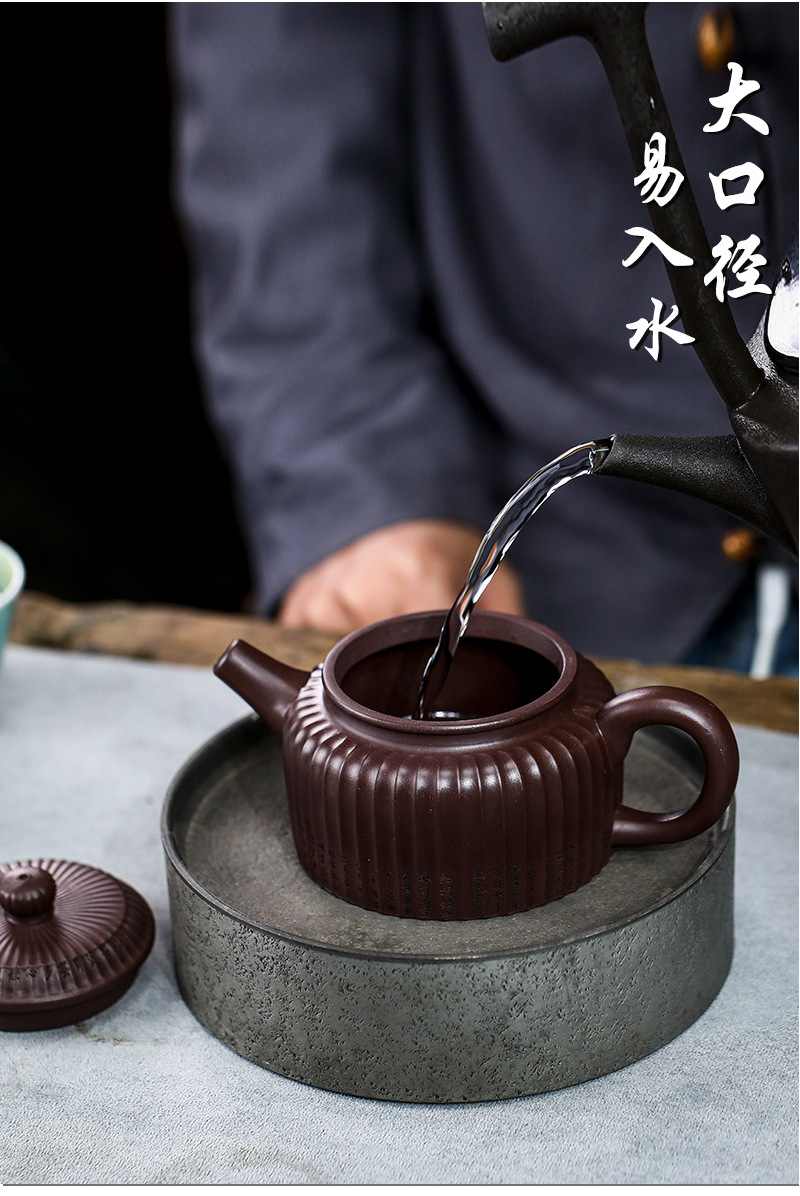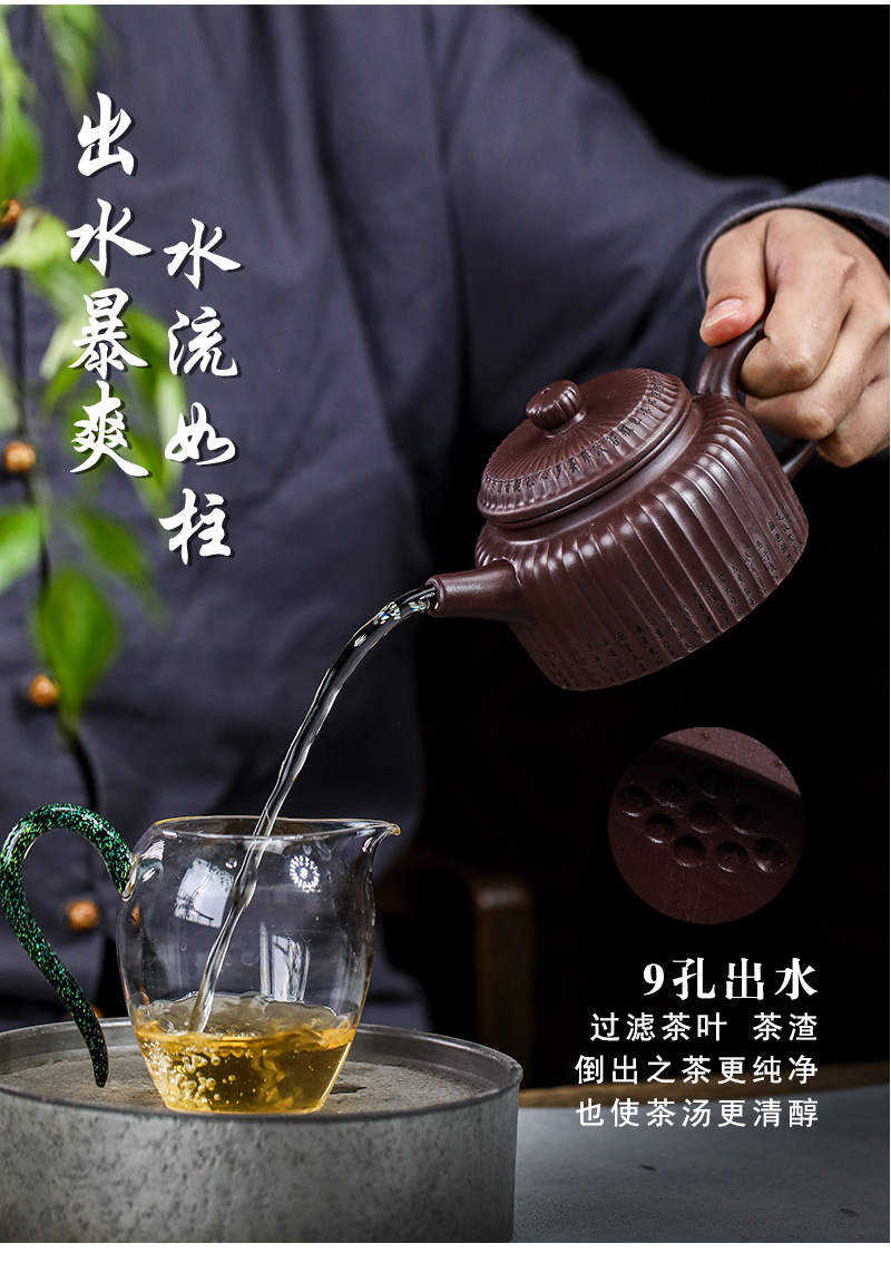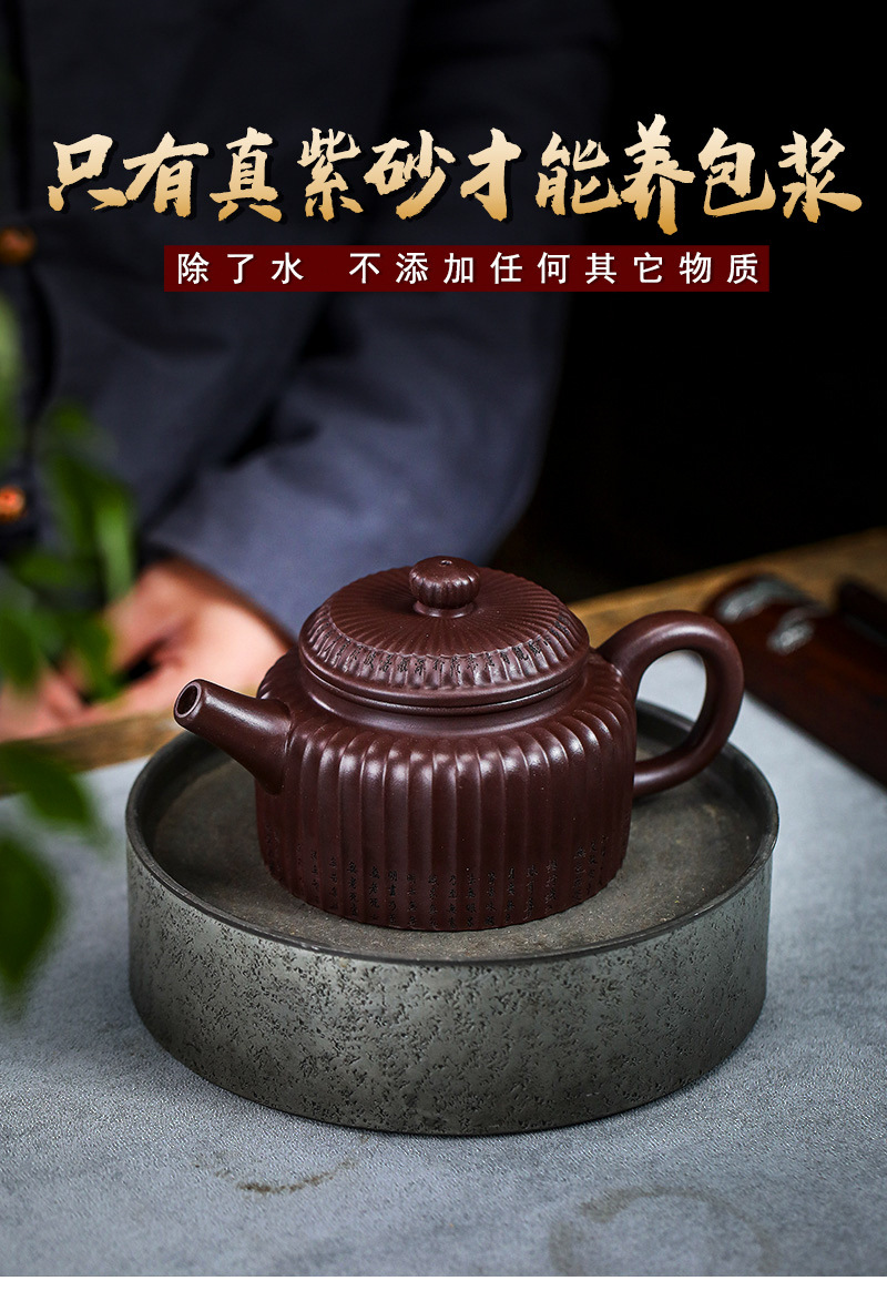 宜兴手工紫砂壶证书全家藏紫茄泥心经德钟易包浆出水暴爽滴水不漏