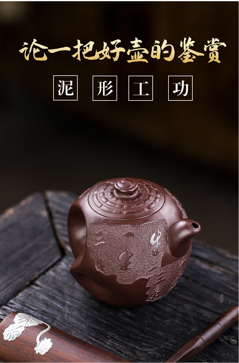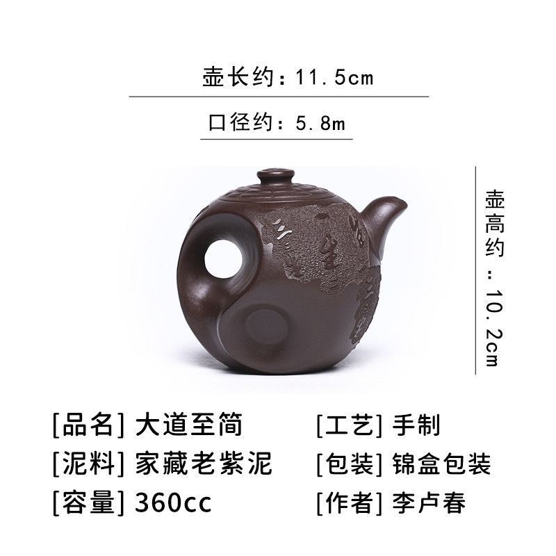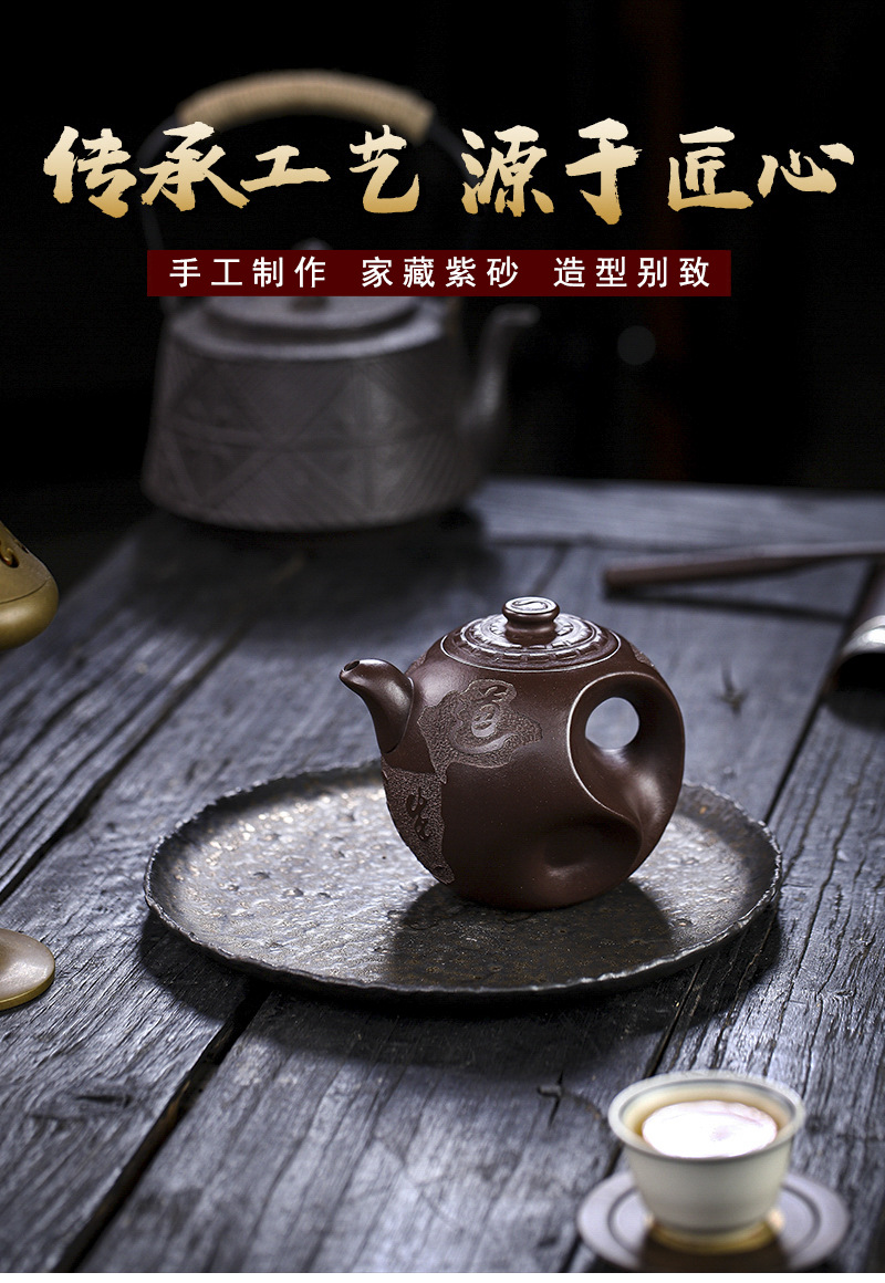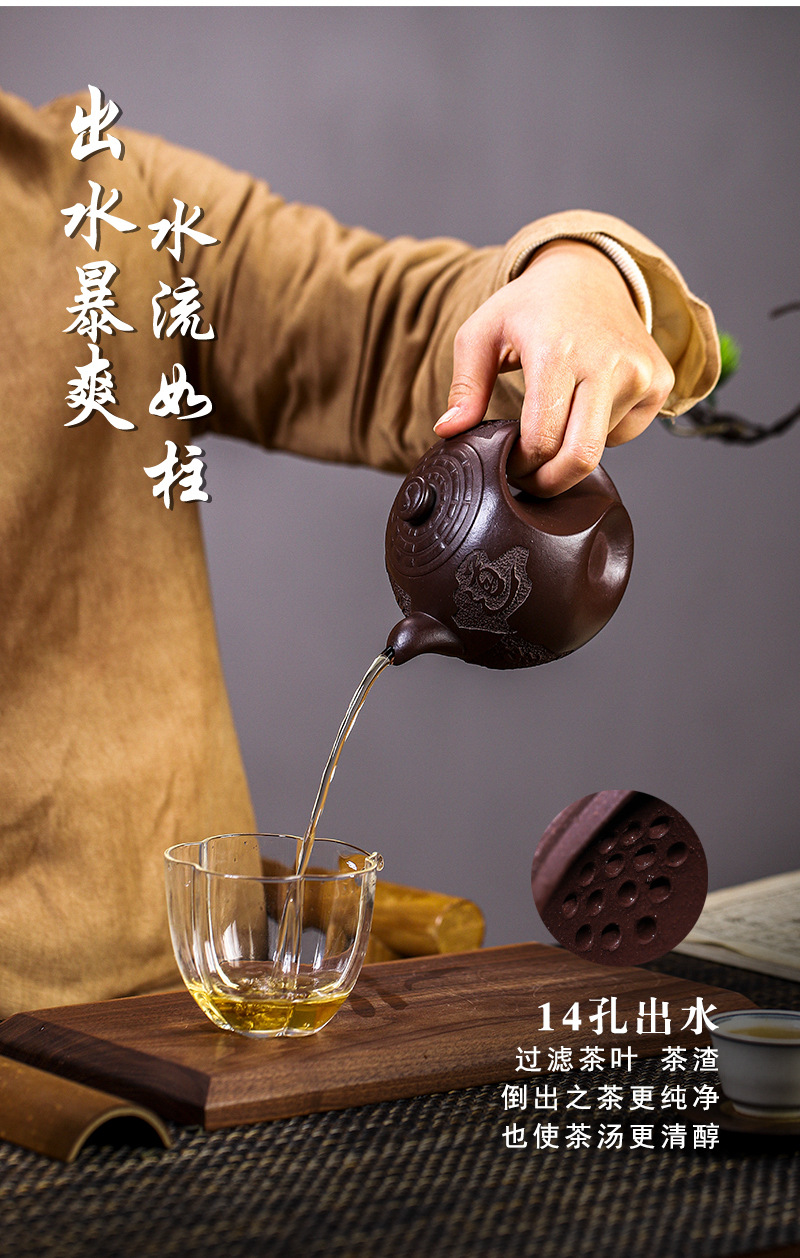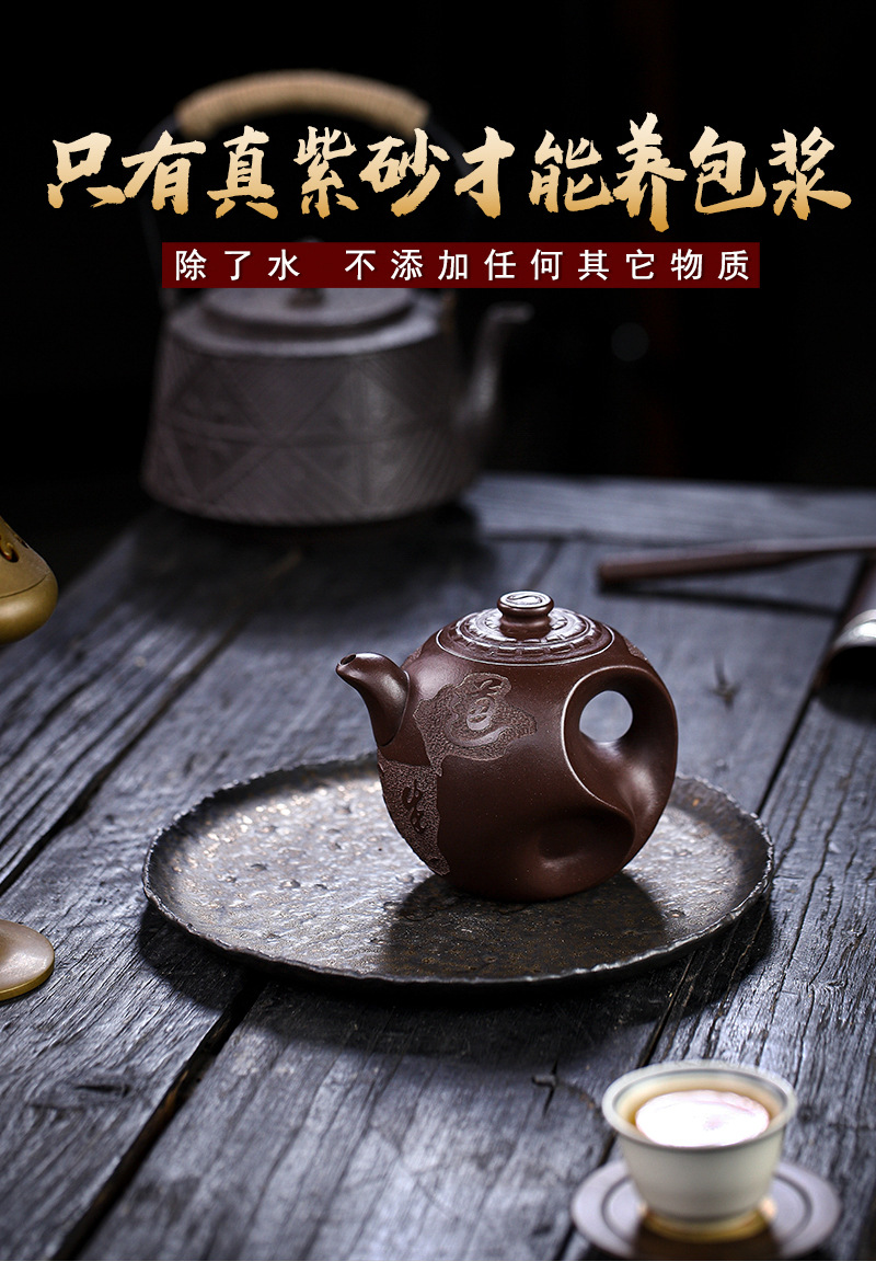 商品名称:宜兴手工紫砂壶家藏老紫泥证书齐大道至简易包浆出水顺畅滴水不漏