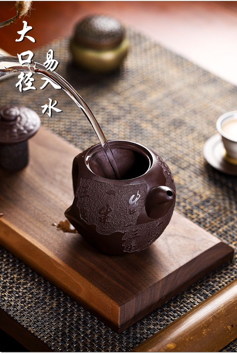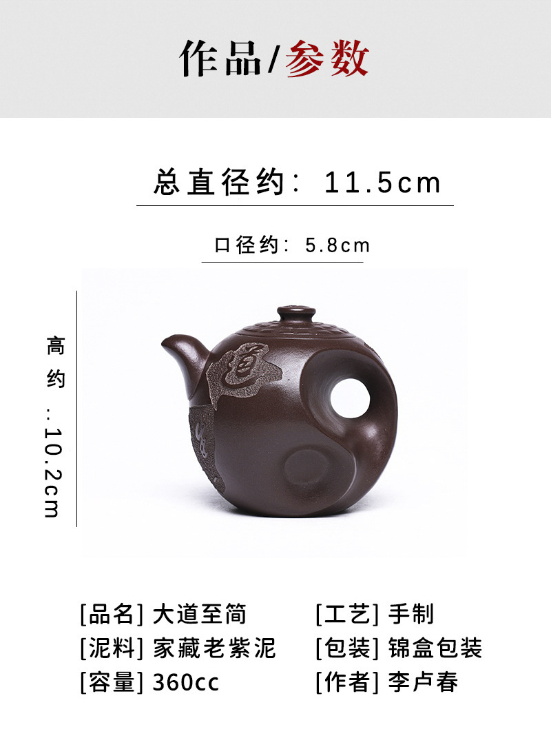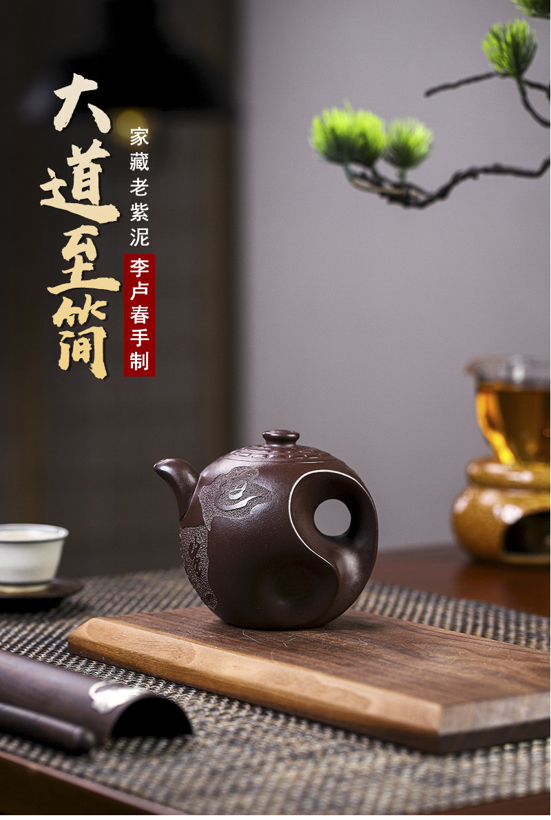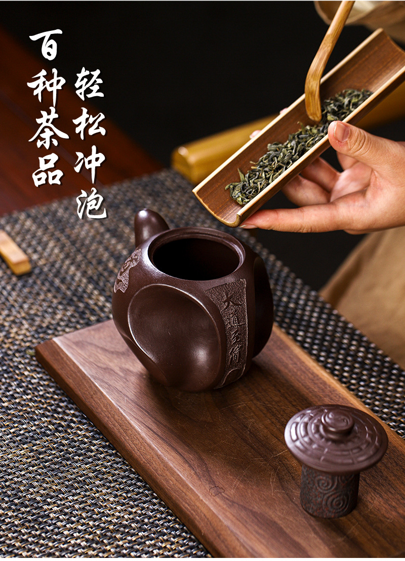 商品名称:宜兴手工紫砂壶家藏老紫泥证书齐大道至简易包浆出水顺畅滴水不漏
