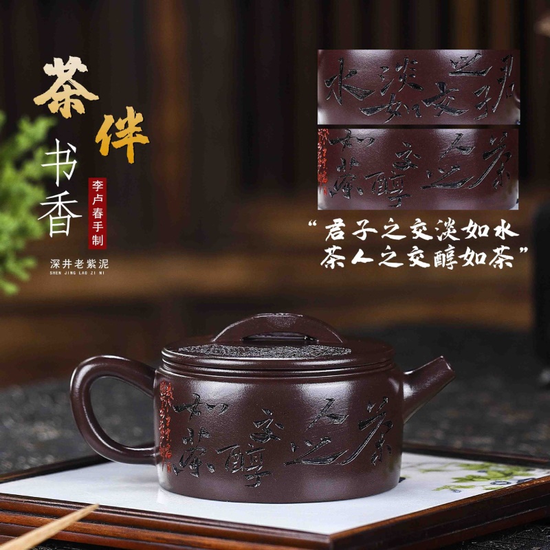 商品名称:宜兴手工紫砂壶深井老紫泥证书齐全 茶伴书香 易包浆 出水暴爽