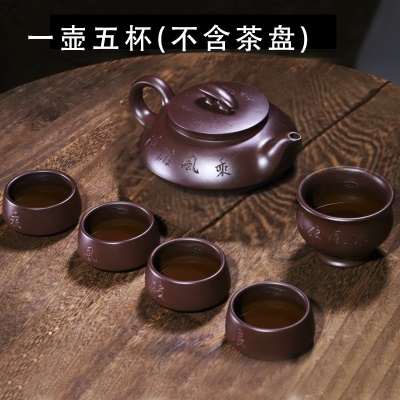 宜兴手工紫砂壶 福伴虾趣 紫玉金砂国工手制家用茶具茶壶证书齐全