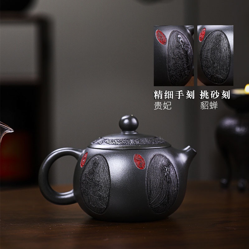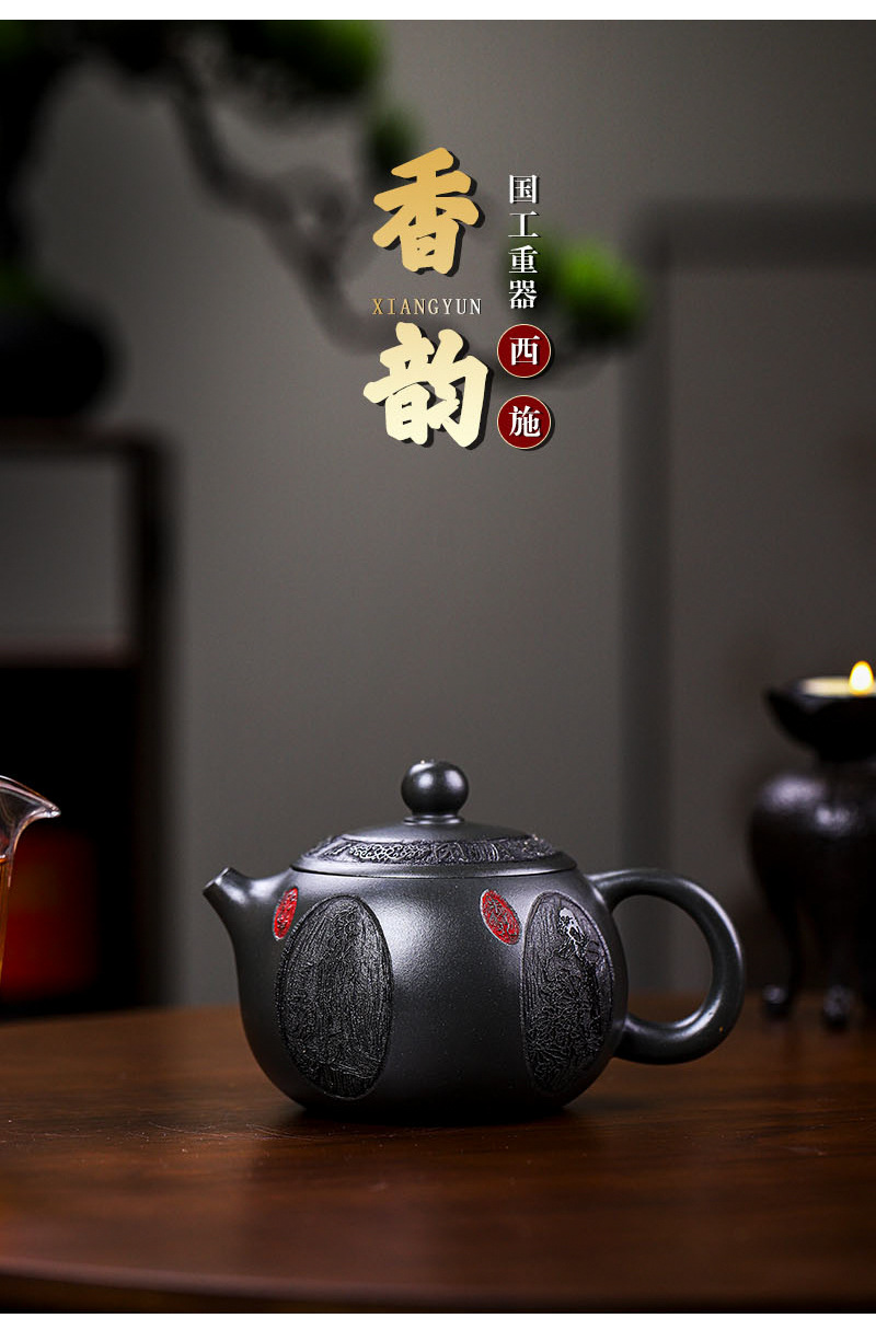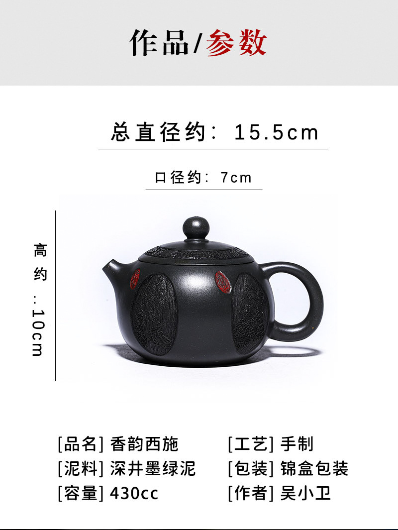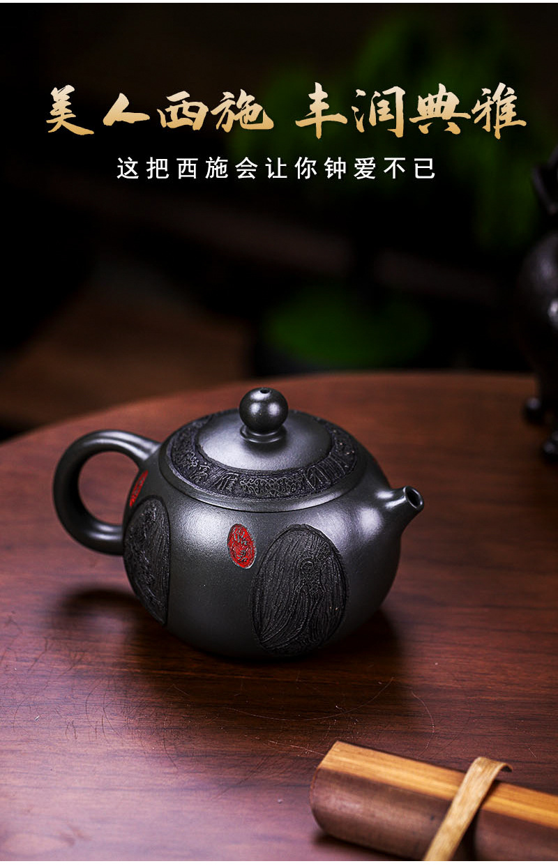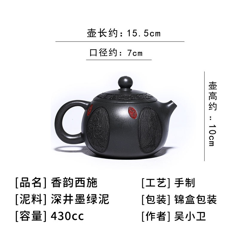商品名称:宜兴手工紫砂壶养生壶 香韵西施深井墨绿泥做工精细出水顺畅
