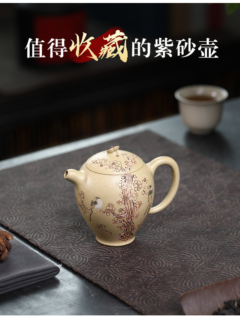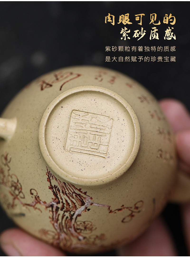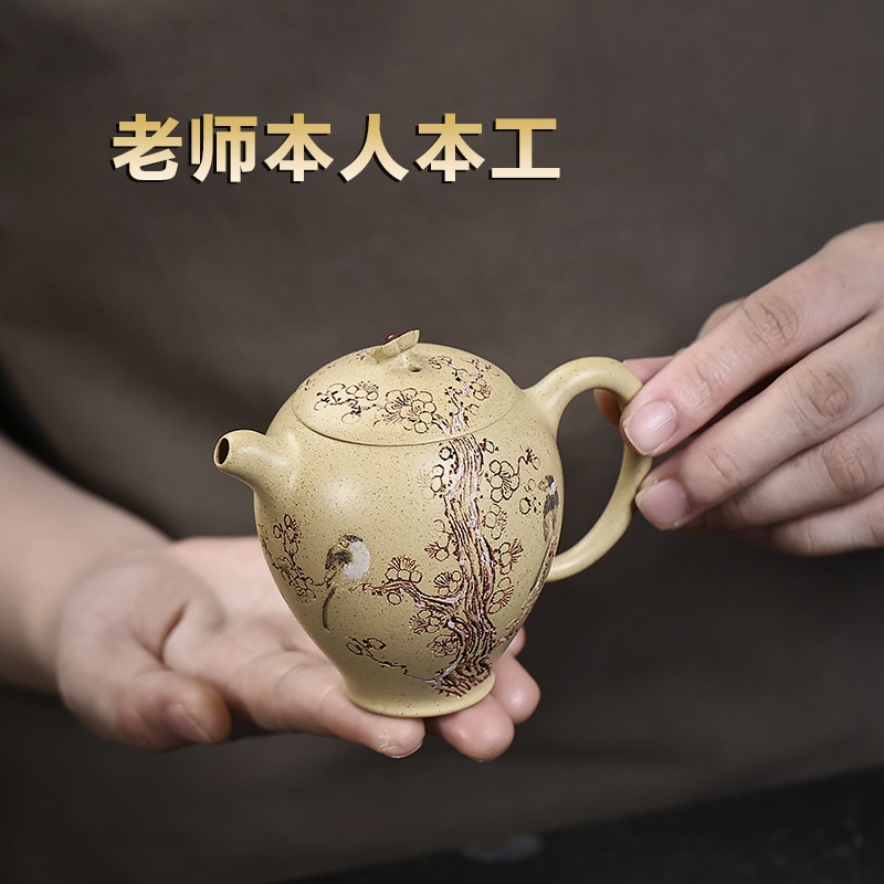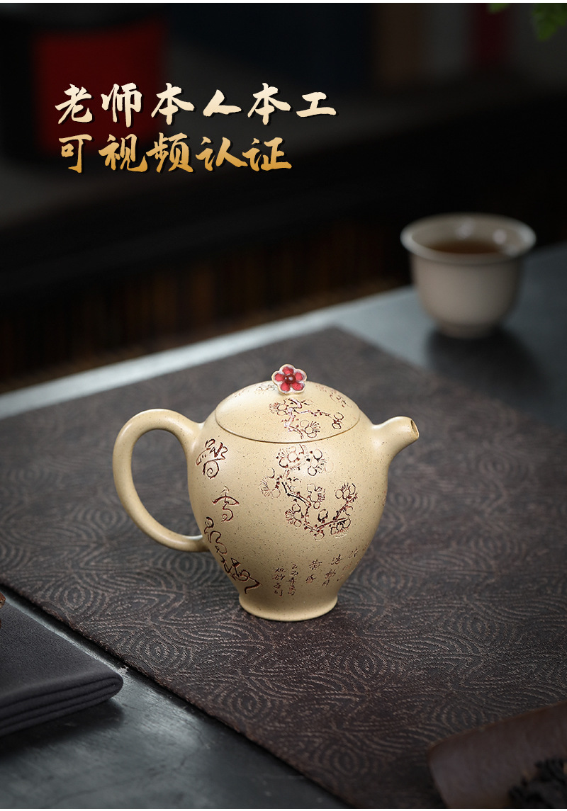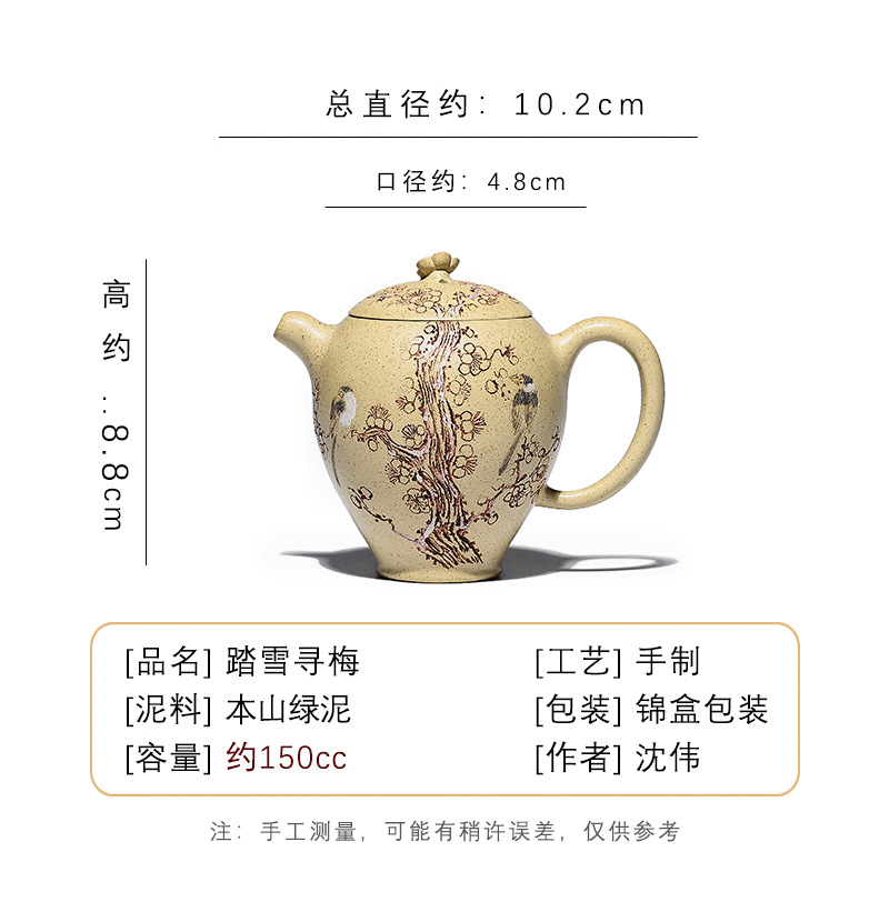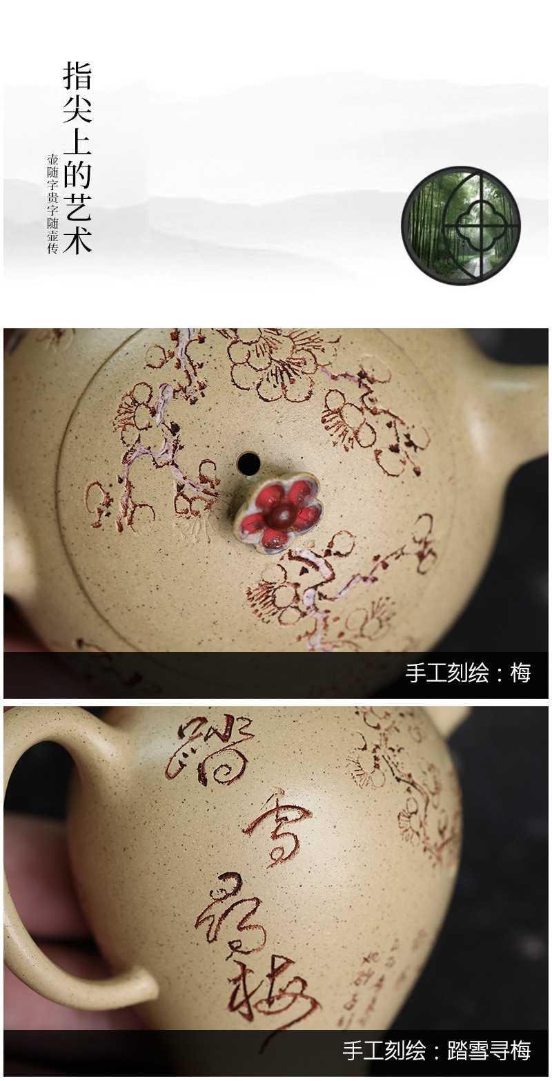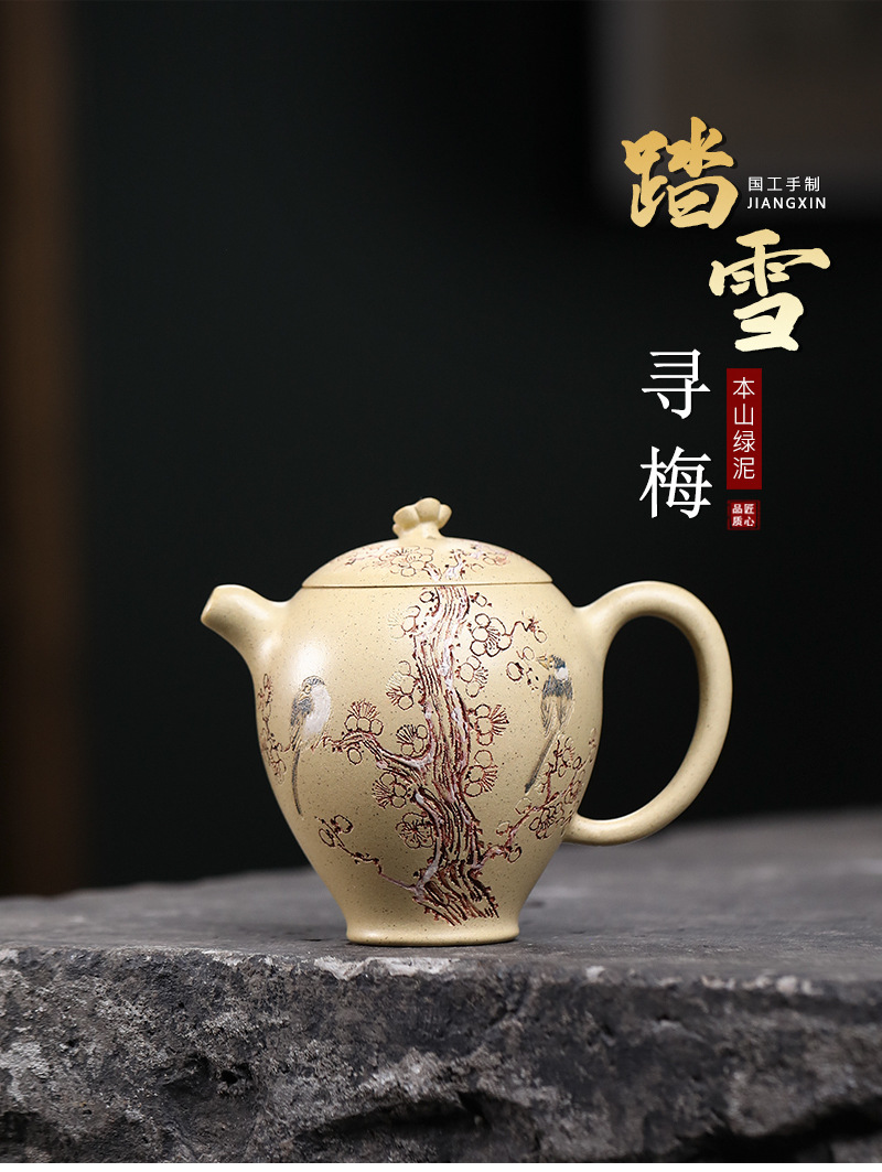 商品名称:宜兴手工紫砂壶证书全 本山绿泥 踏雪寻梅易包浆出水暴爽滴水不漏