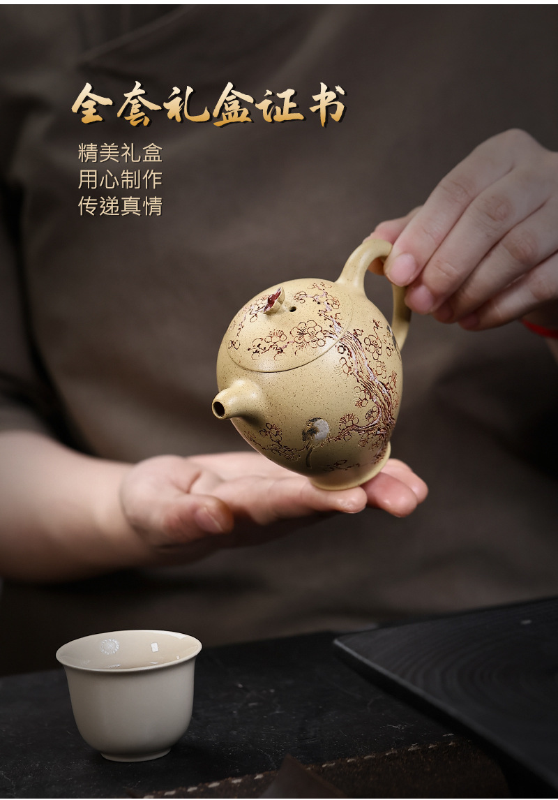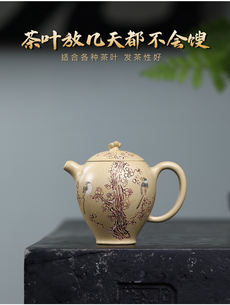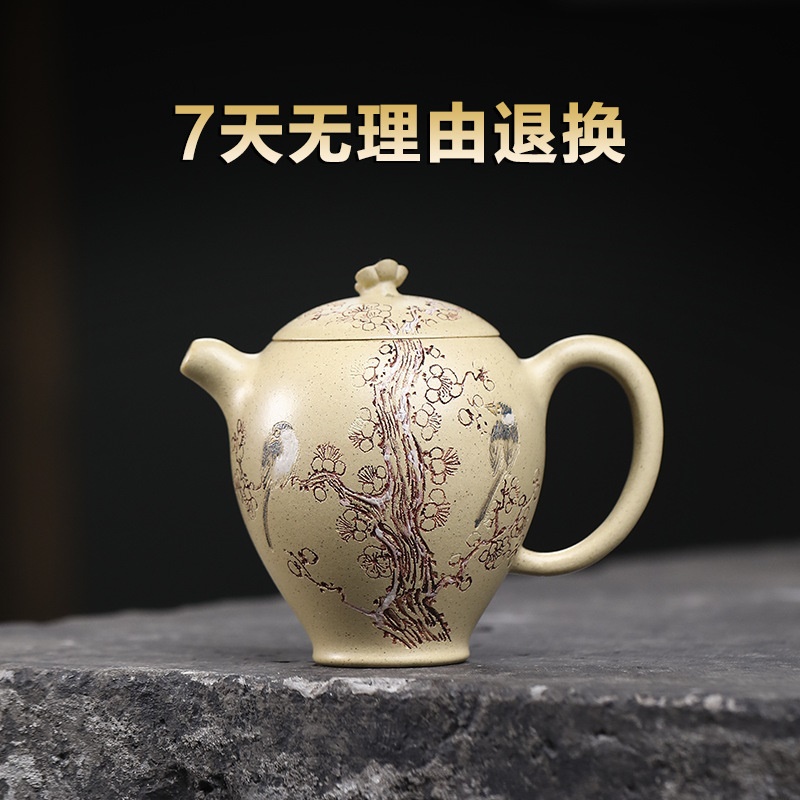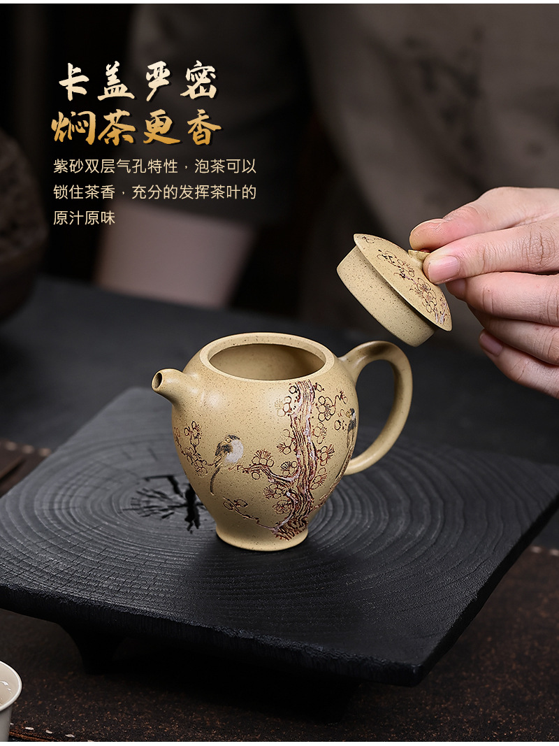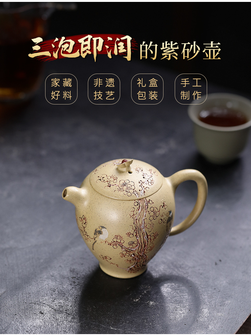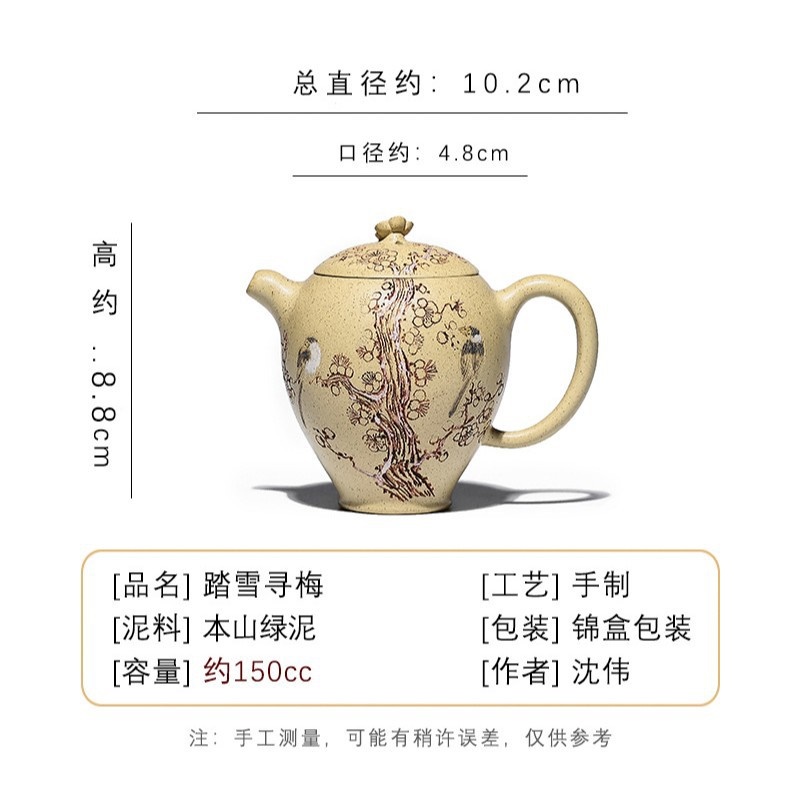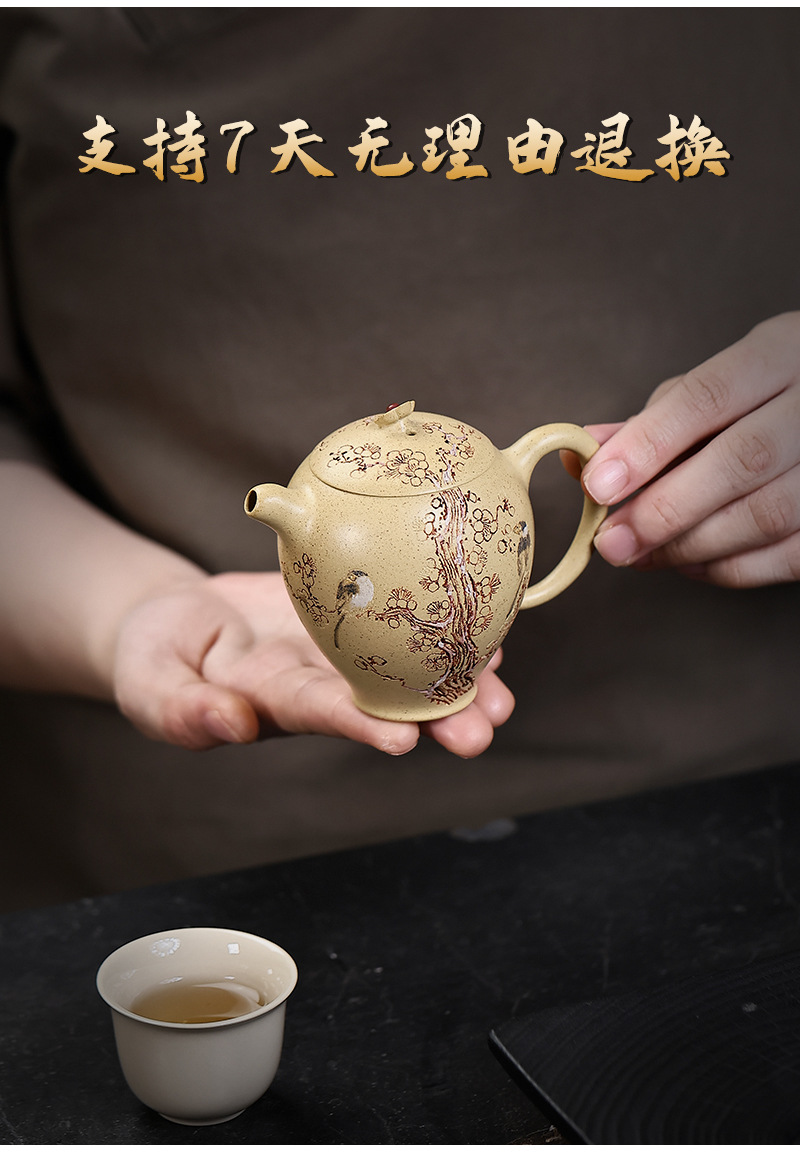 商品名称:宜兴手工紫砂壶证书全 本山绿泥 踏雪寻梅易包浆出水暴爽滴水不漏