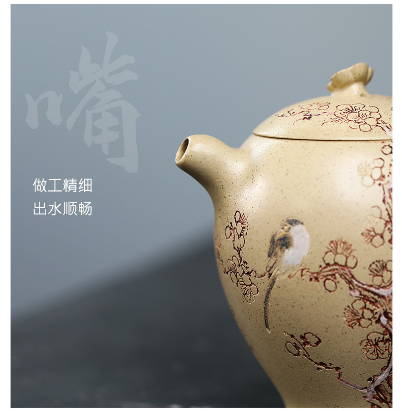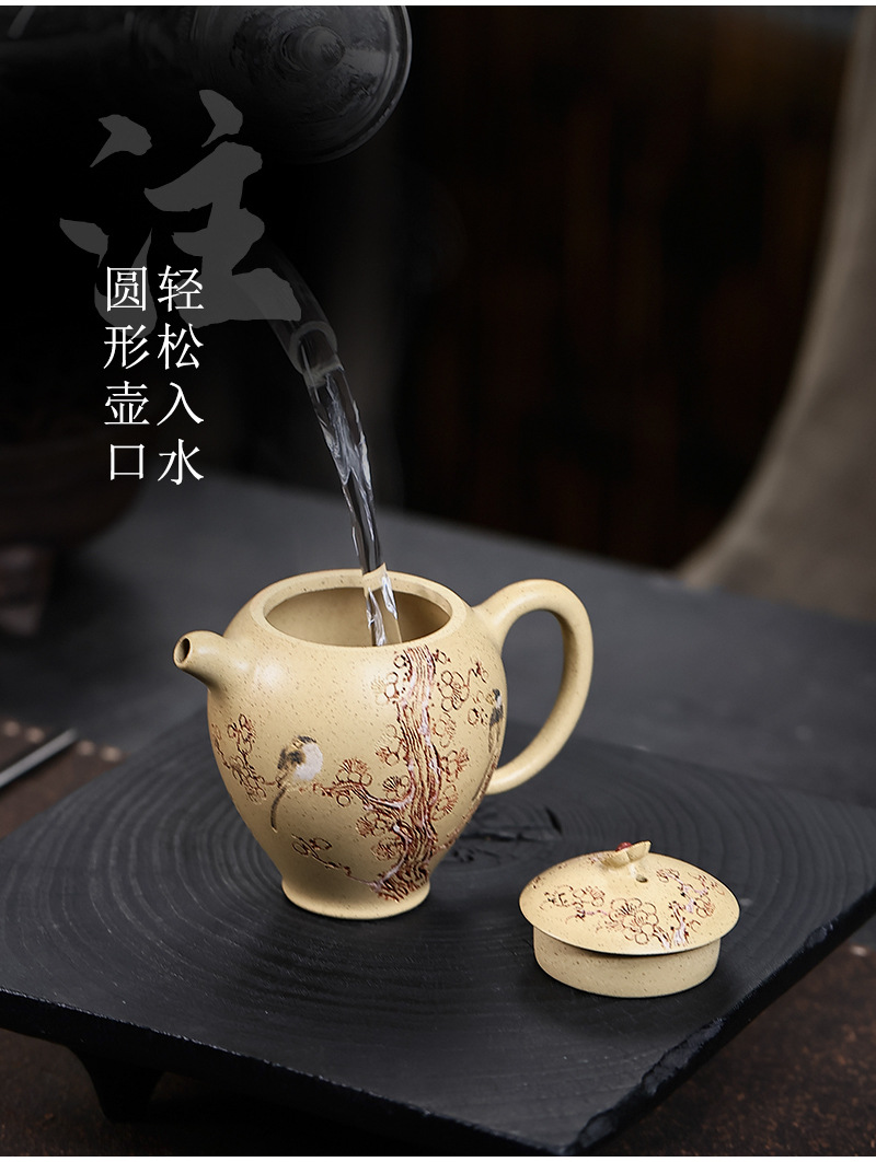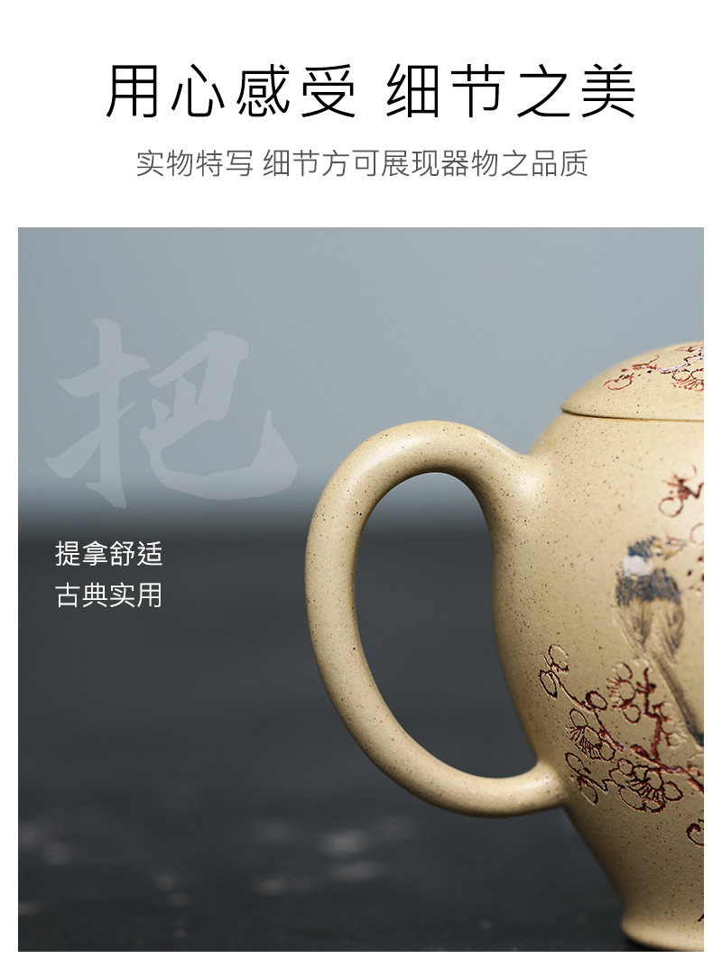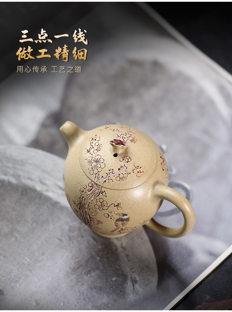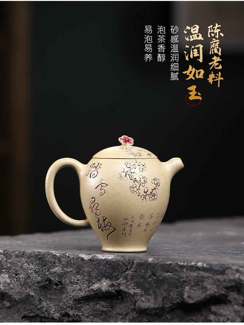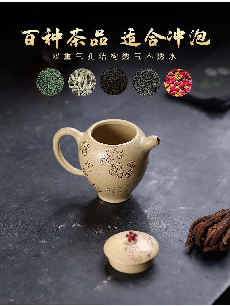 商品名称:宜兴手工紫砂壶证书全 本山绿泥 踏雪寻梅易包浆出水暴爽滴水不漏