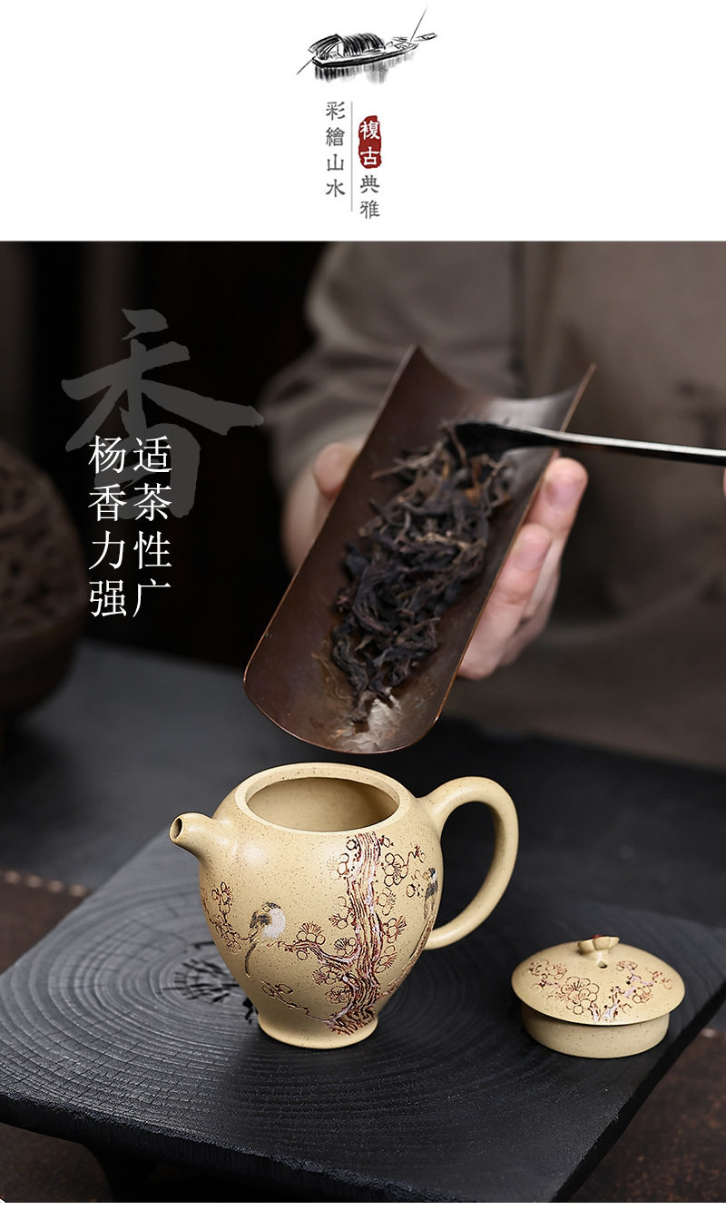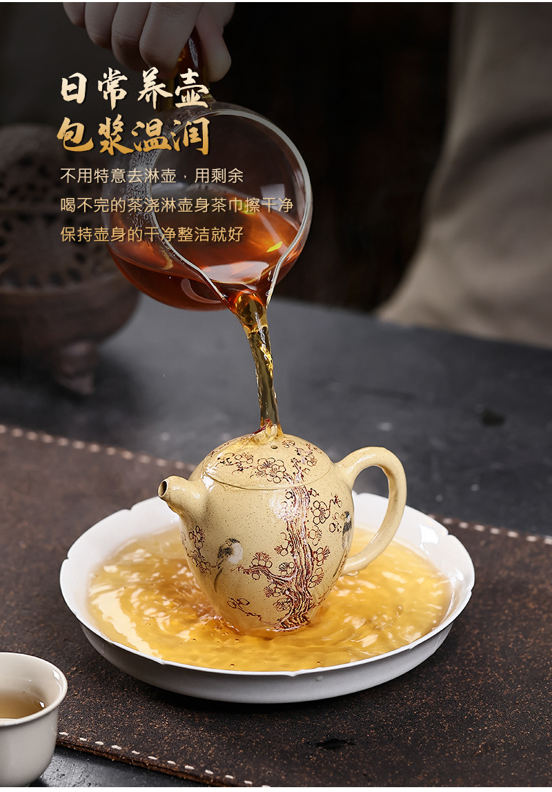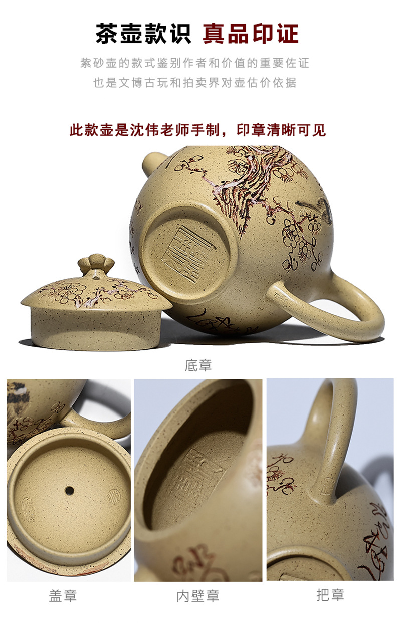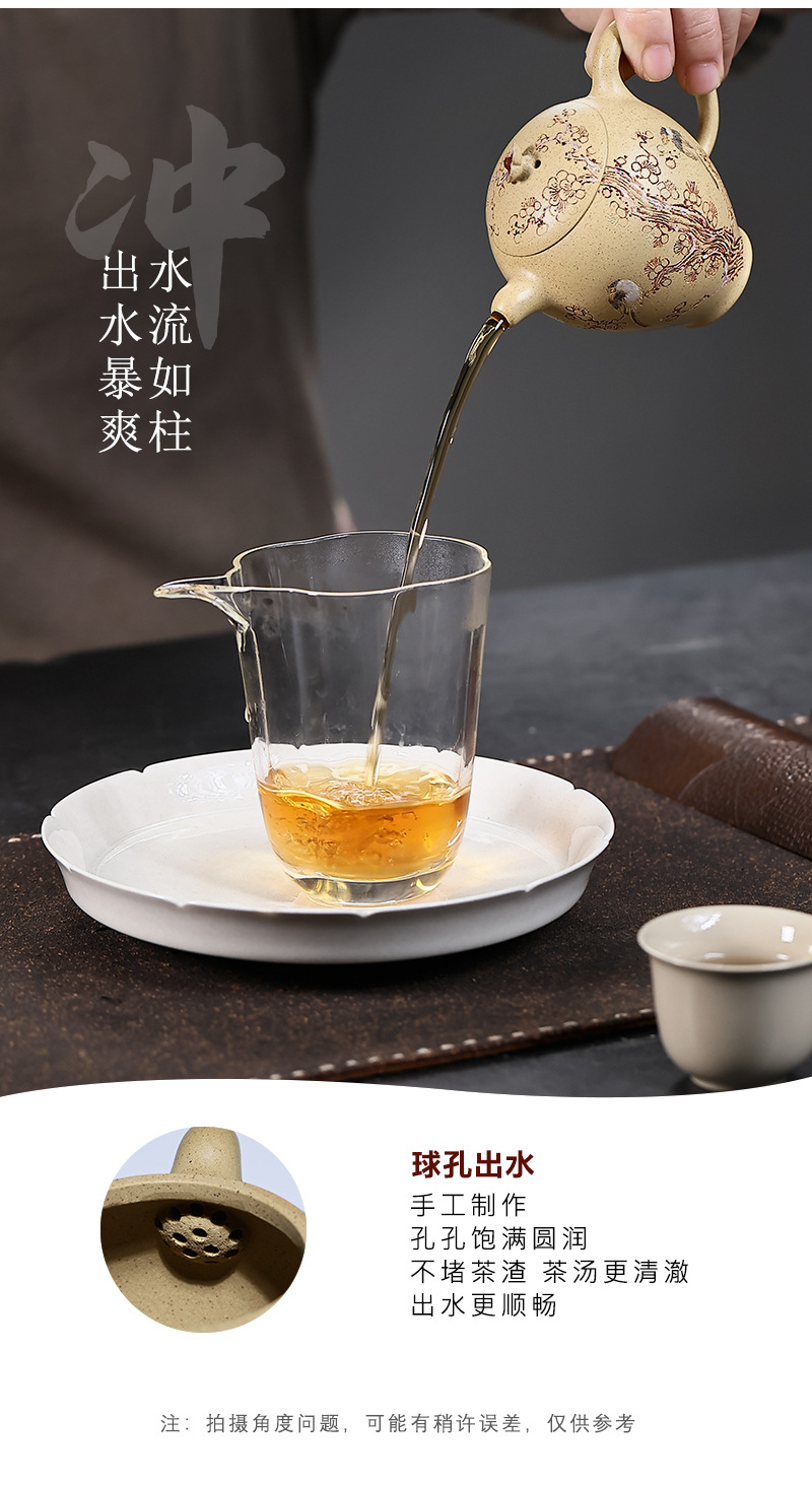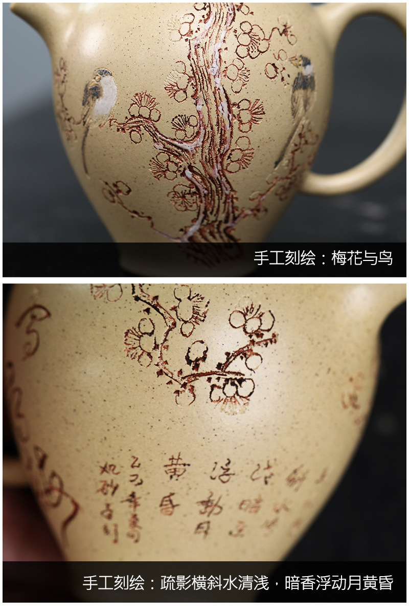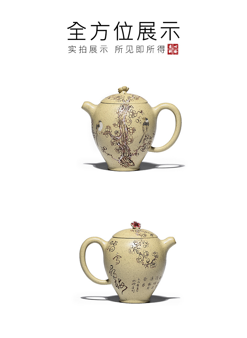 商品名称:宜兴手工紫砂壶证书全 本山绿泥 踏雪寻梅易包浆出水暴爽滴水不漏