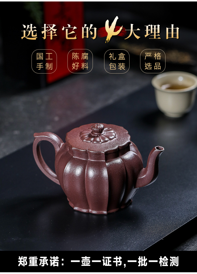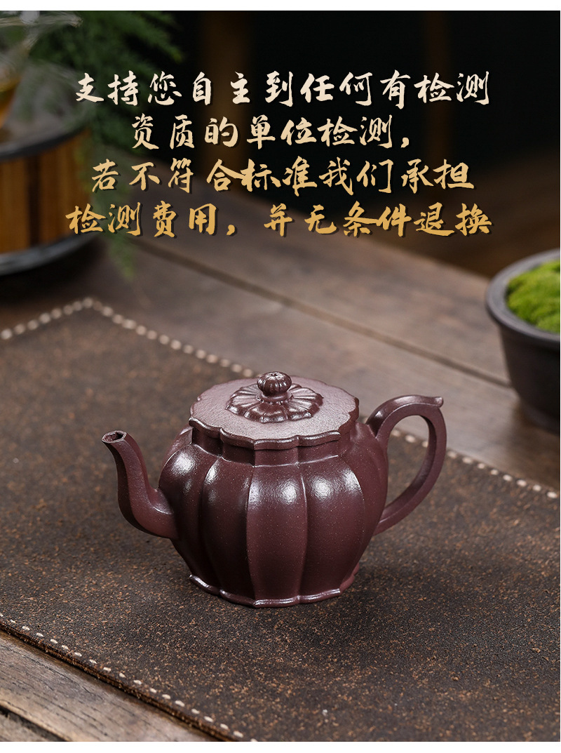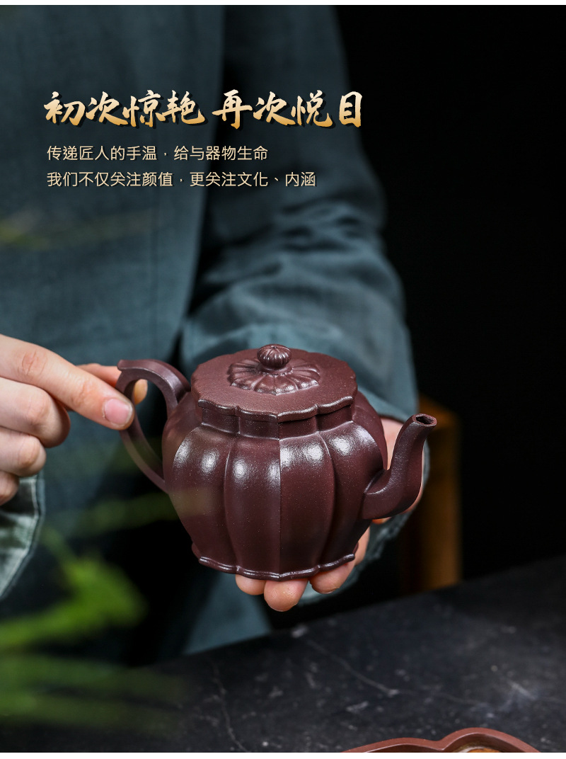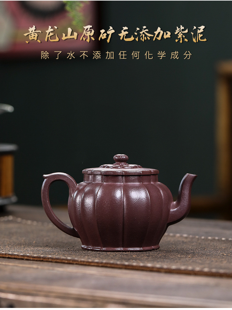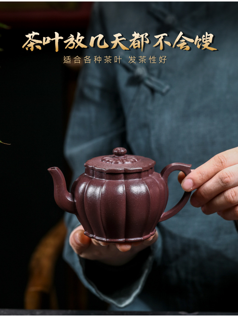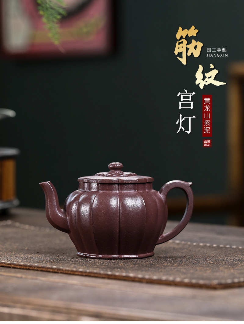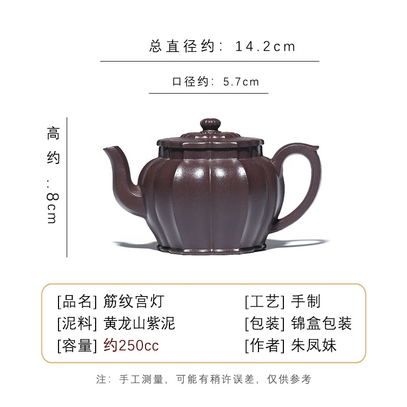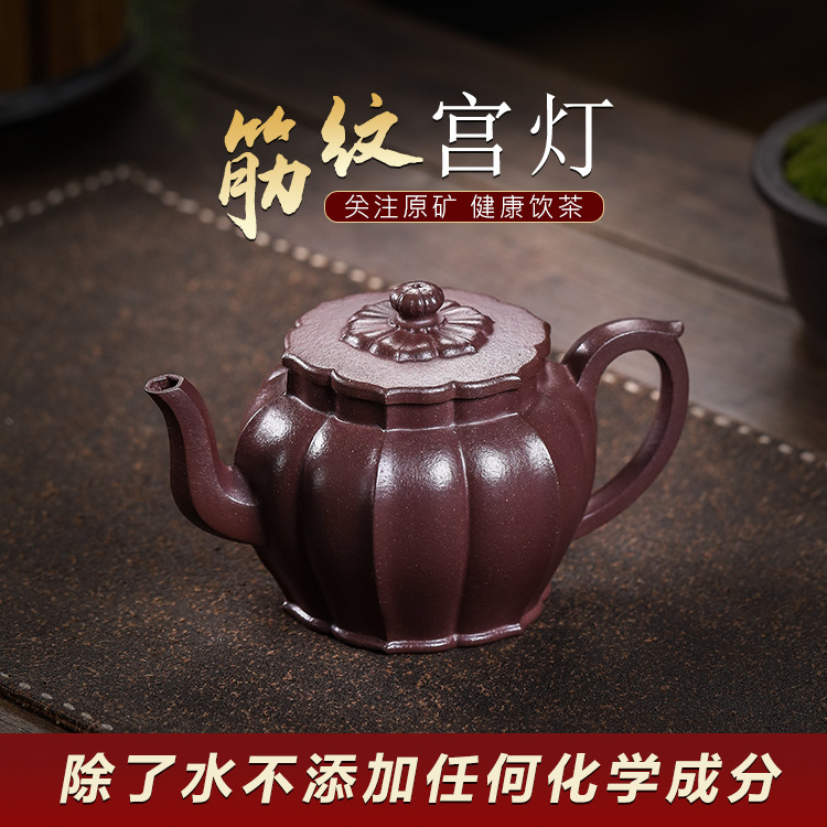 商品名称:宜兴原矿无添加手工紫砂壶黄龙山紫泥筋纹宫灯家用茶具茶壶泡茶壶