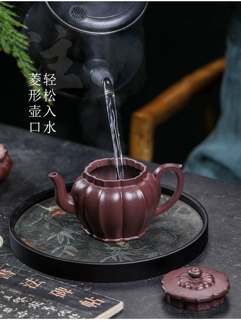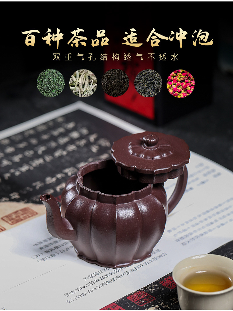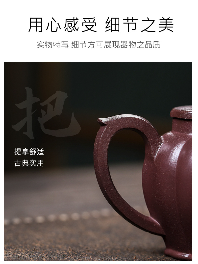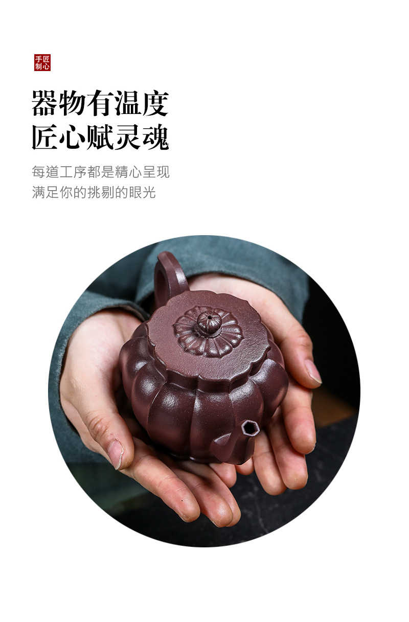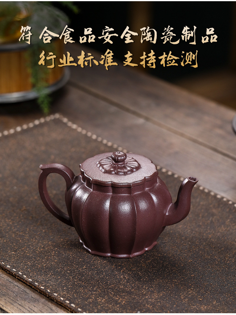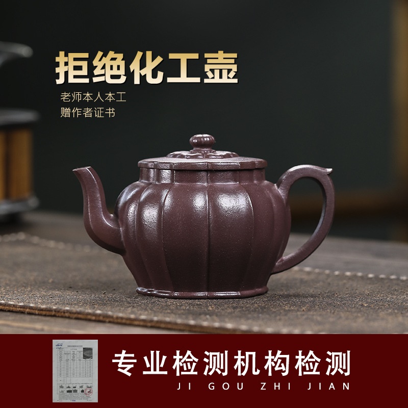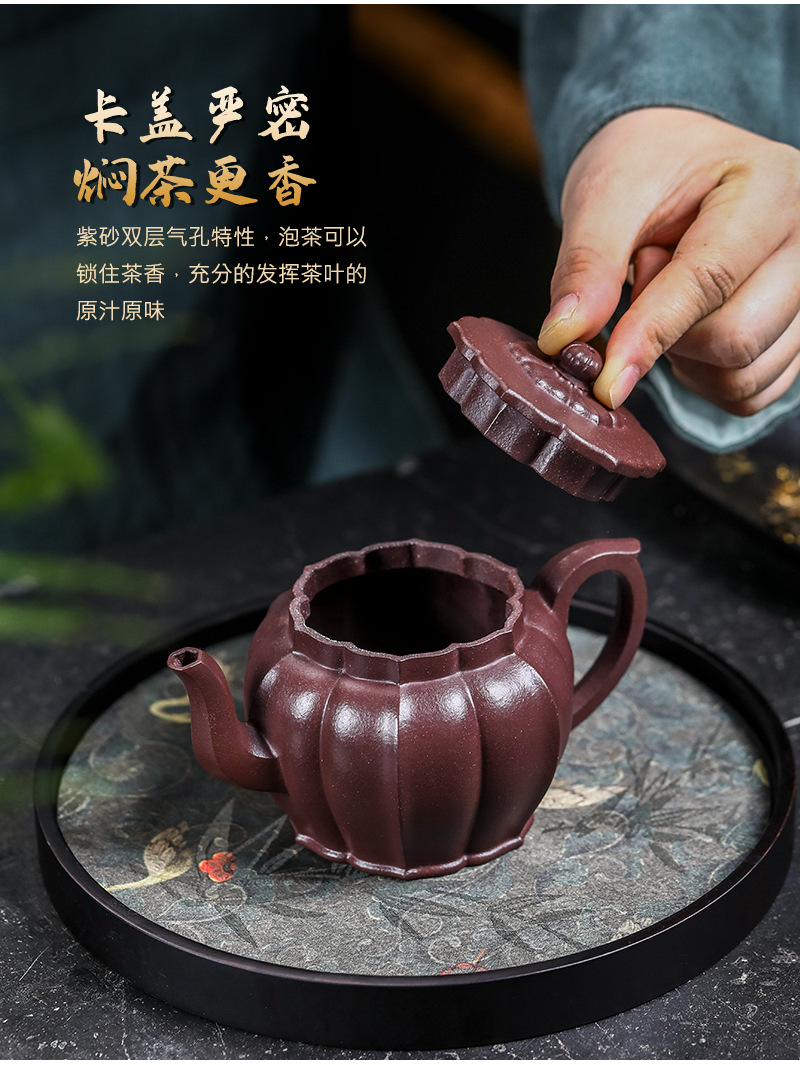 商品名称:宜兴原矿无添加手工紫砂壶黄龙山紫泥筋纹宫灯家用茶具茶壶泡茶壶