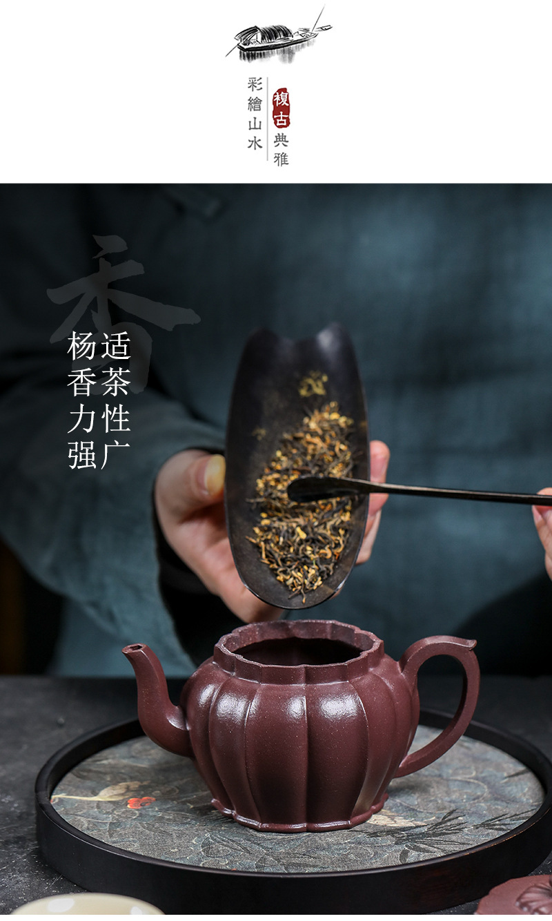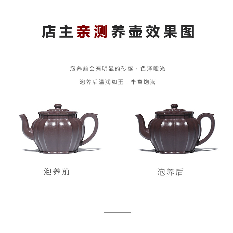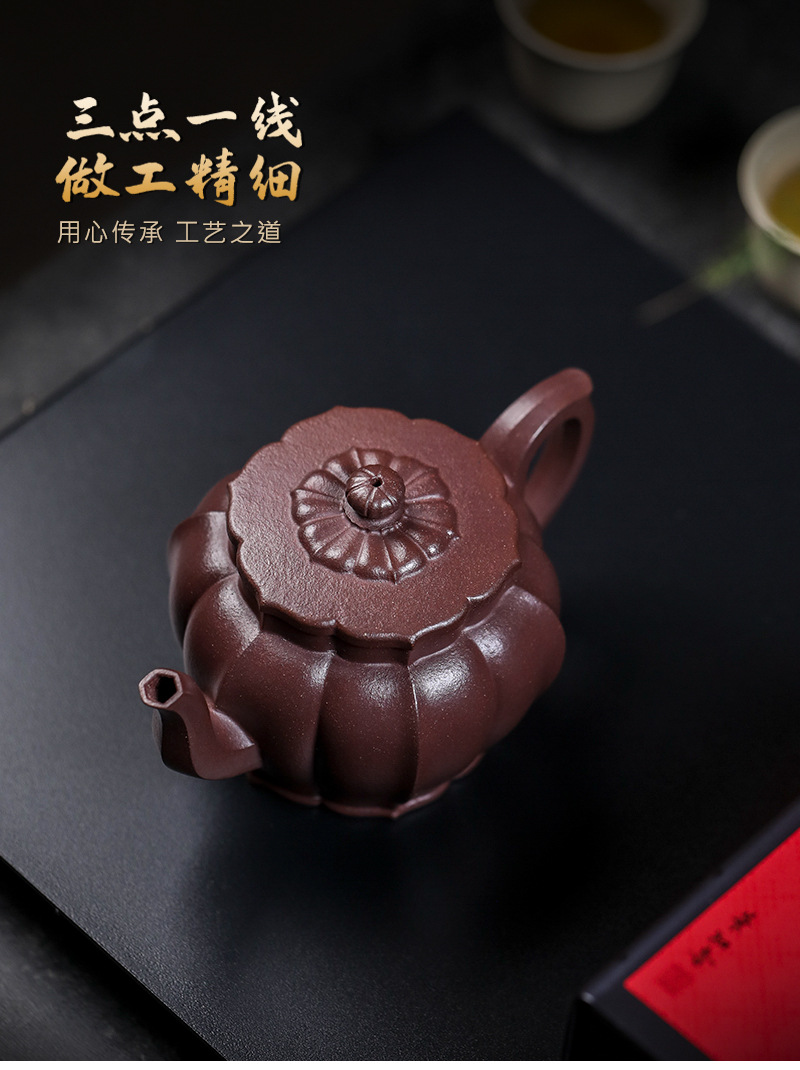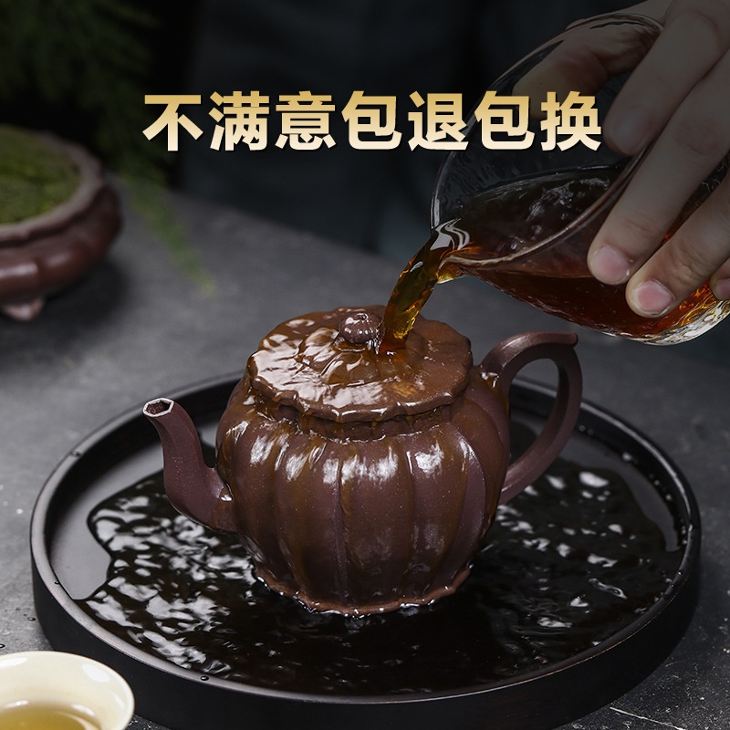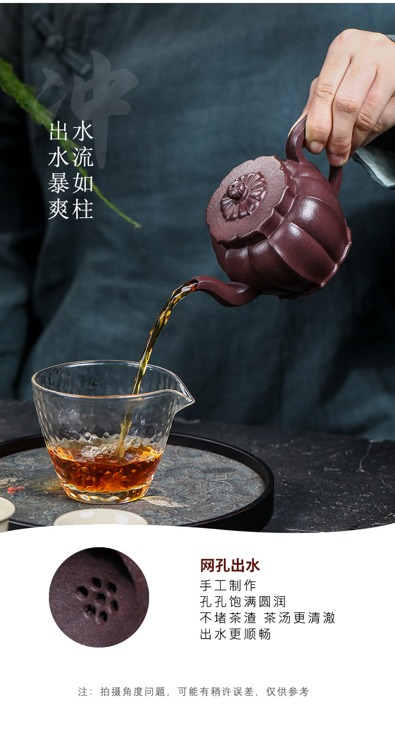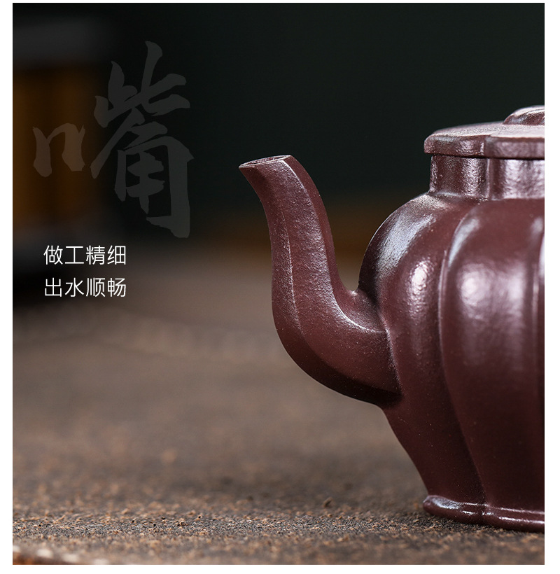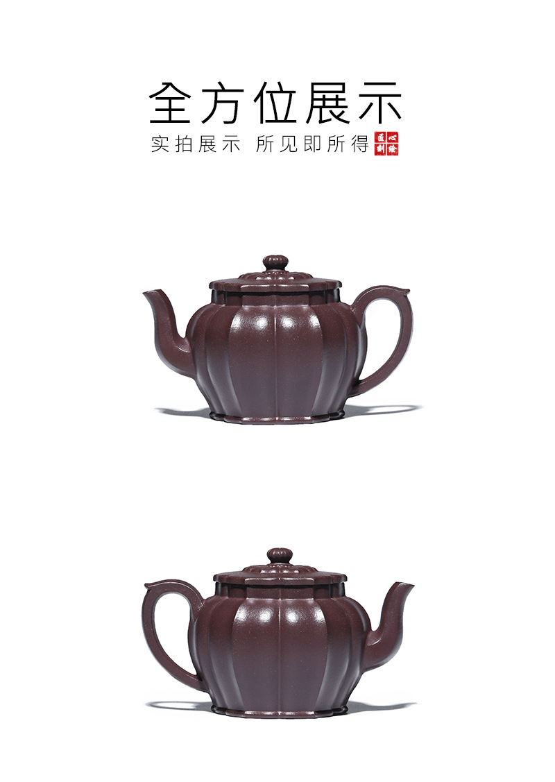 商品名称:宜兴原矿无添加手工紫砂壶黄龙山紫泥筋纹宫灯家用茶具茶壶泡茶壶