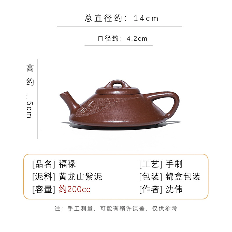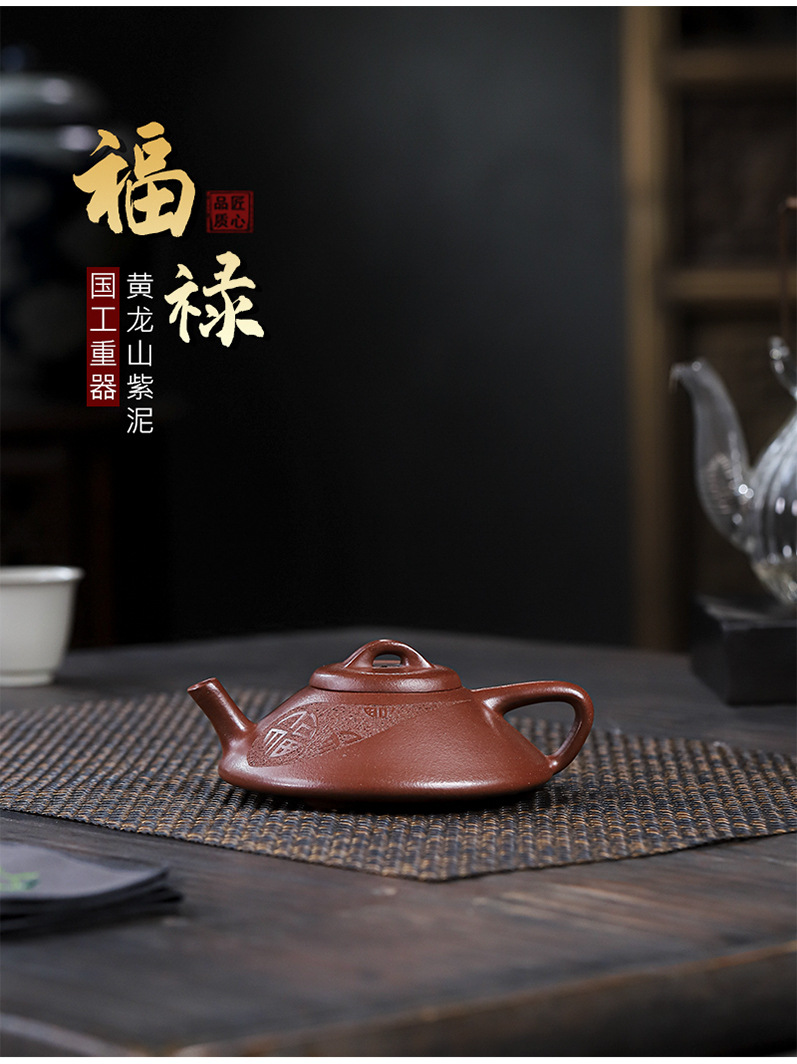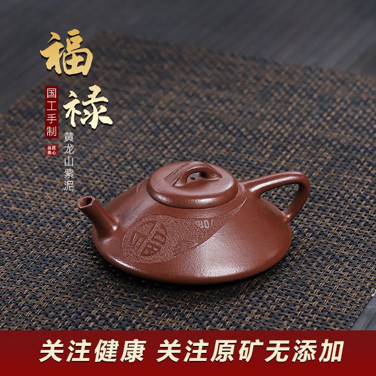 商品名称:宜兴原矿手工紫砂壶黄龙山紫泥福禄证书齐全家用茶具茶壶