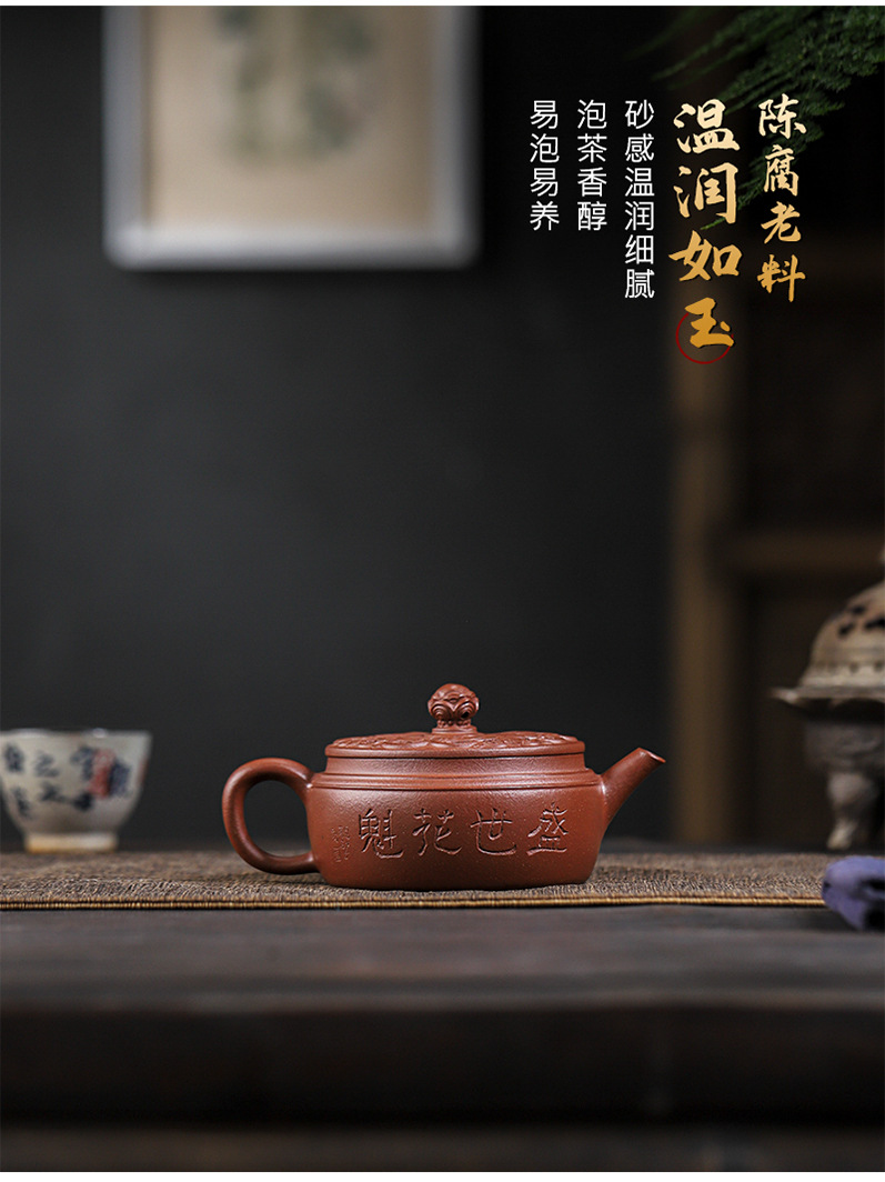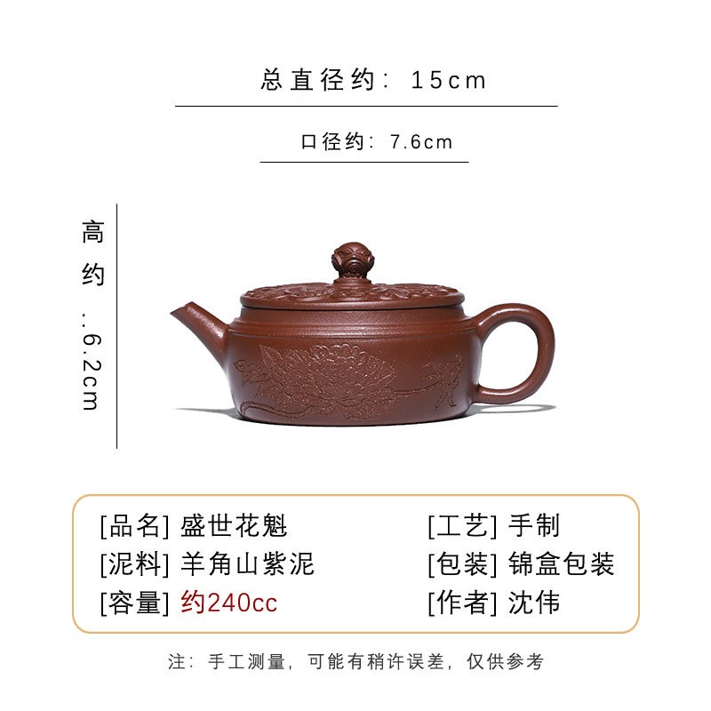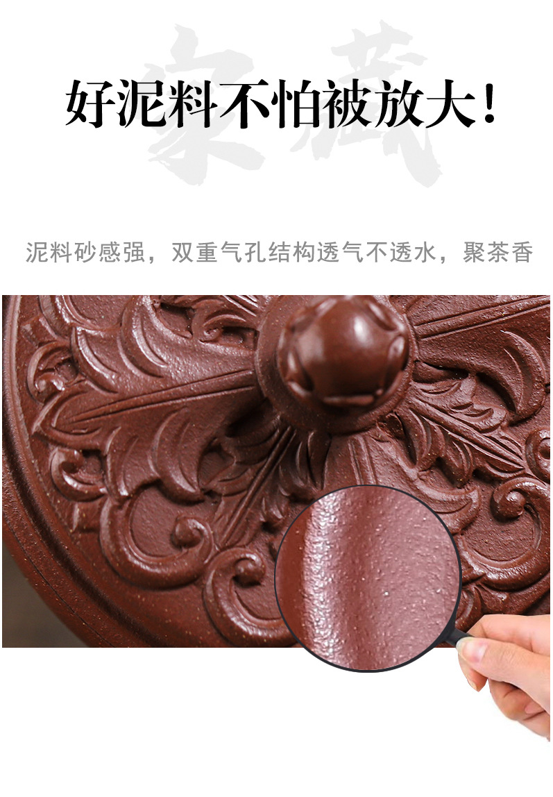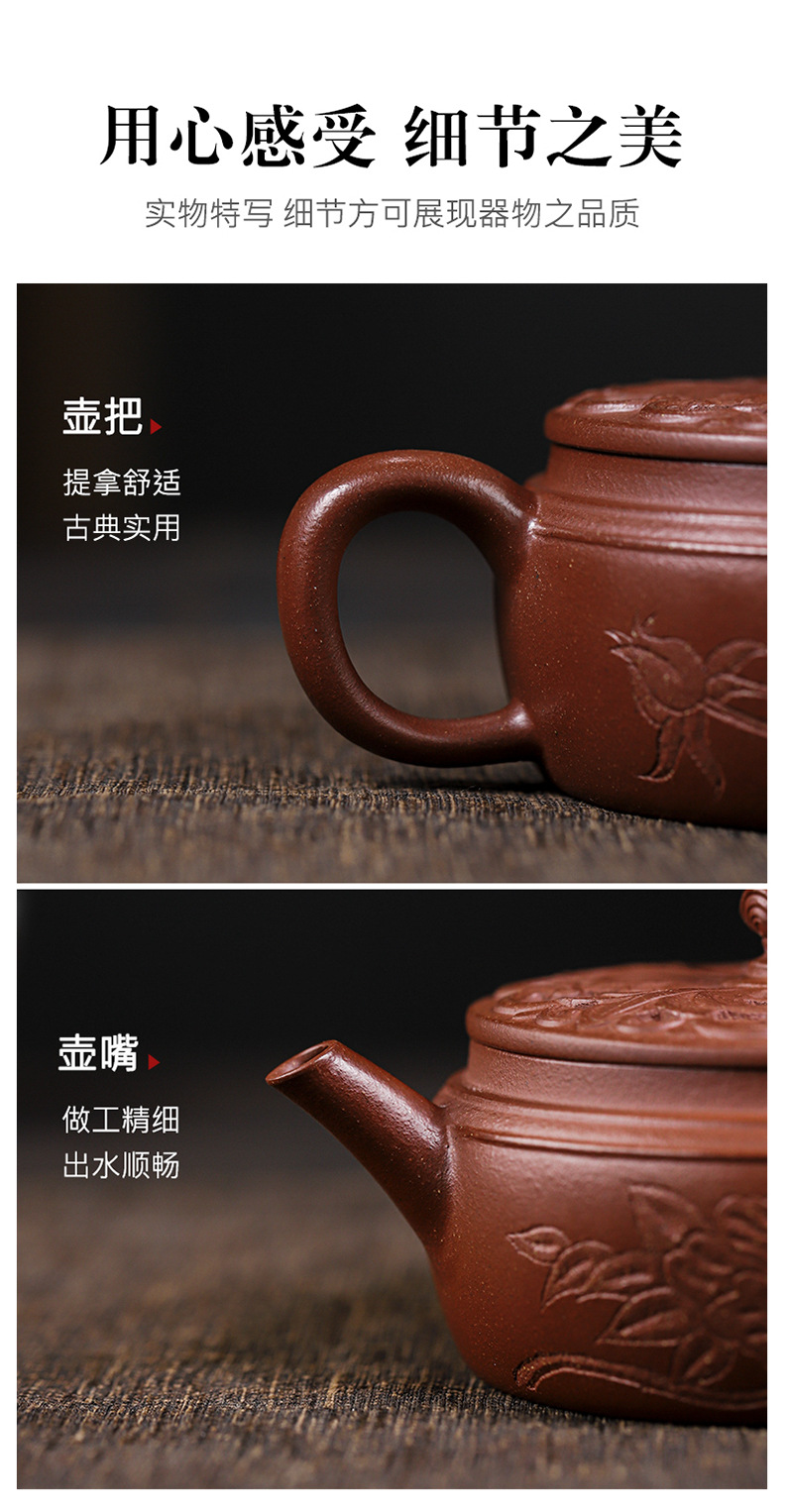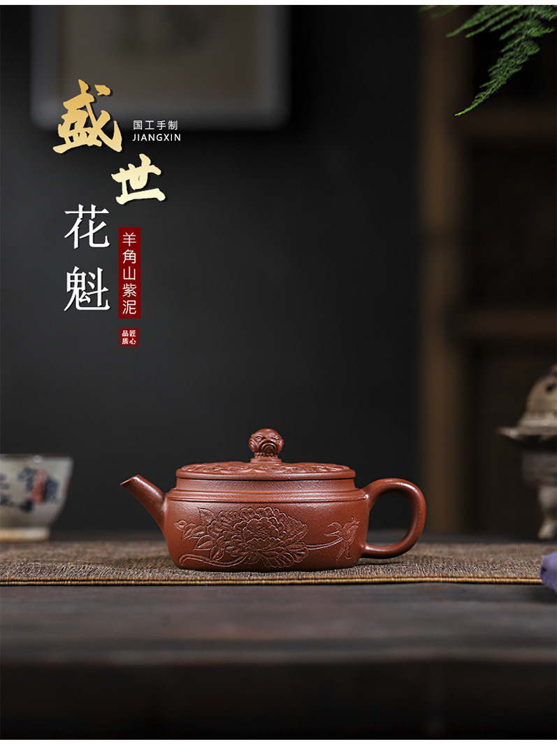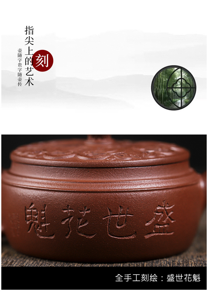 商品名称:宜兴手工紫砂壶羊角山紫泥盛世花魁家用泡茶壶证书齐全