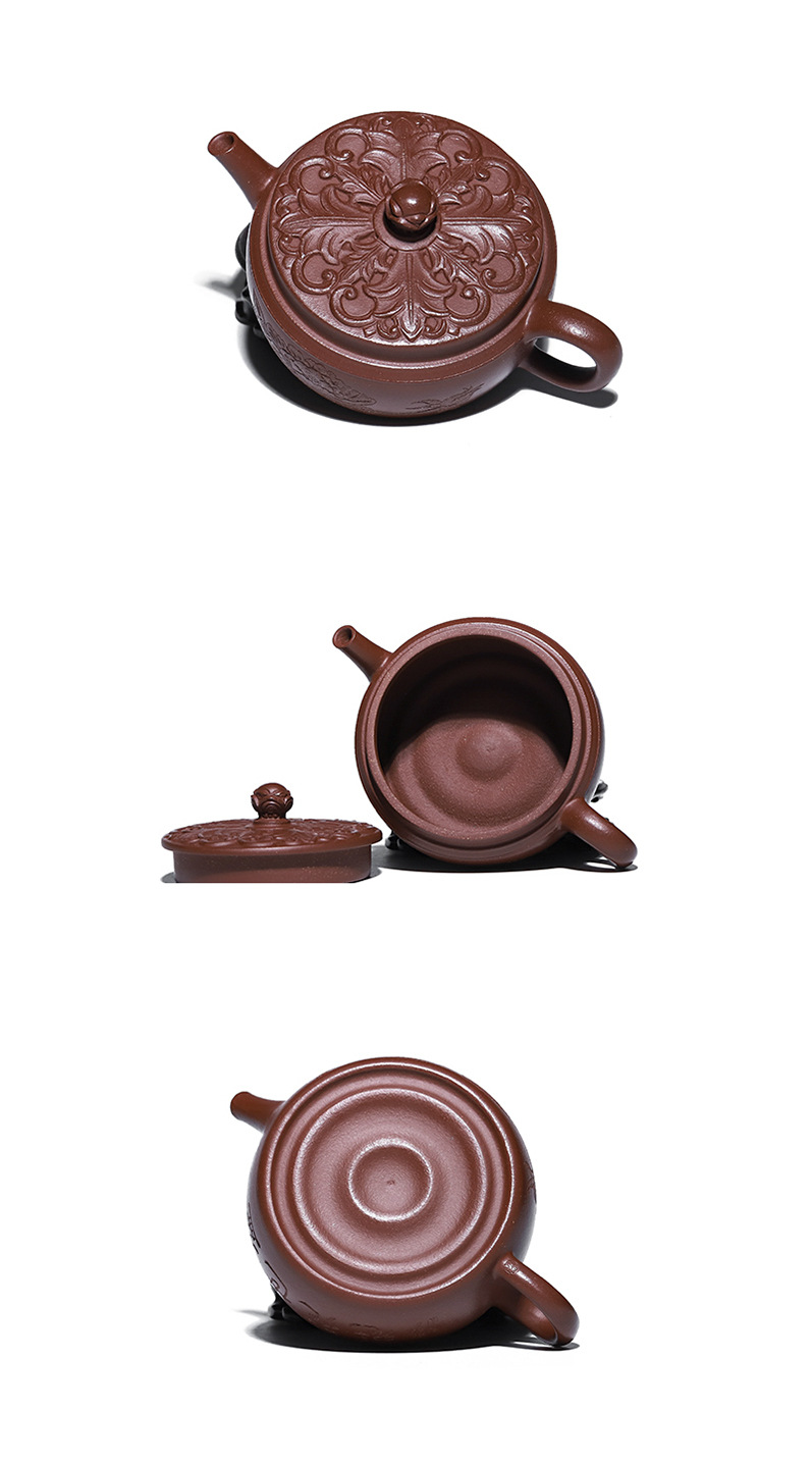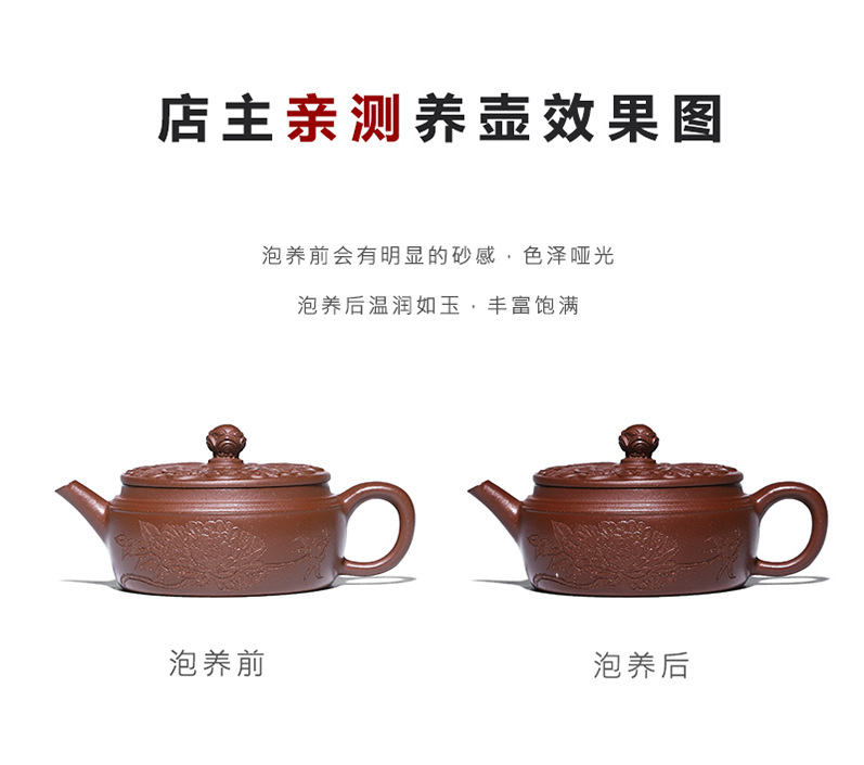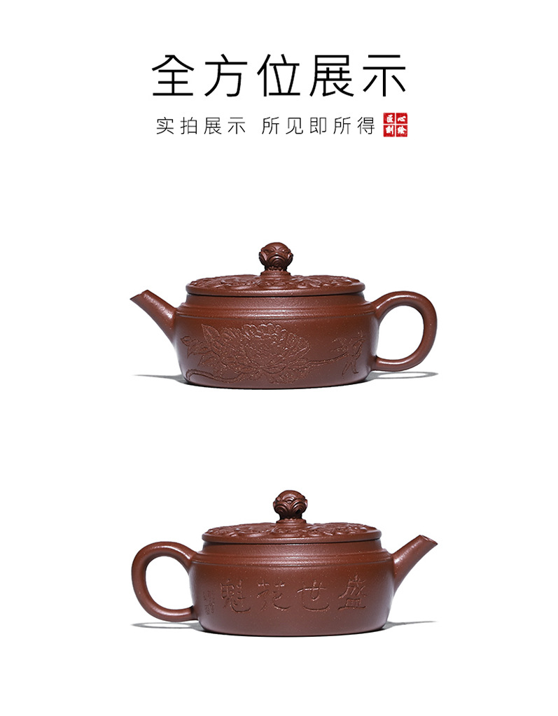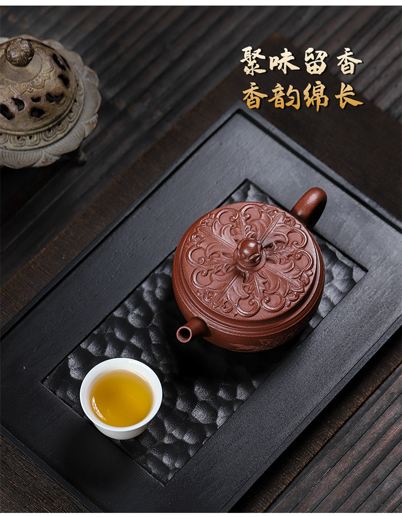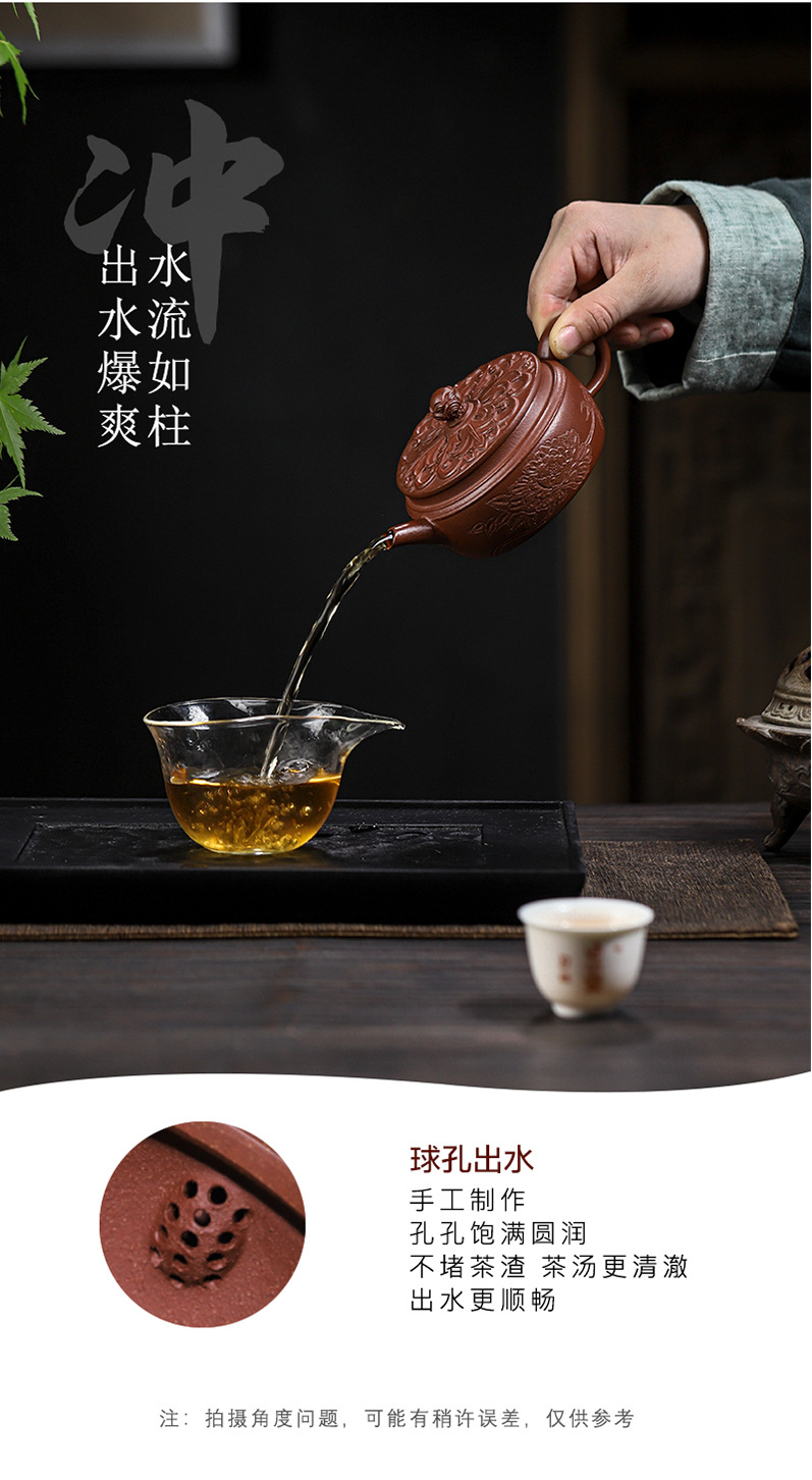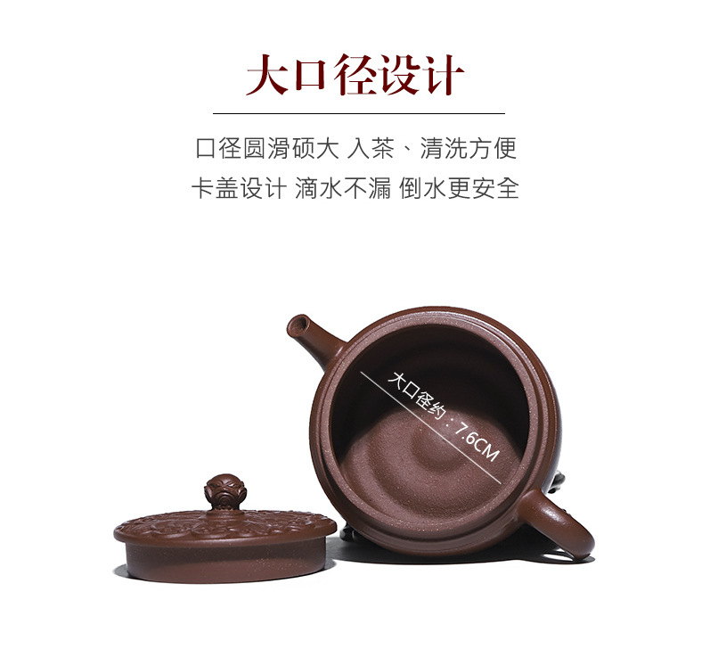 商品名称:宜兴手工紫砂壶羊角山紫泥盛世花魁家用泡茶壶证书齐全