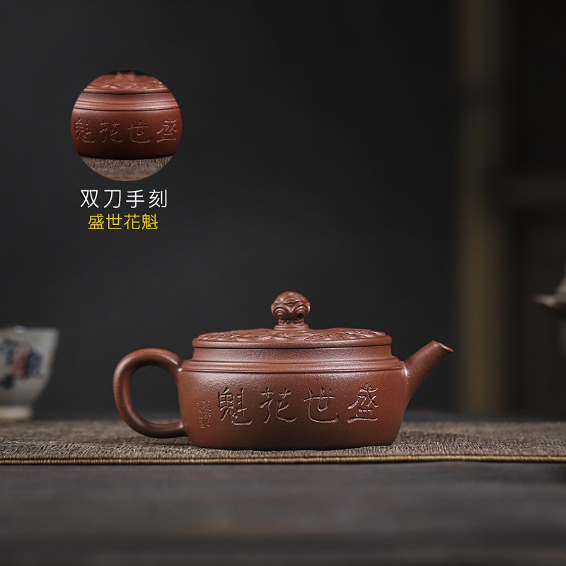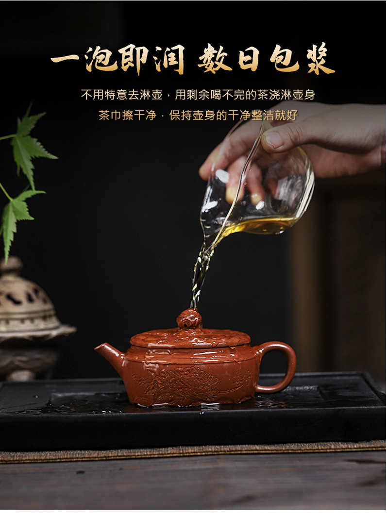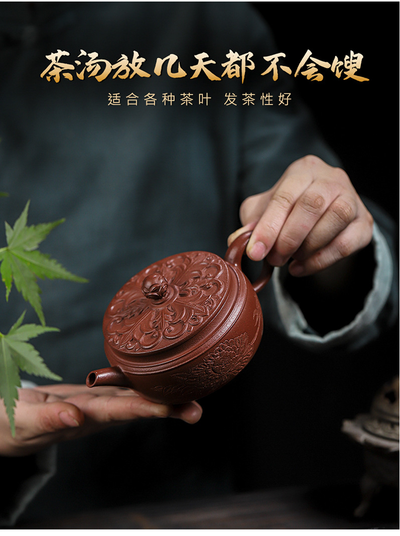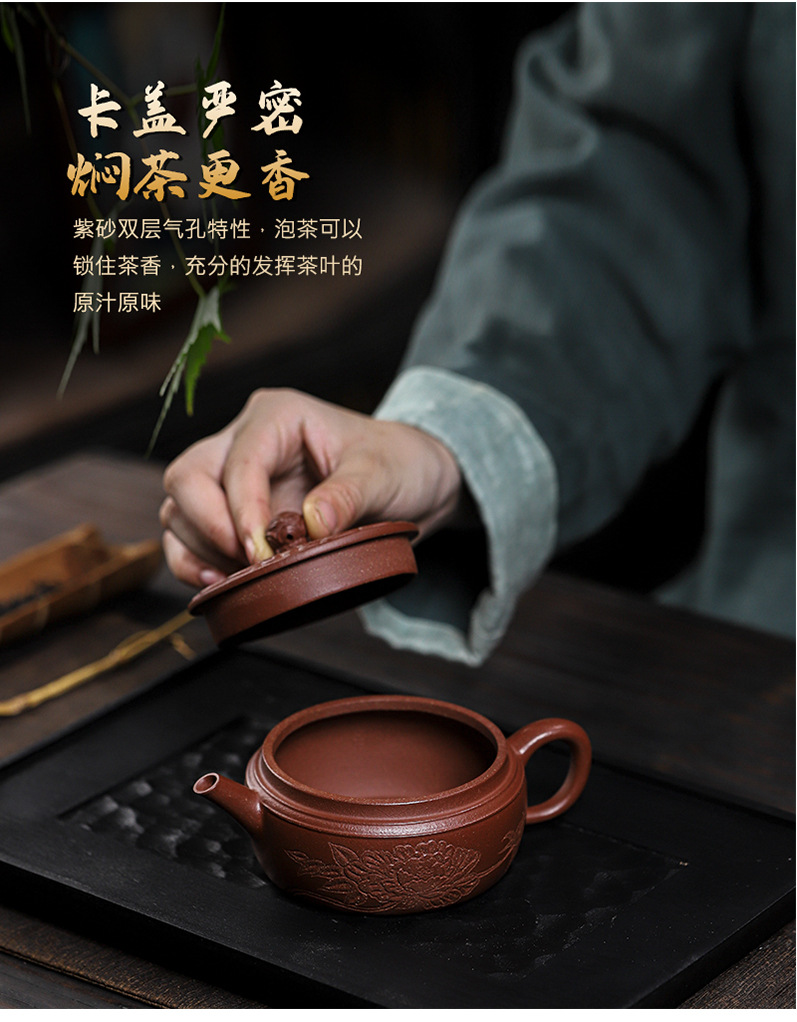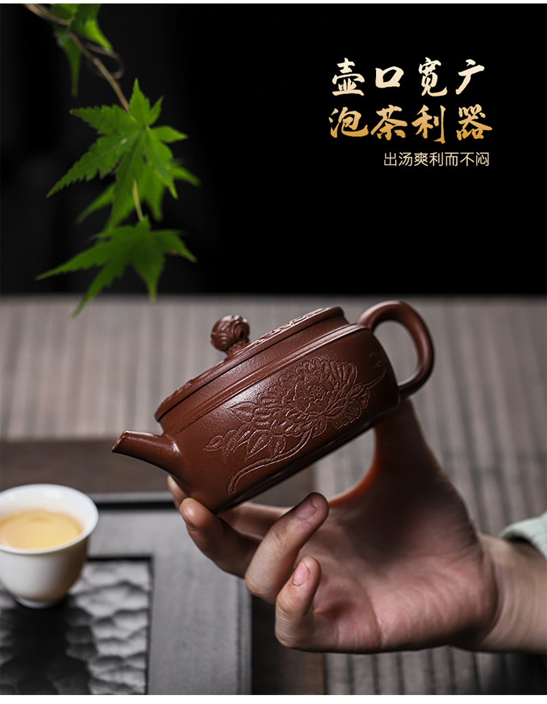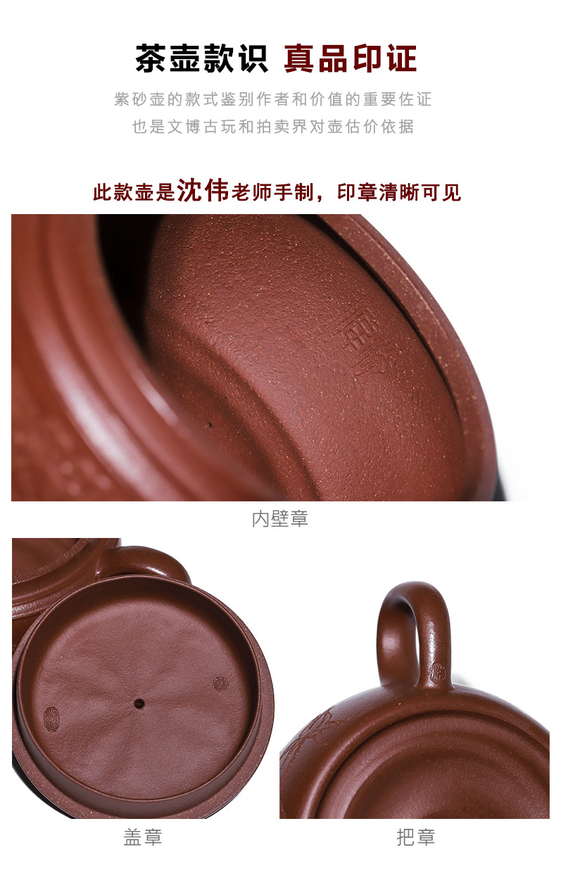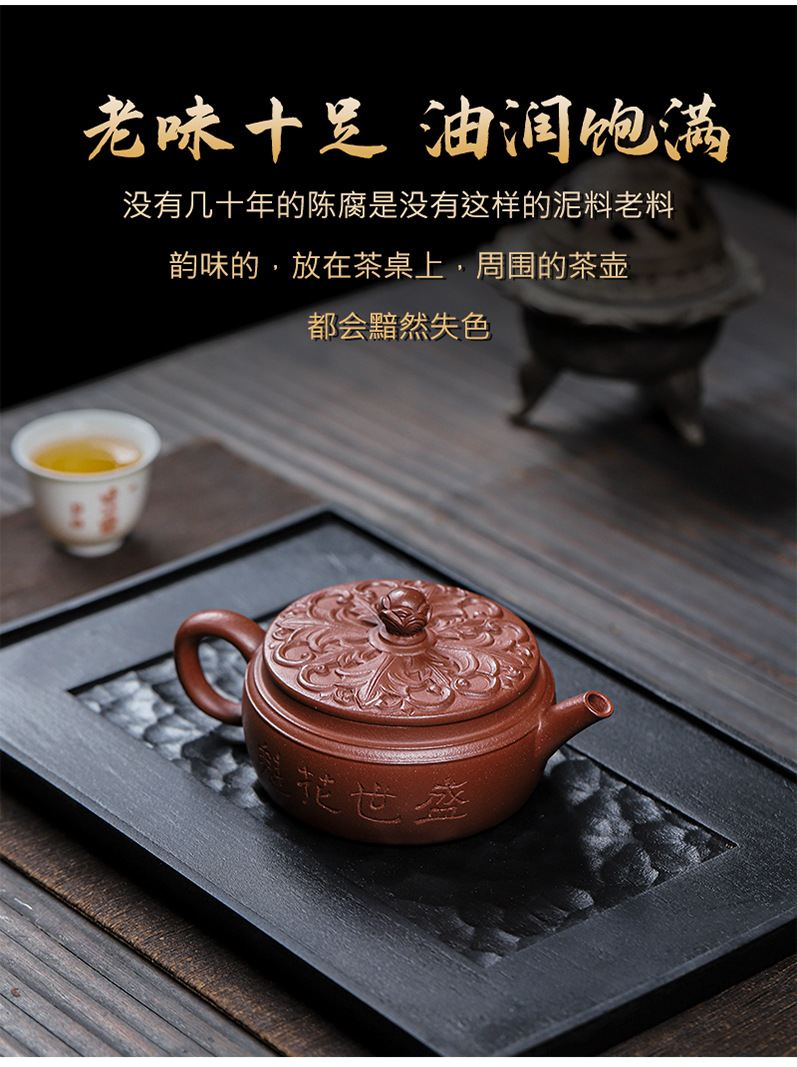 商品名称:宜兴手工紫砂壶羊角山紫泥盛世花魁家用泡茶壶证书齐全