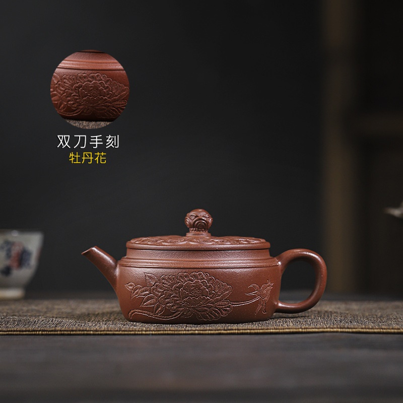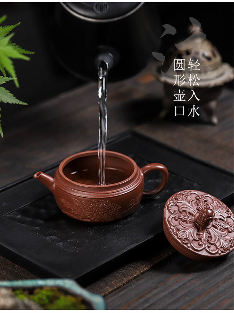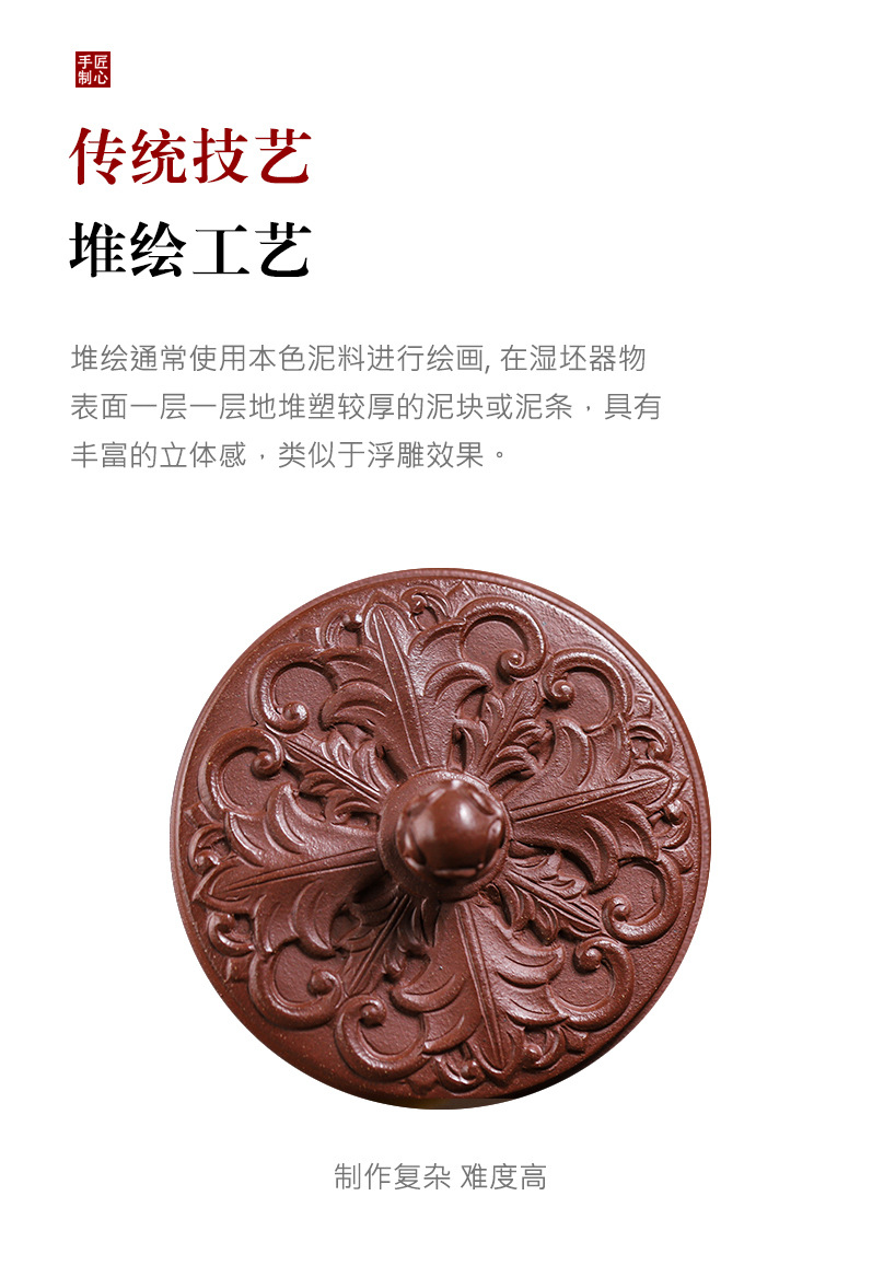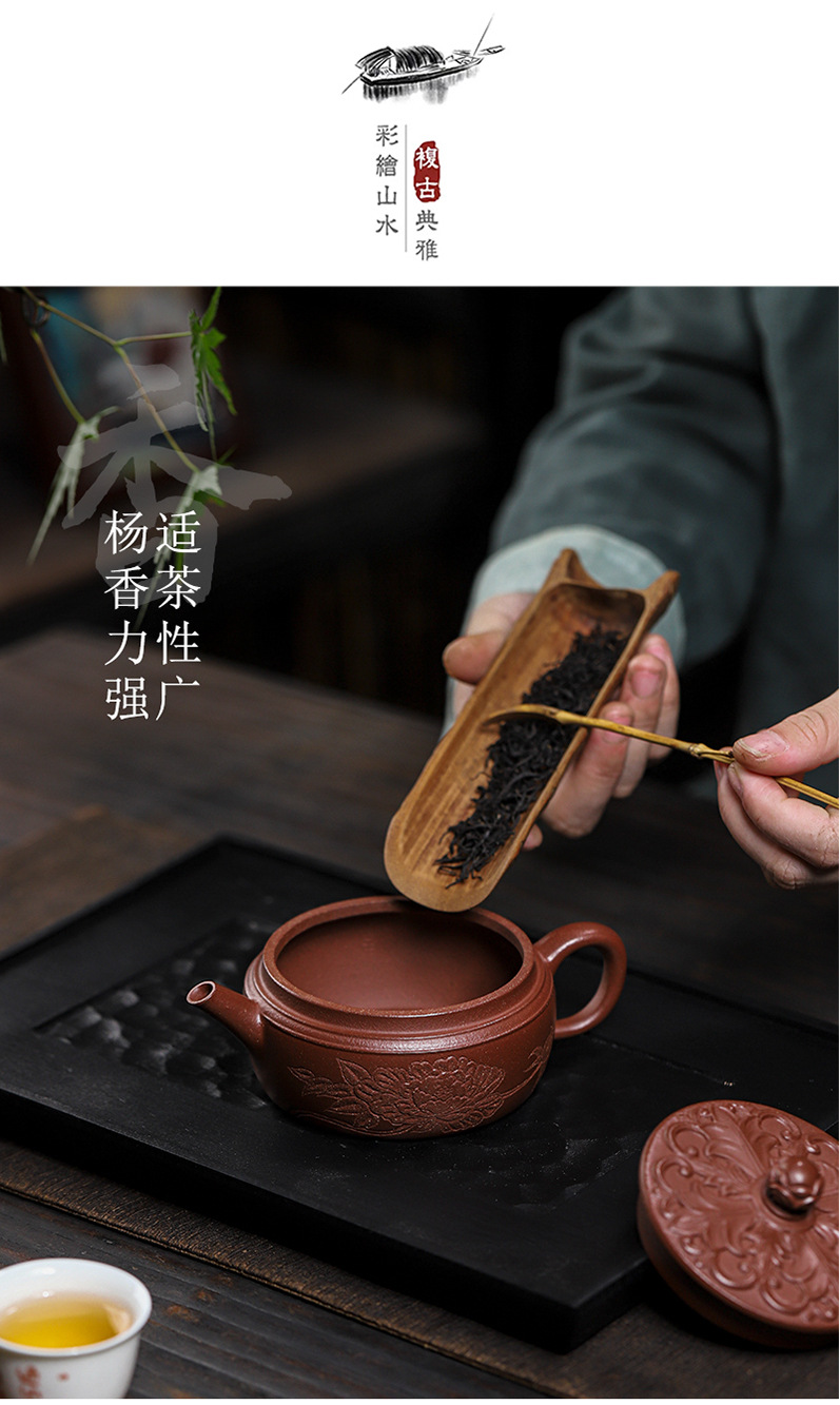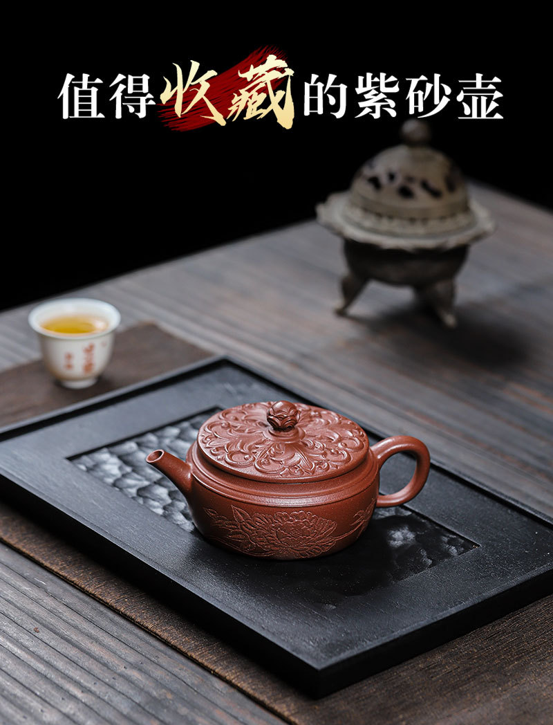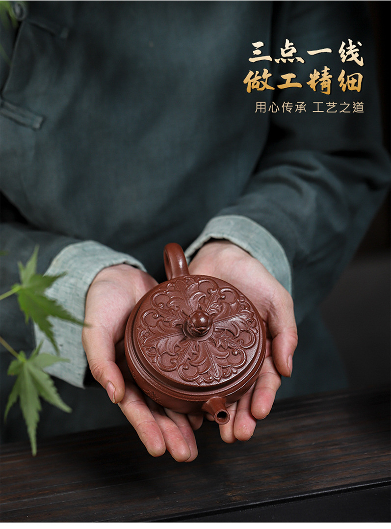 商品名称:宜兴手工紫砂壶羊角山紫泥盛世花魁家用泡茶壶证书齐全