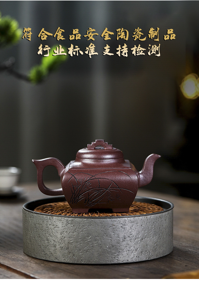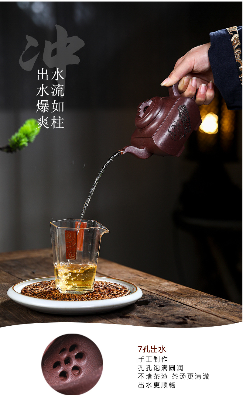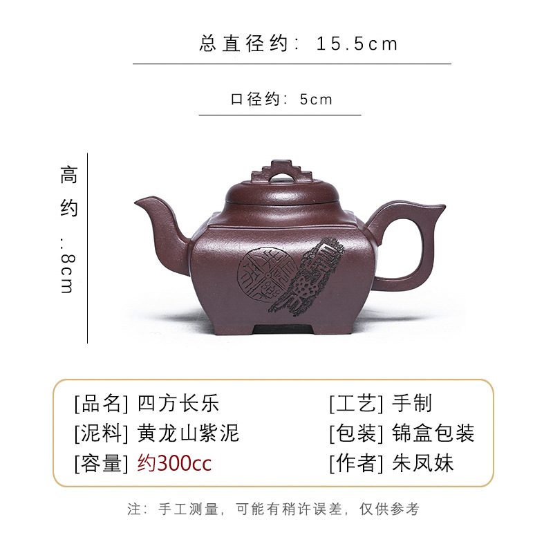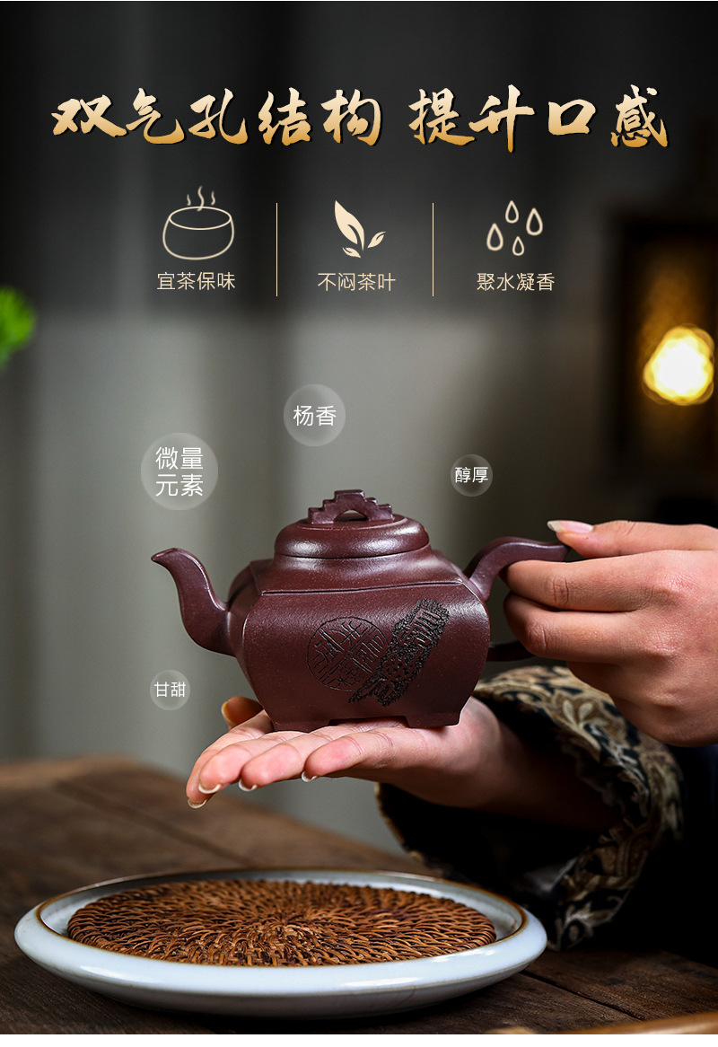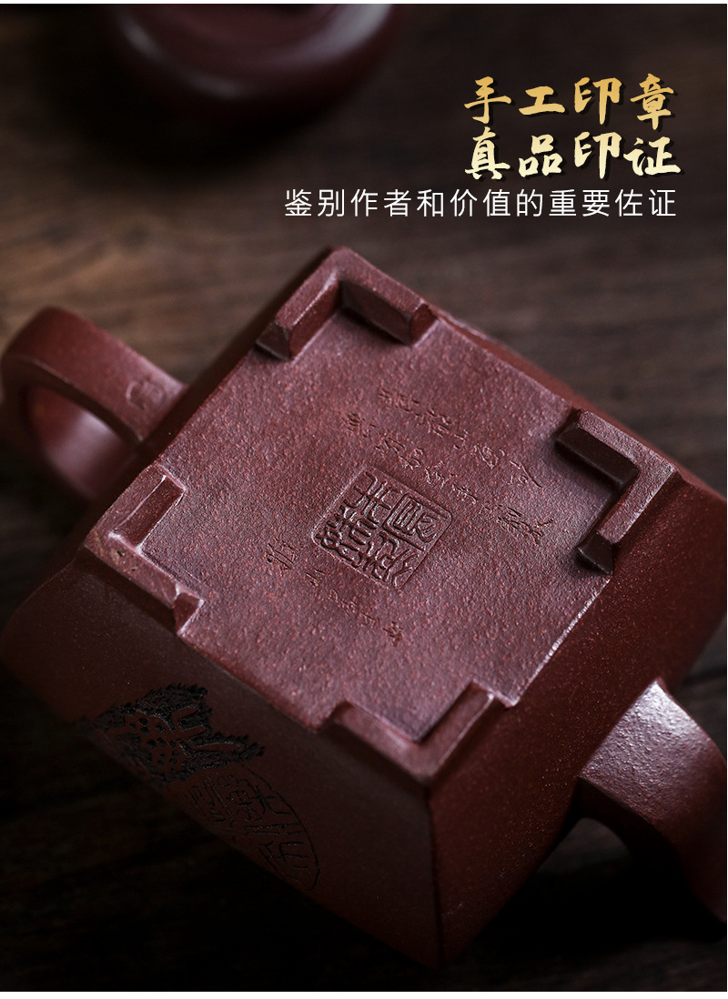 商品名称:宜兴手工紫砂壶证书全 原矿紫泥 四方长乐家用茶具茶壶出水暴爽