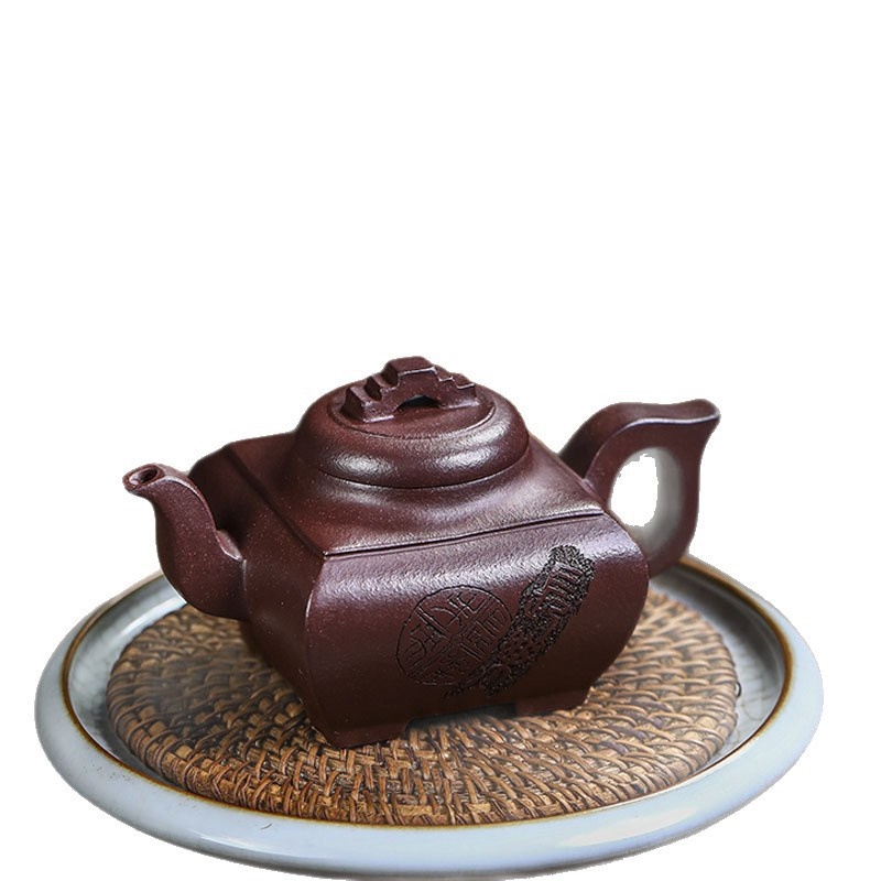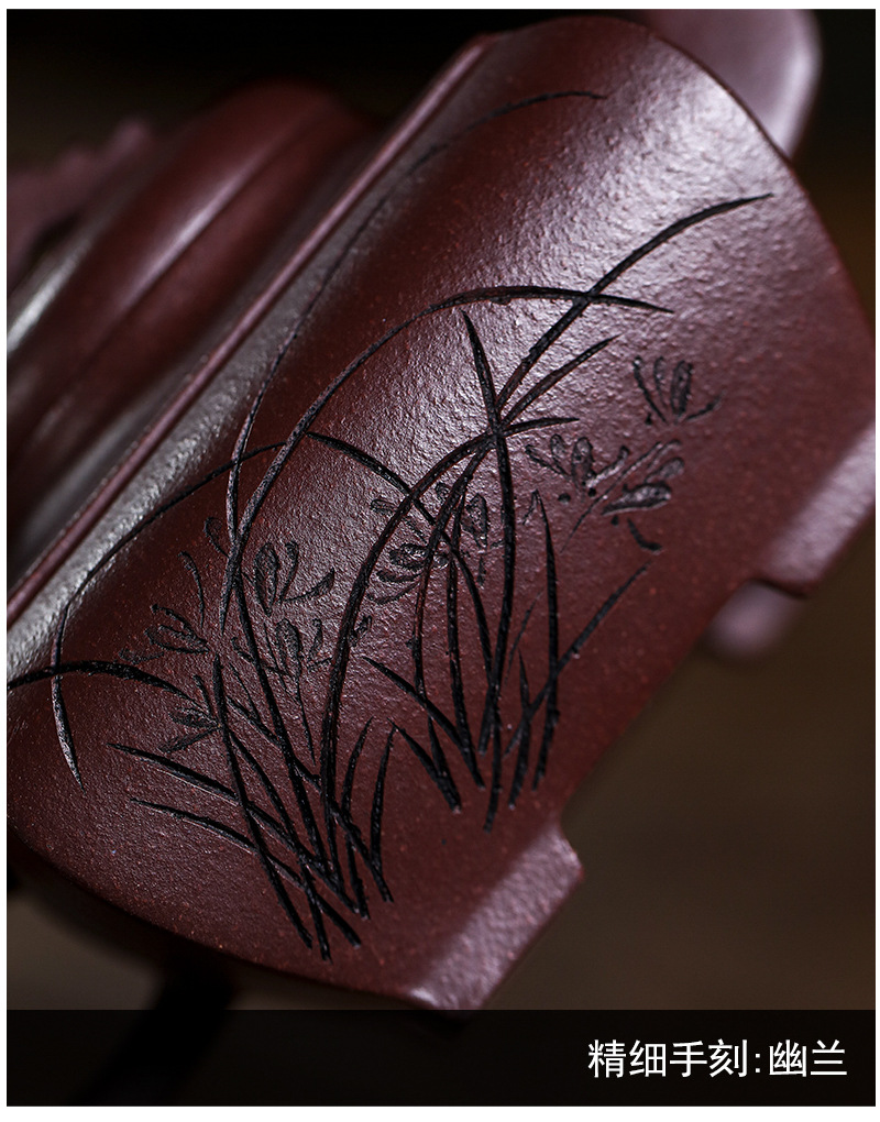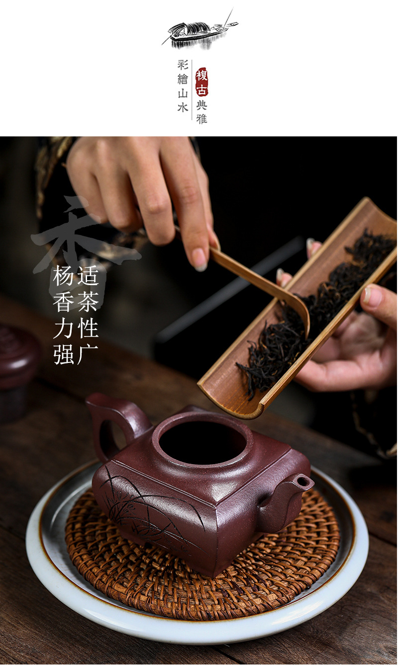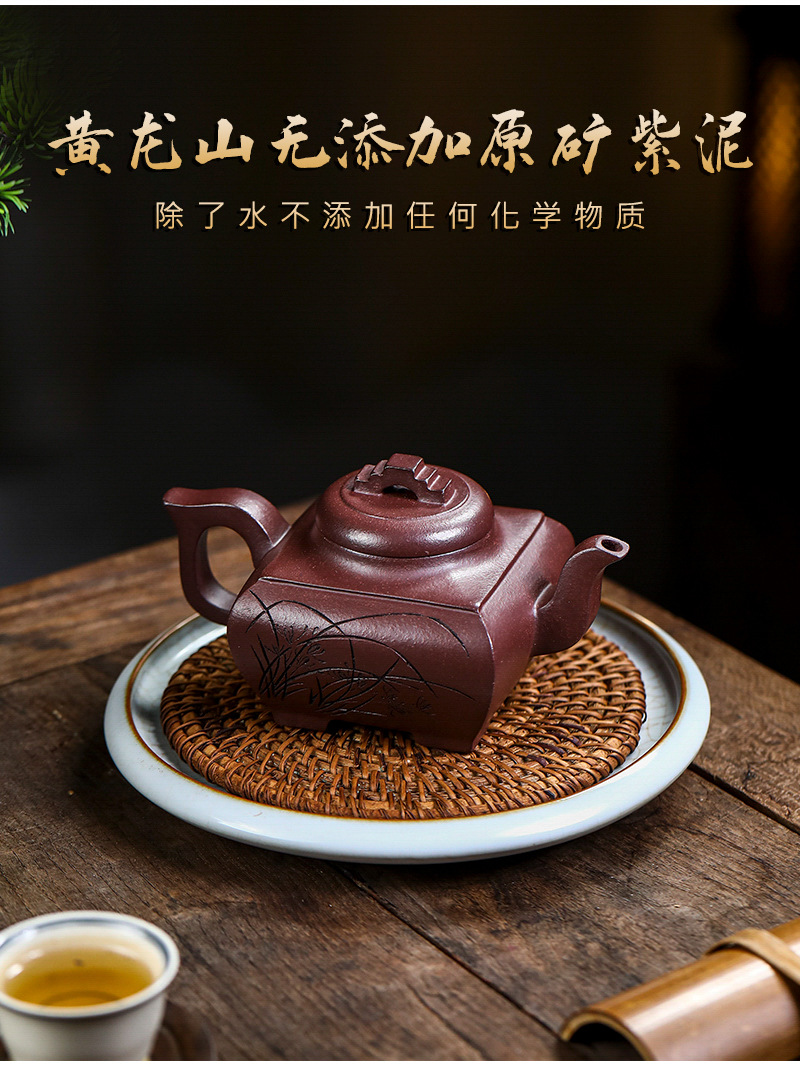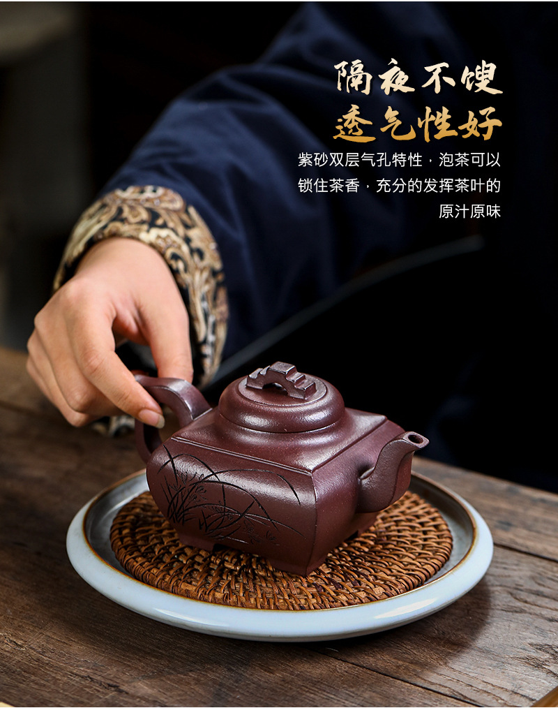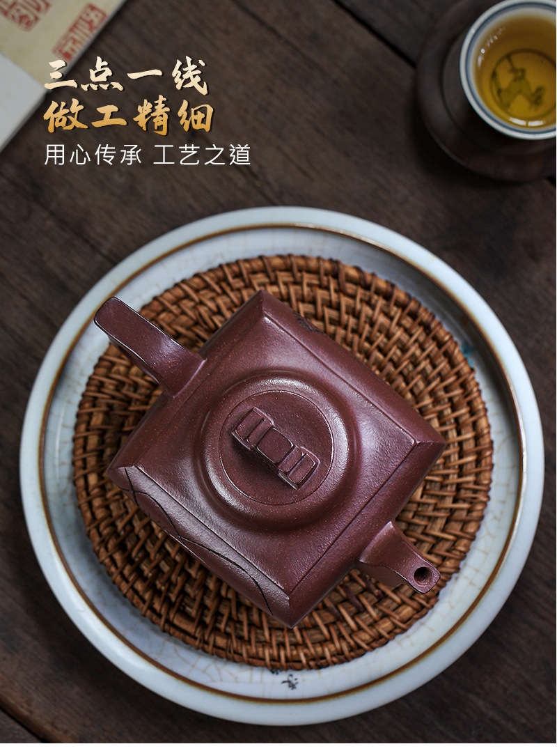 商品名称:宜兴手工紫砂壶证书全 原矿紫泥 四方长乐家用茶具茶壶出水暴爽