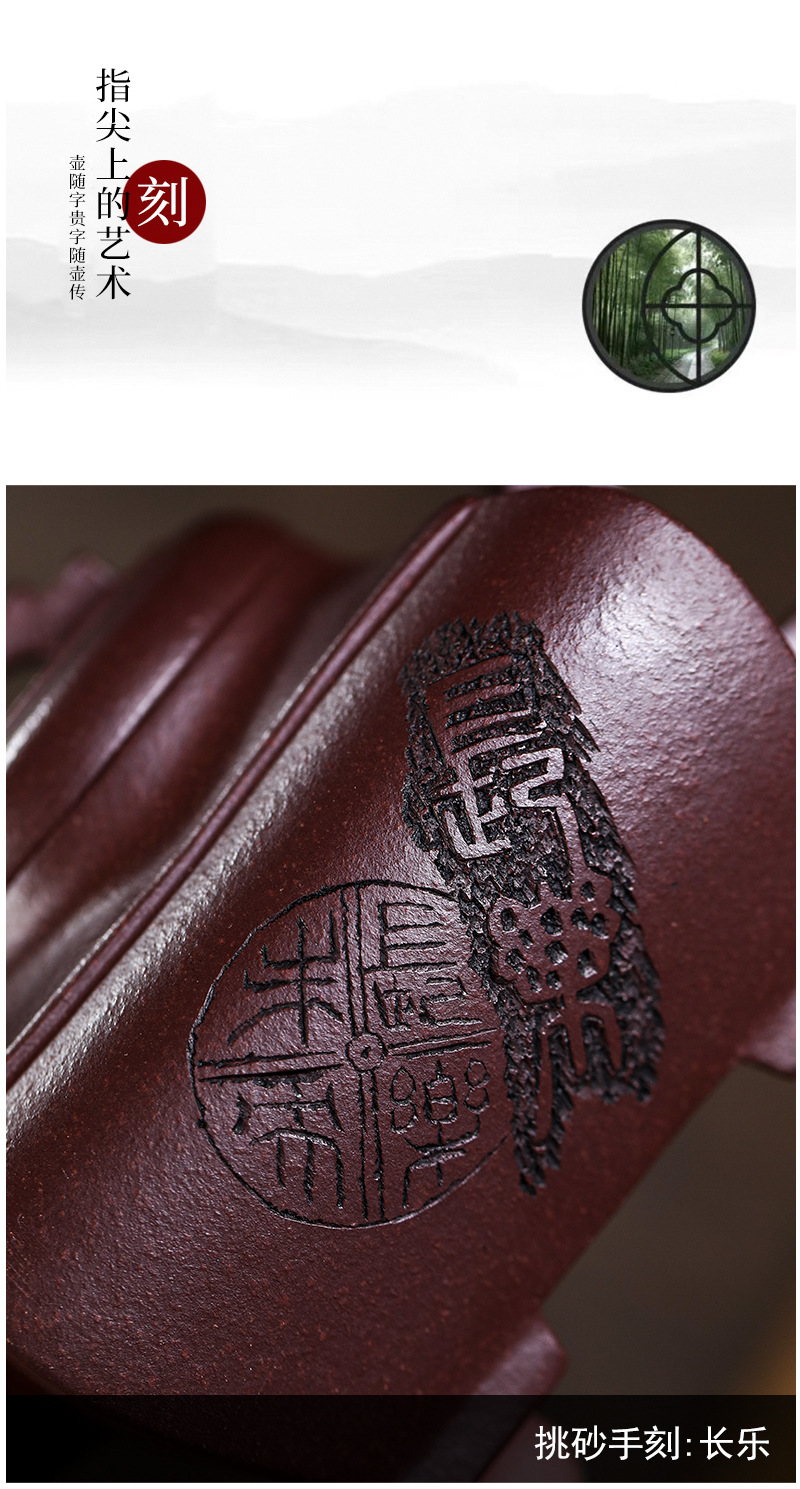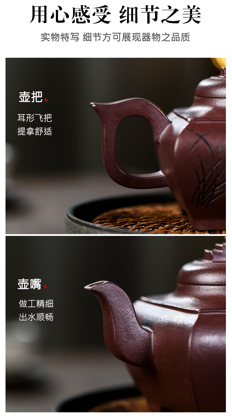 宜兴原矿无添加手工紫砂壶金降坡竹影家用茶具茶壶出水爆爽
