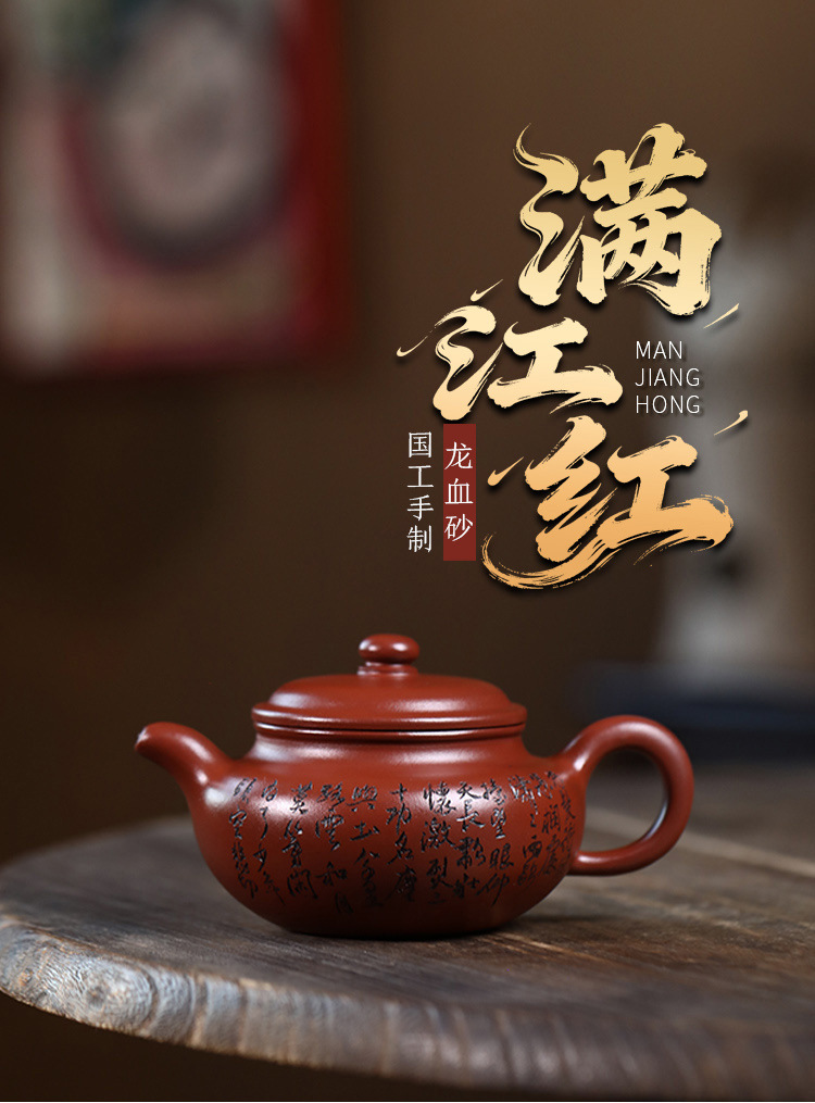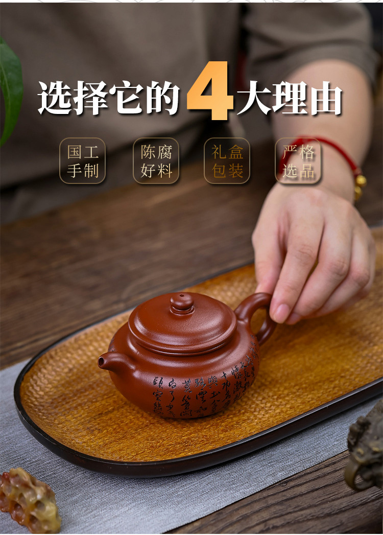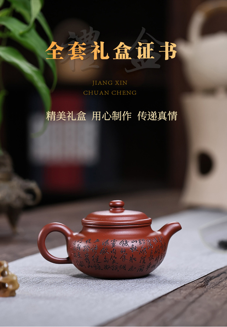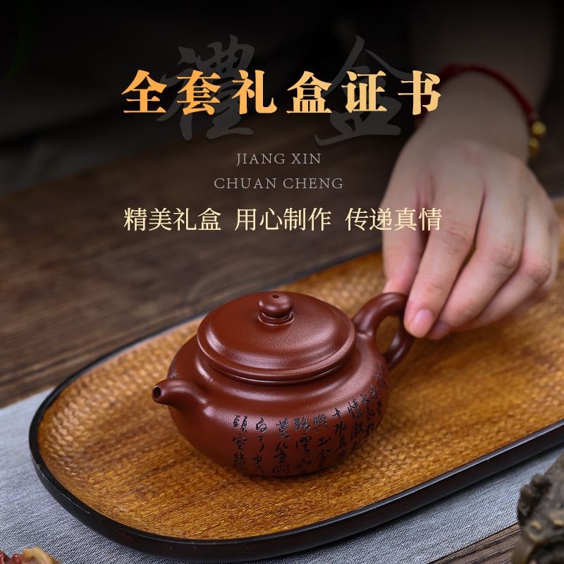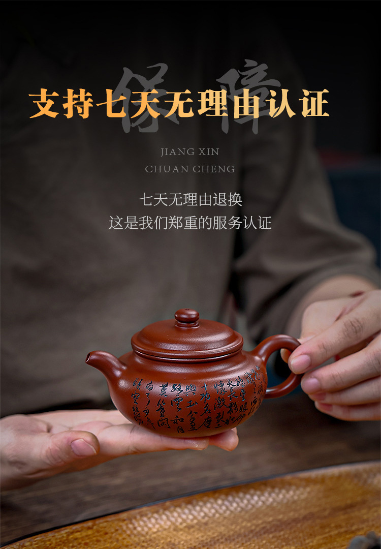商品名称:宜兴手工紫砂壶证书原矿龙血砂满江红包浆出水暴爽滴水不漏