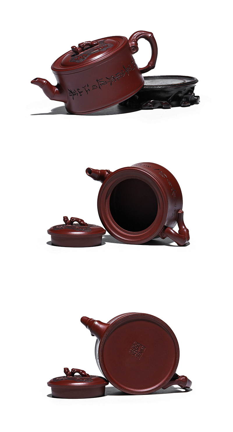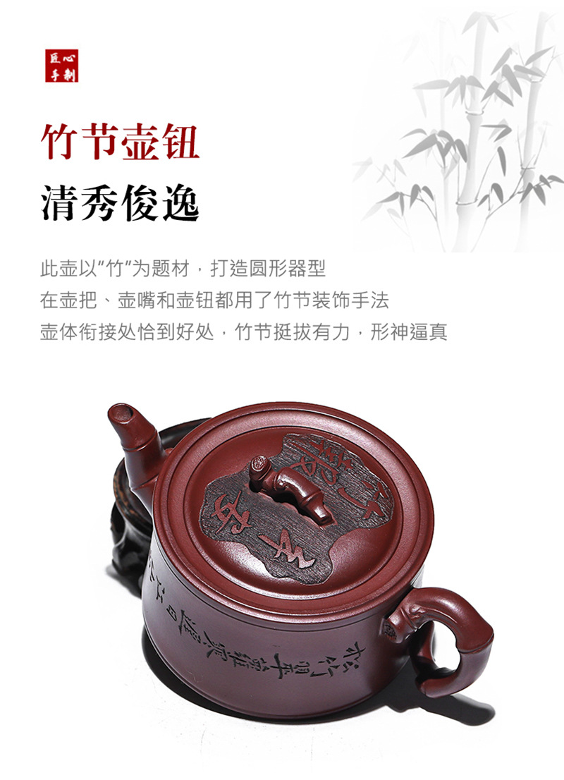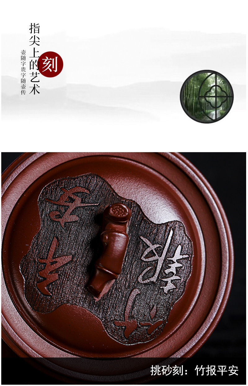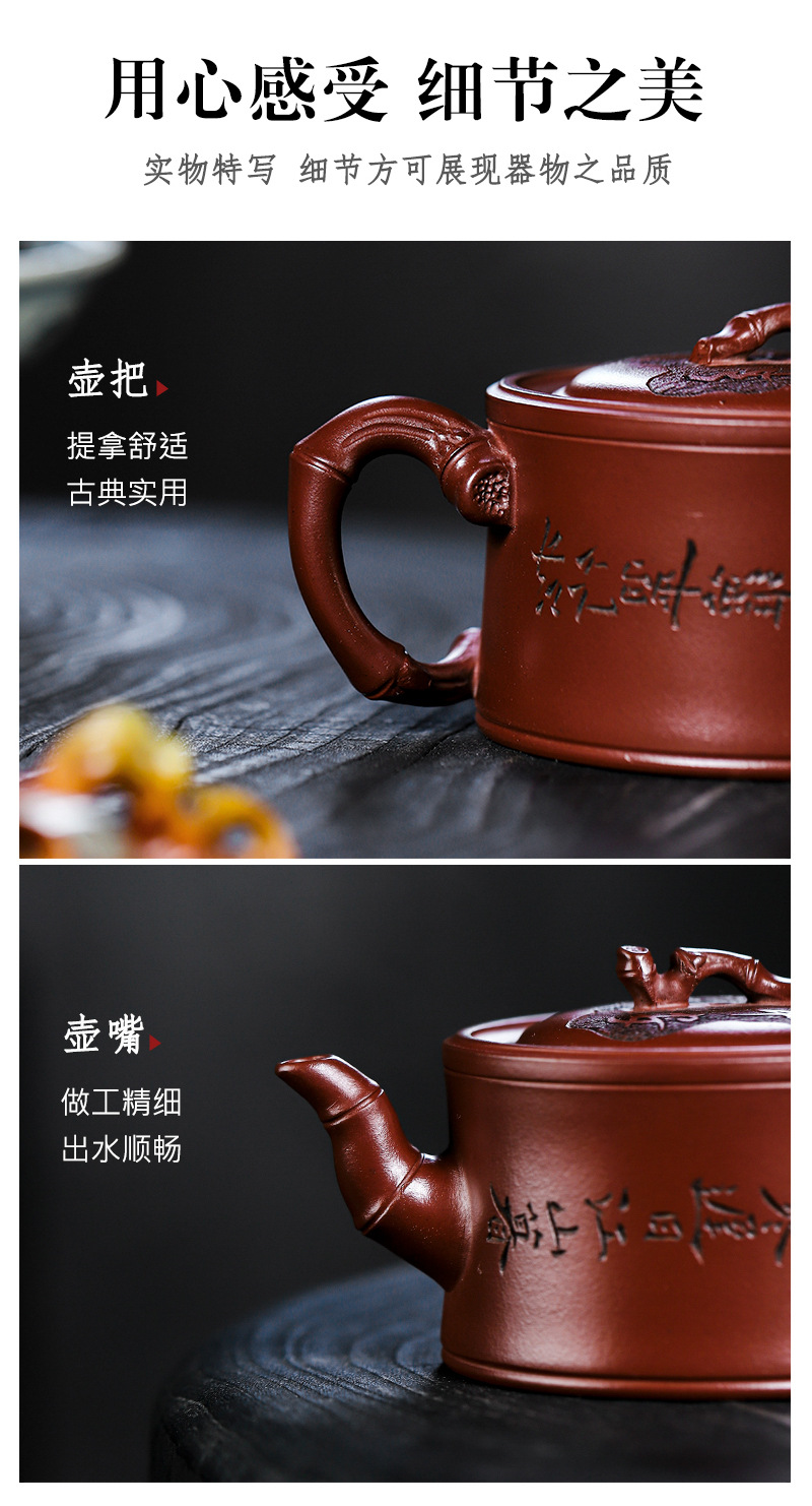 商品名称:宜兴手工紫砂壶证书全 家藏紫泥 竹报平安家用茶具茶壶出水暴爽