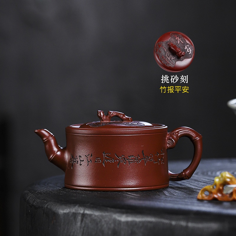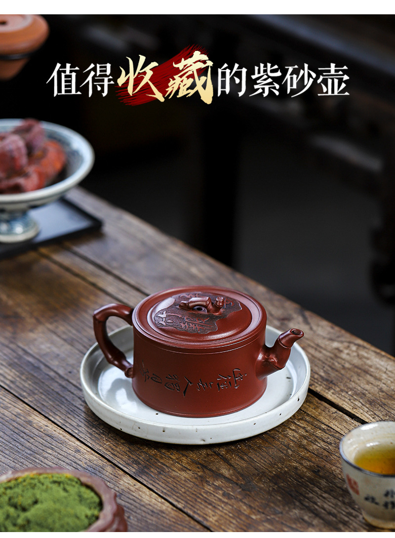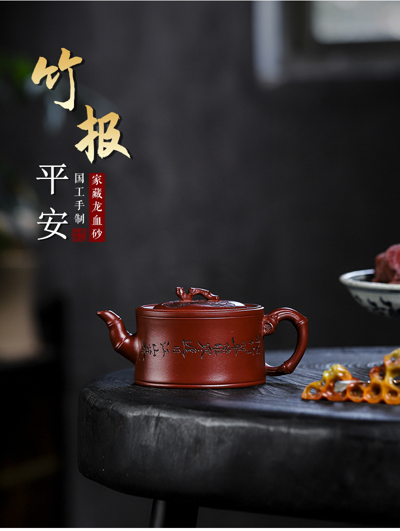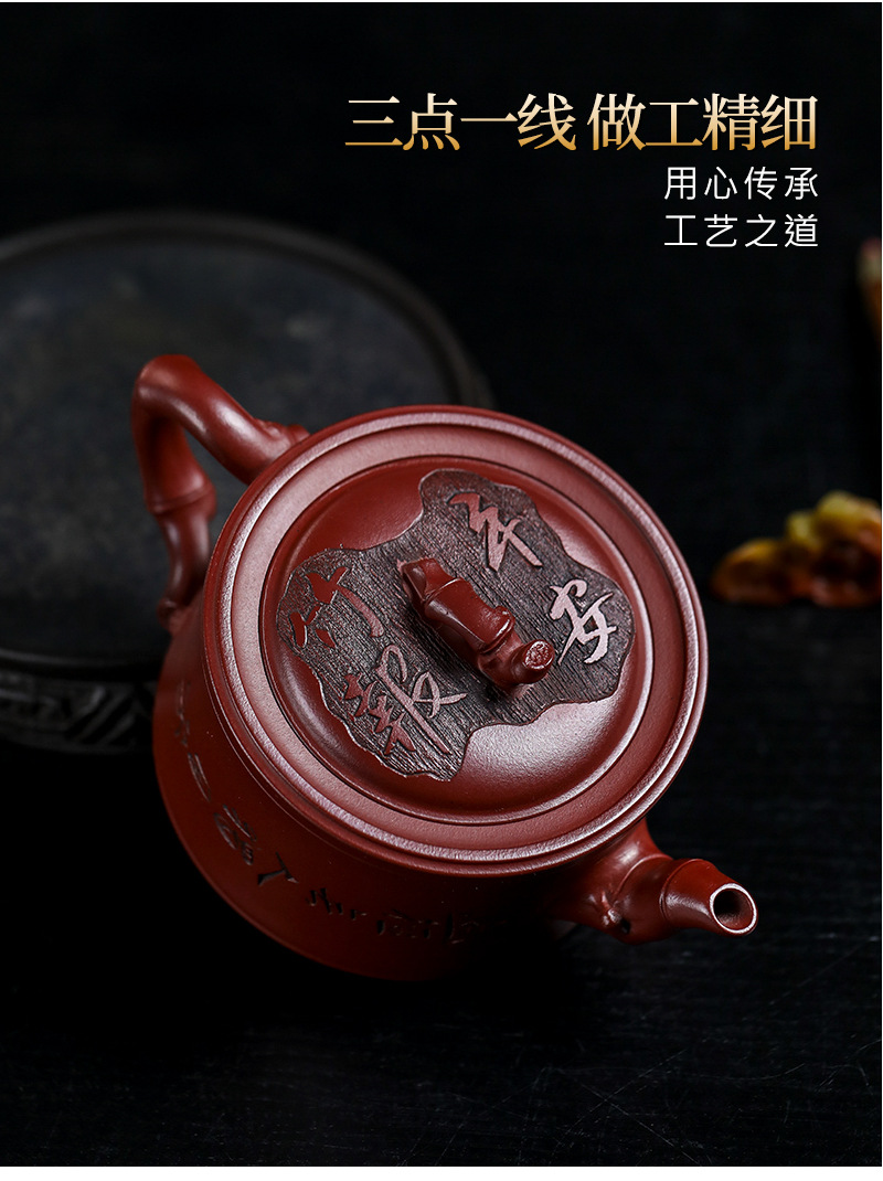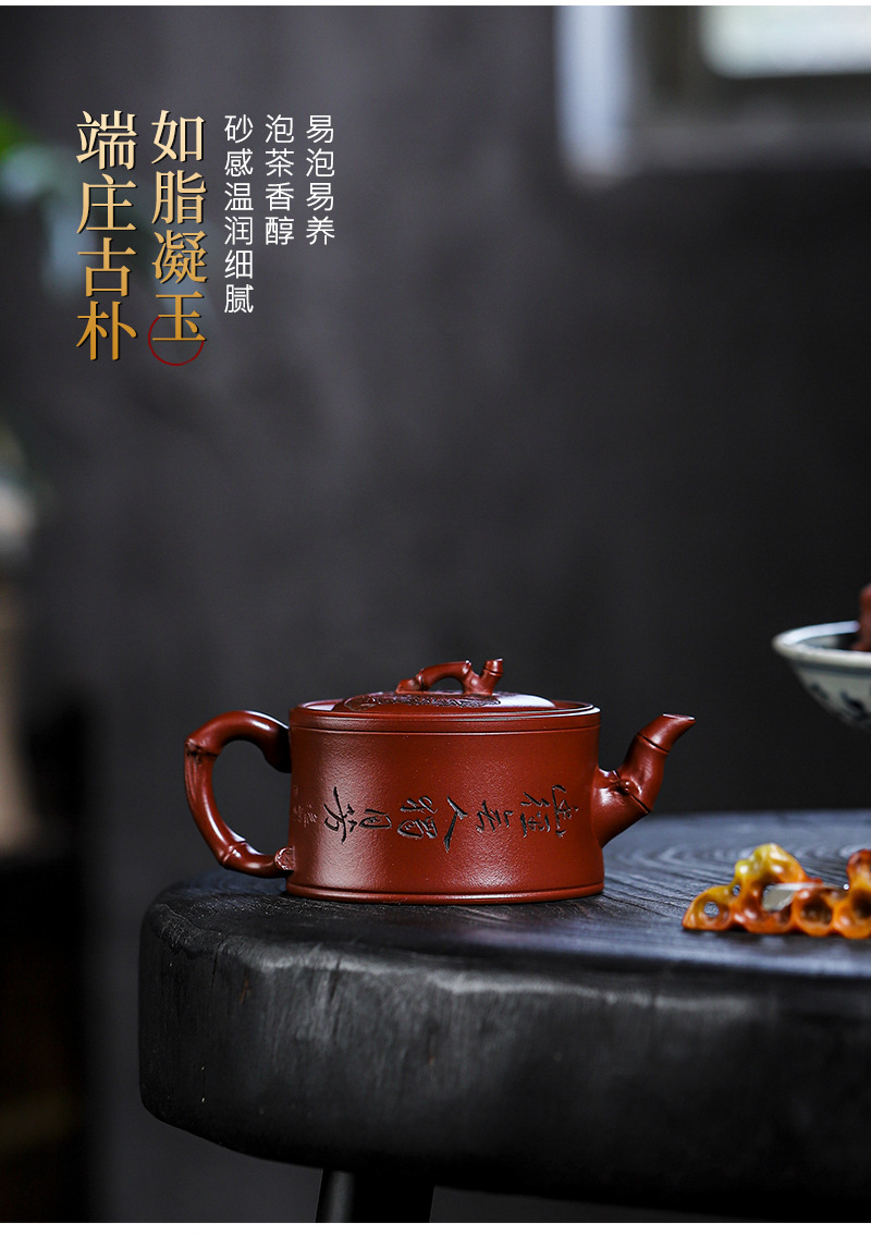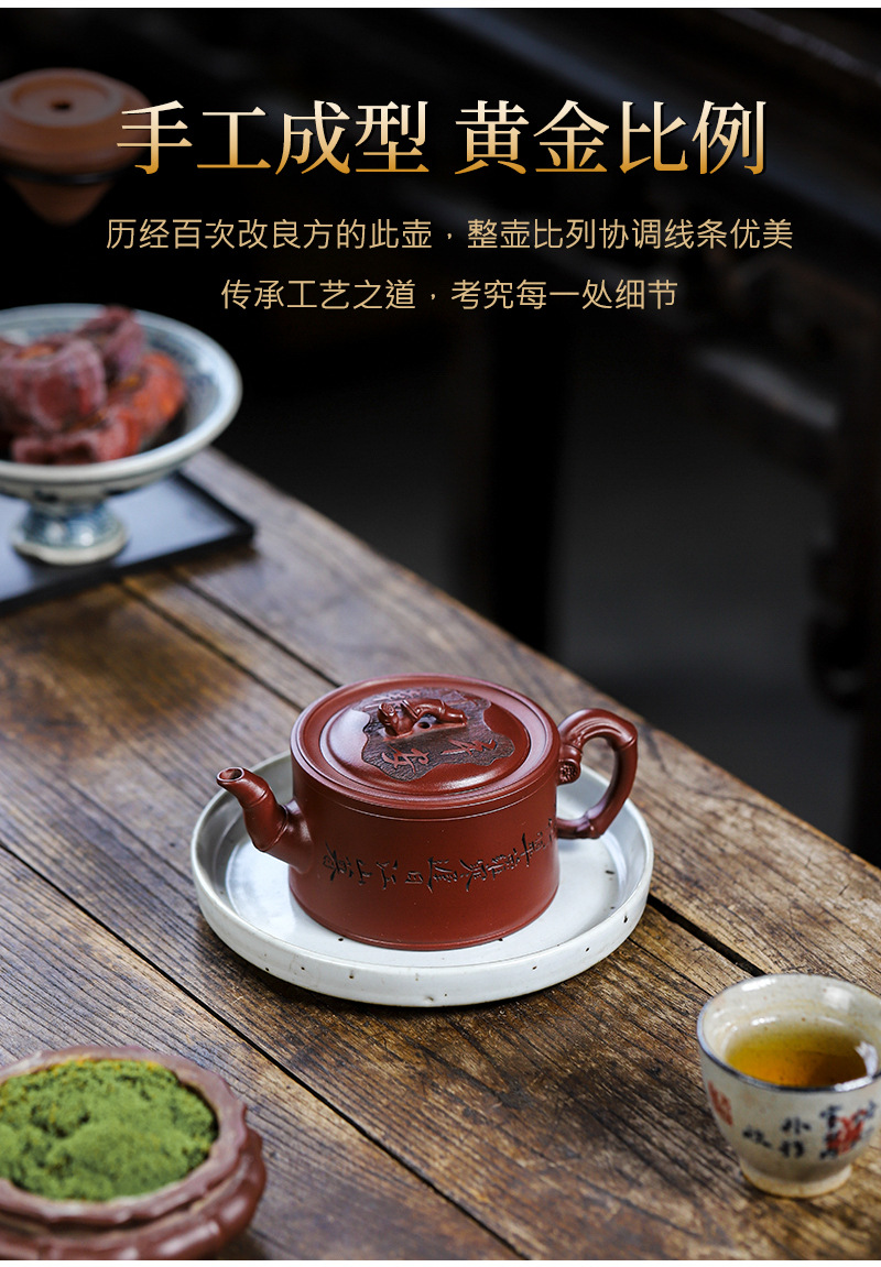 商品名称:宜兴手工紫砂壶证书全 家藏紫泥 竹报平安家用茶具茶壶出水暴爽