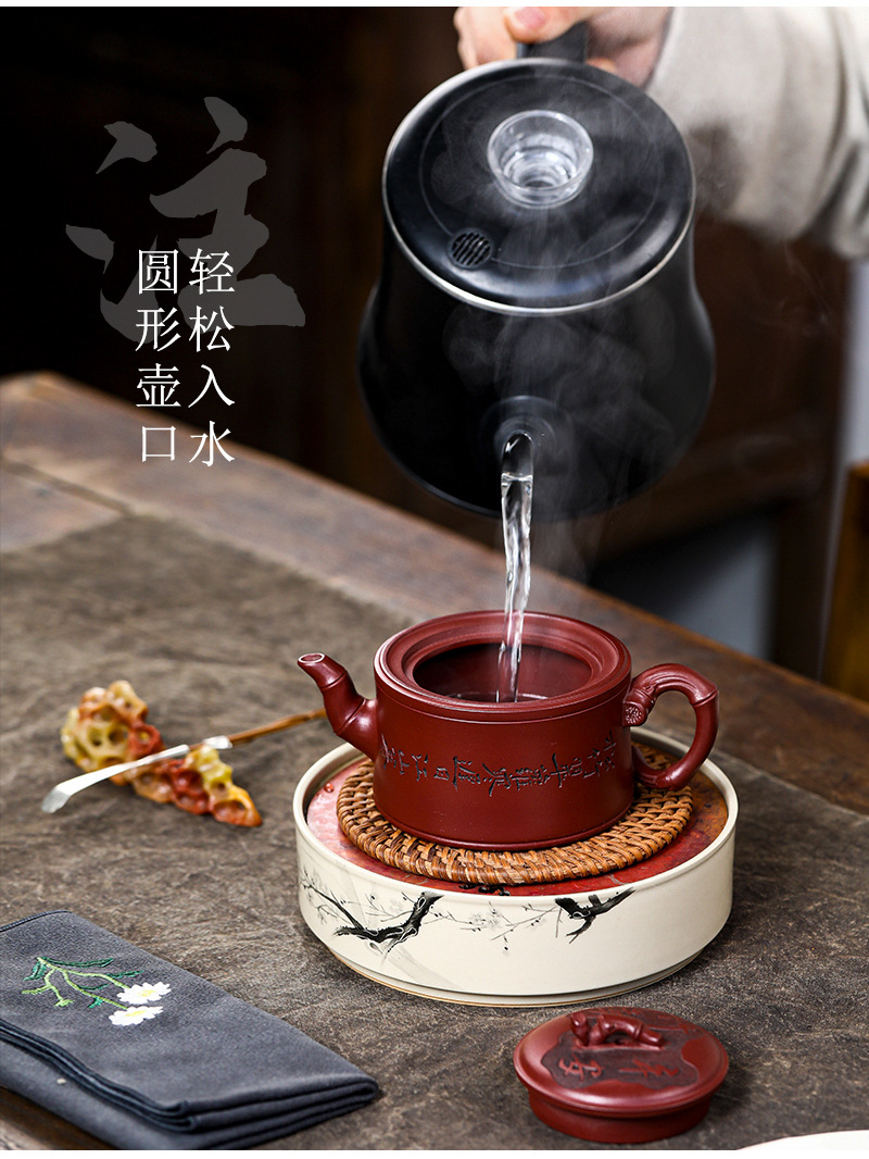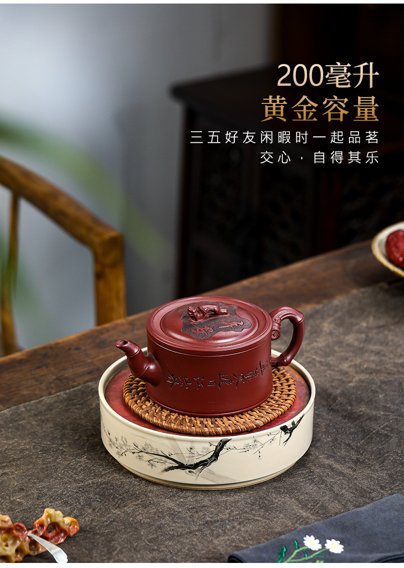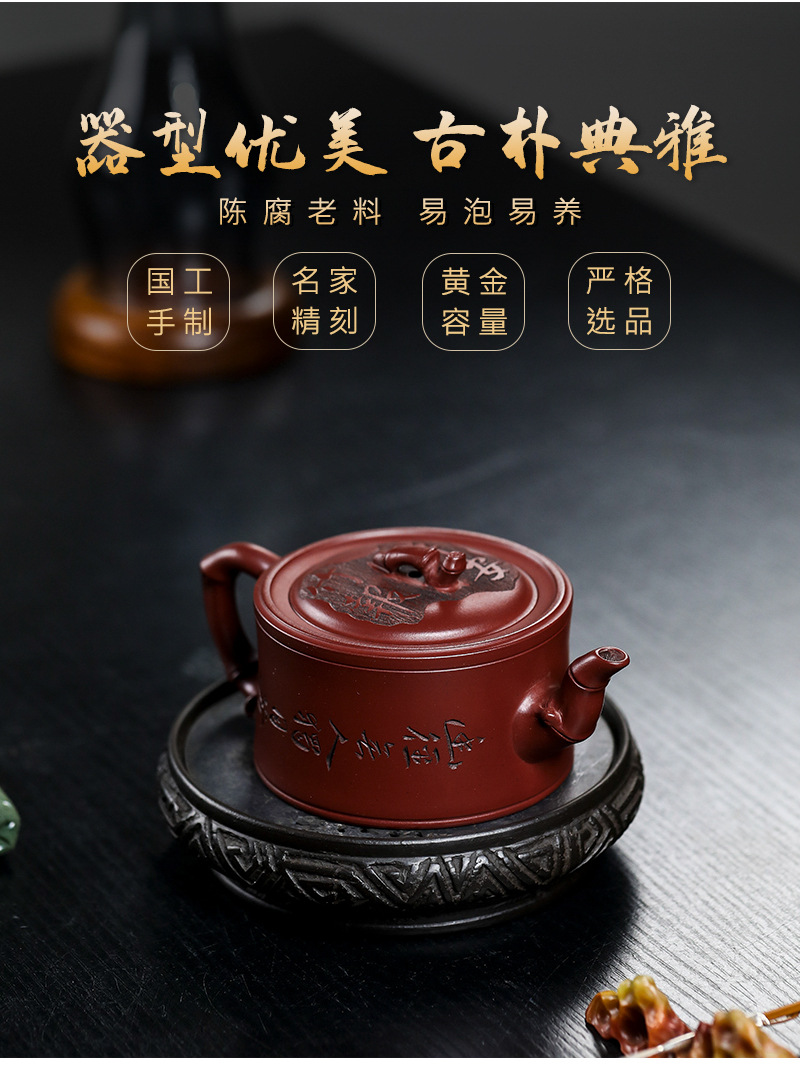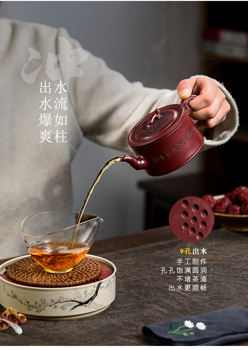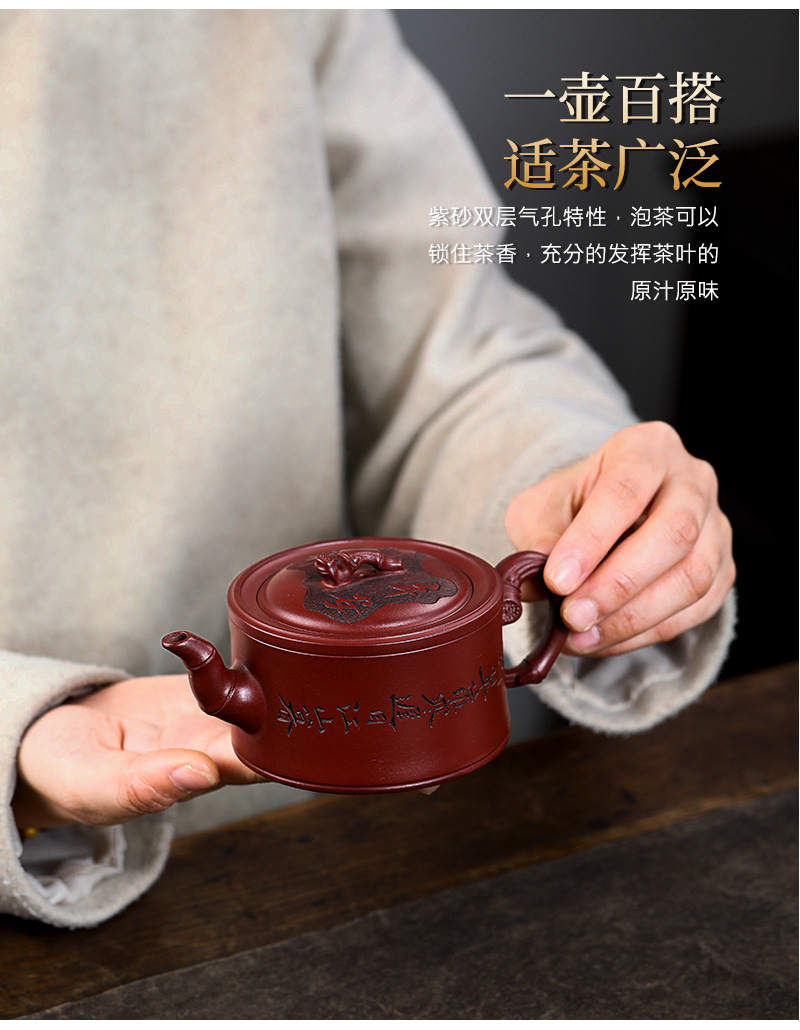 商品名称:宜兴手工紫砂壶证书全 家藏紫泥 竹报平安家用茶具茶壶出水暴爽