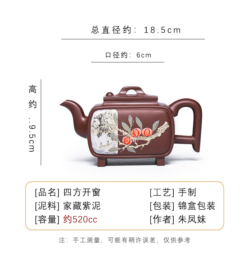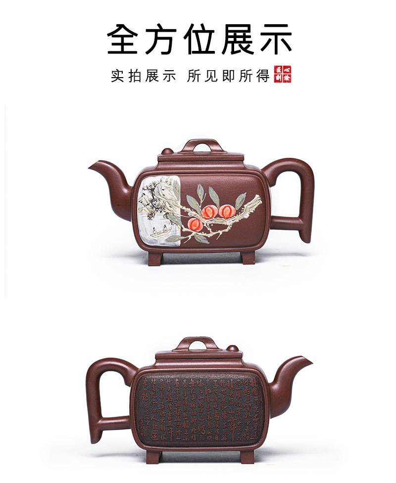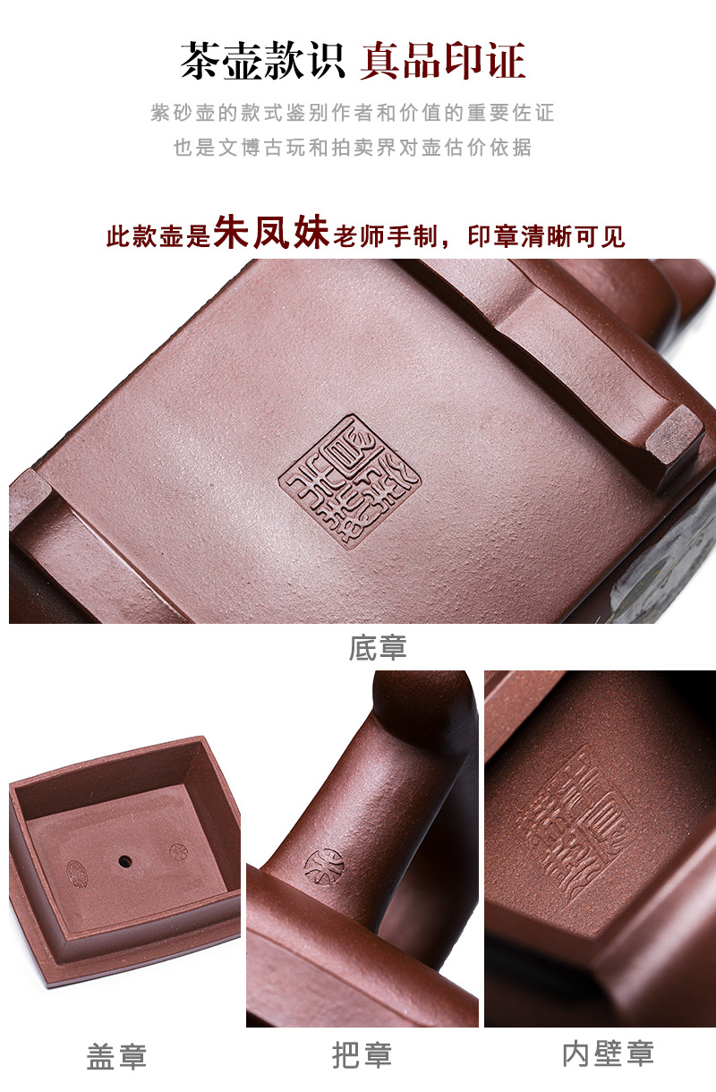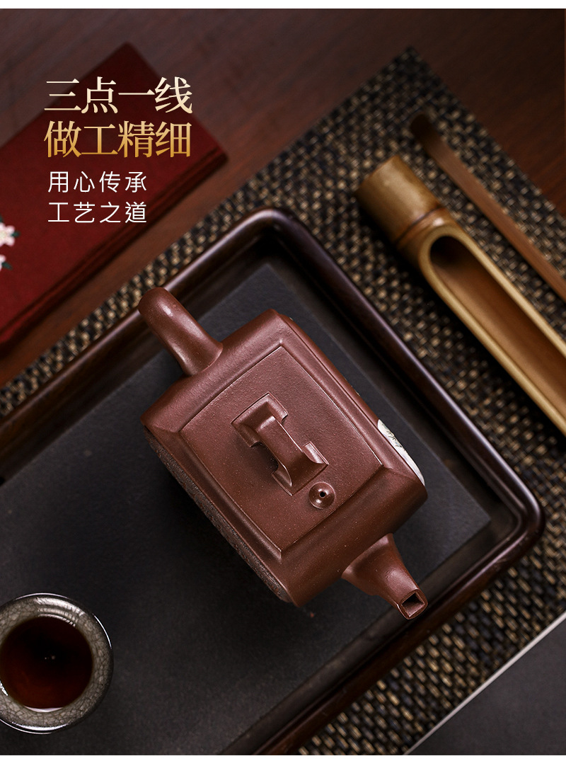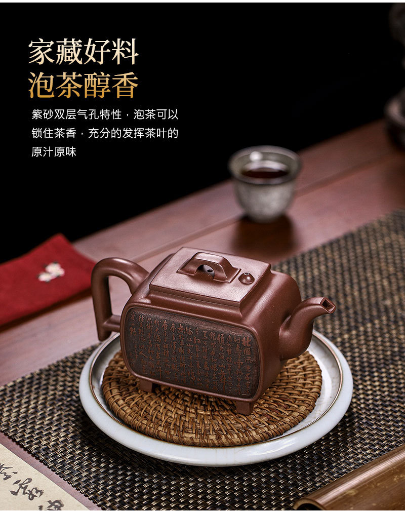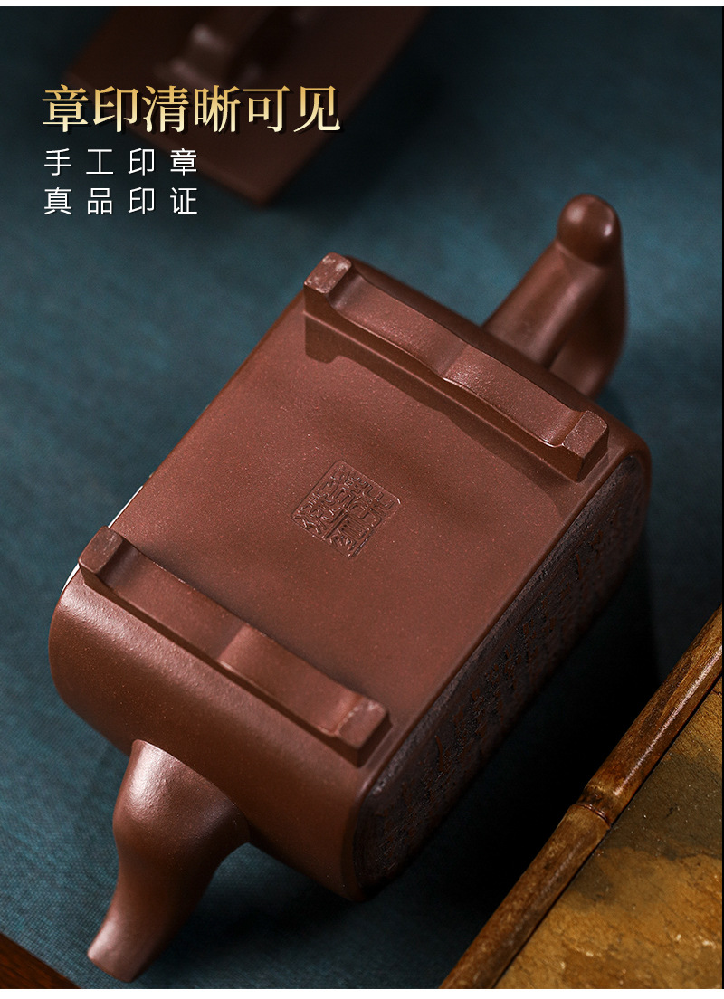 商品名称:宜兴手工紫砂壶证书全家藏紫泥四方开窗易包浆出水暴爽滴水不漏