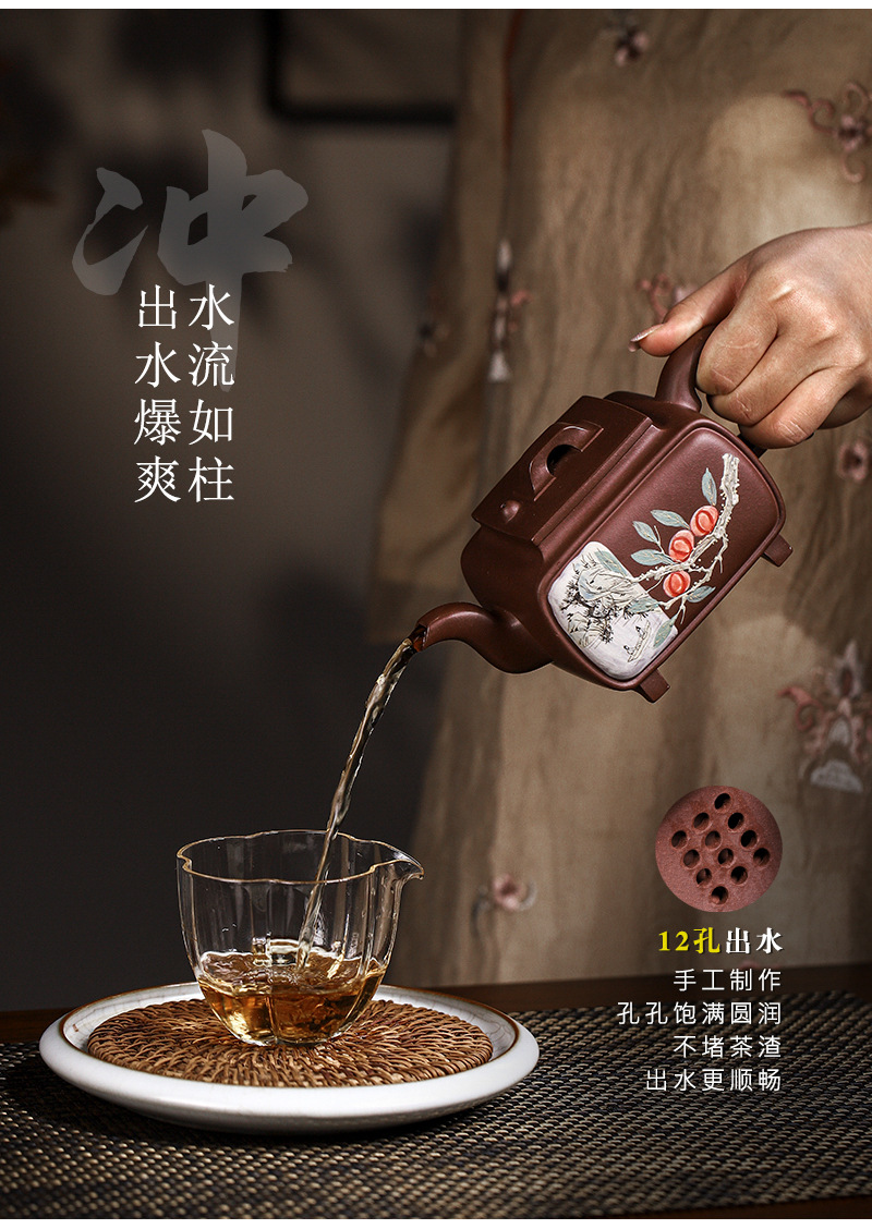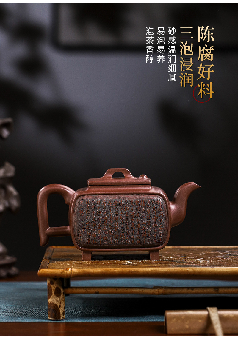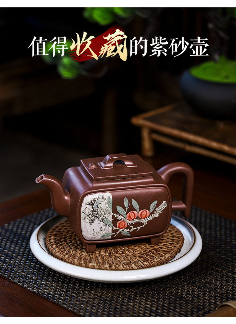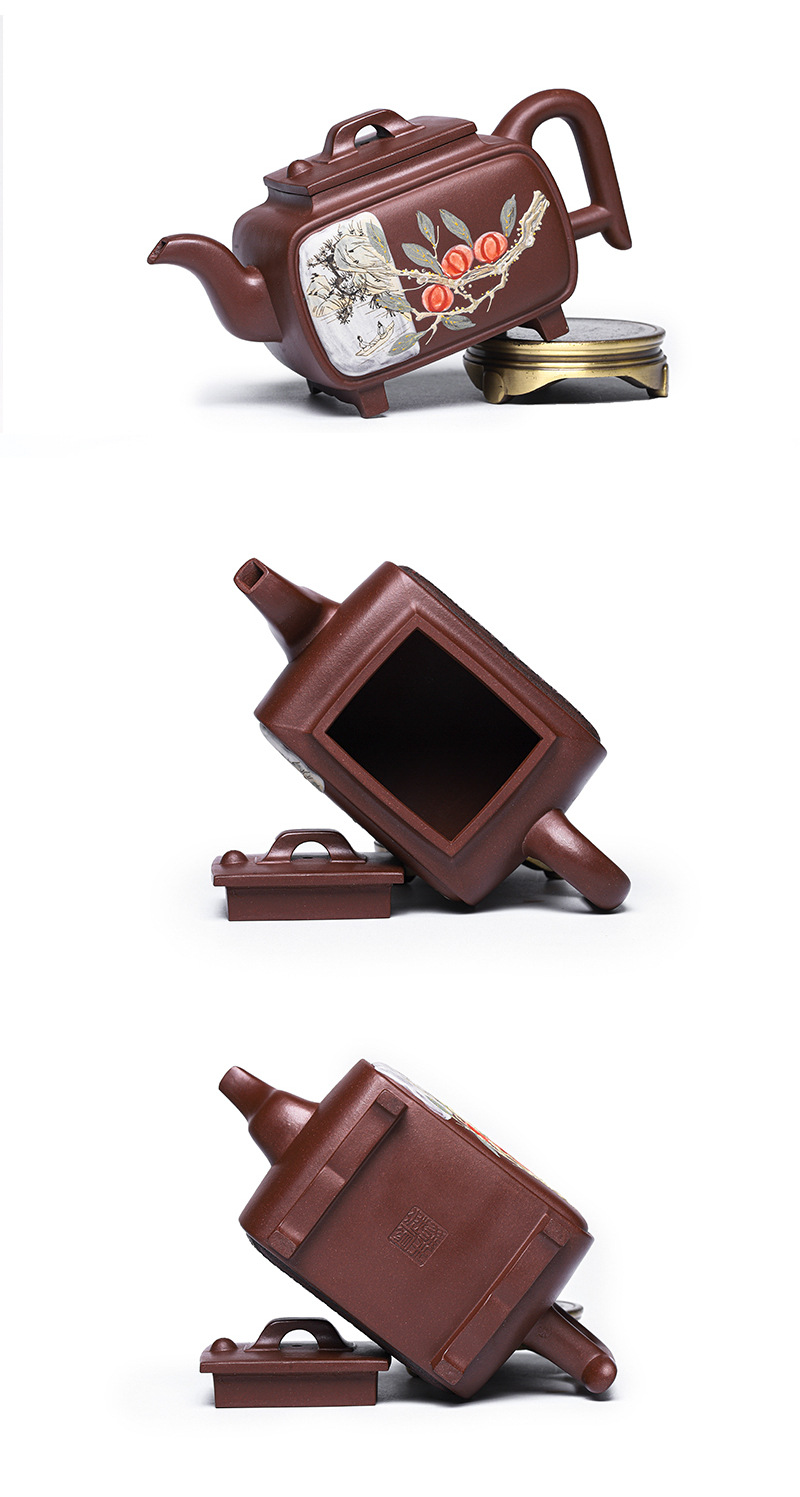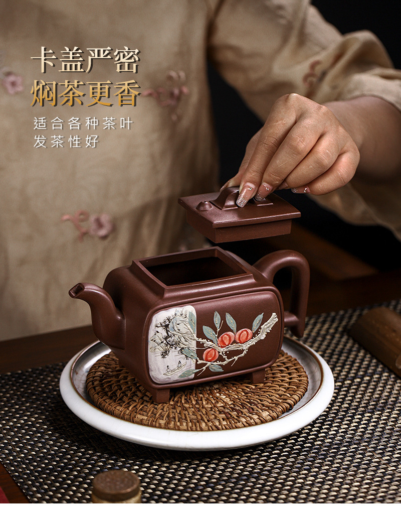 商品名称:宜兴手工紫砂壶证书全家藏紫泥四方开窗易包浆出水暴爽滴水不漏