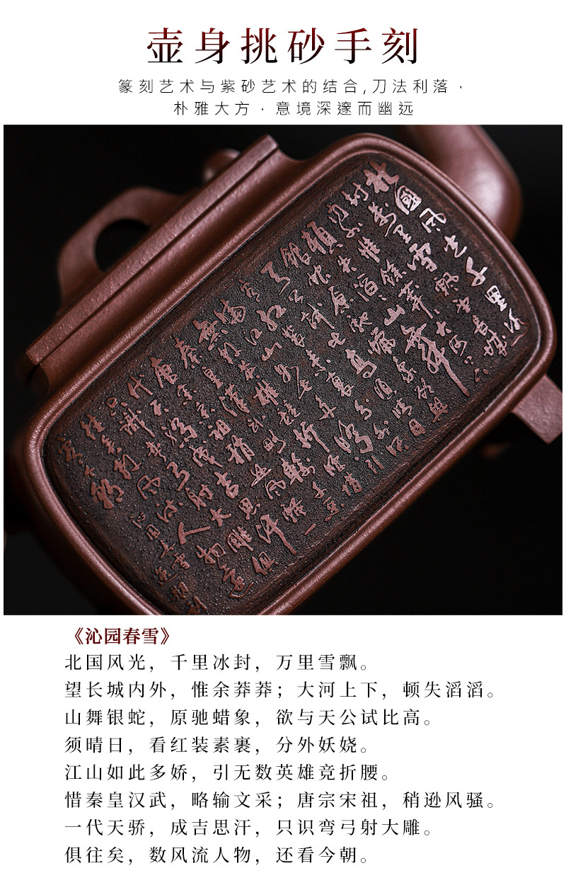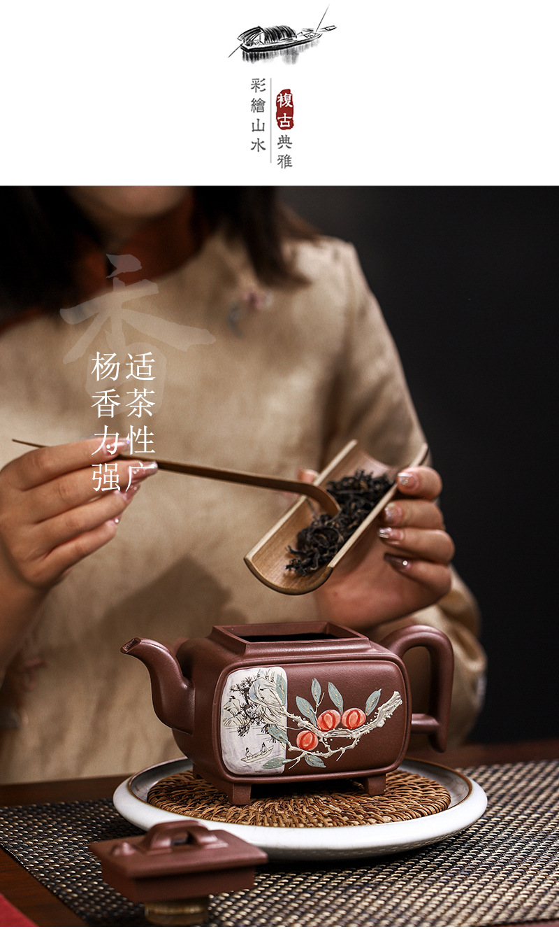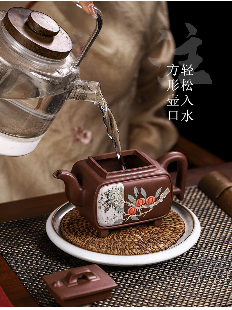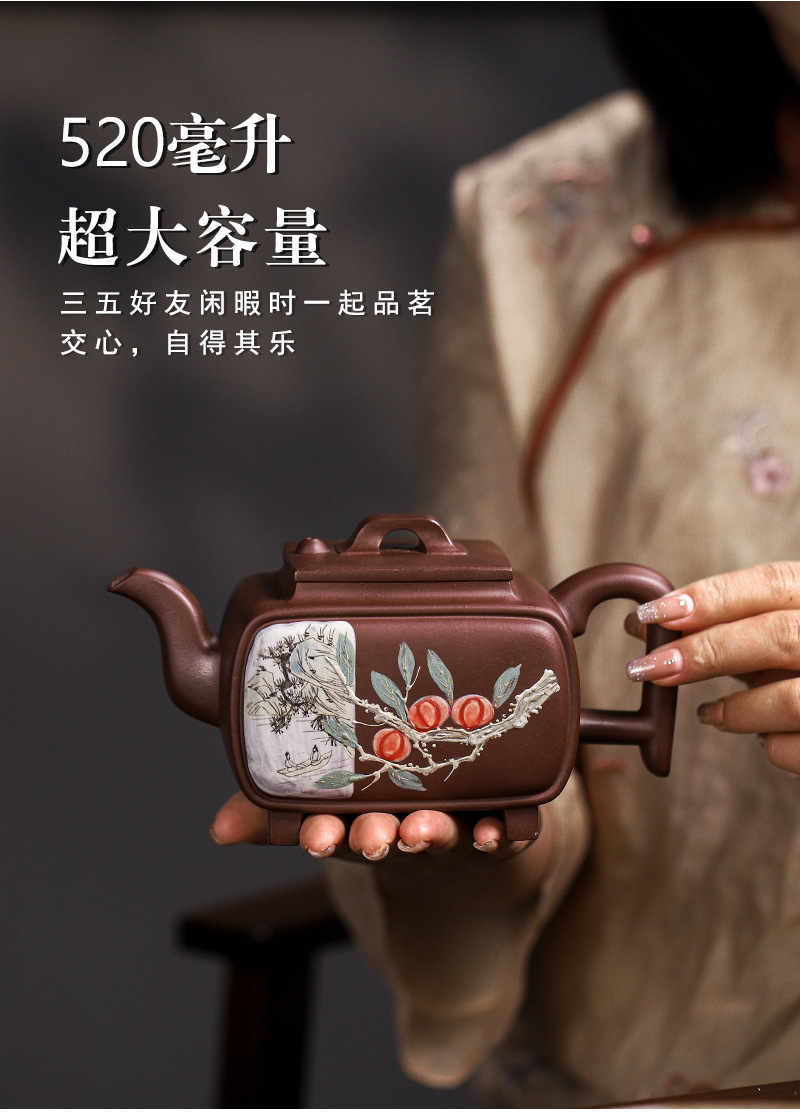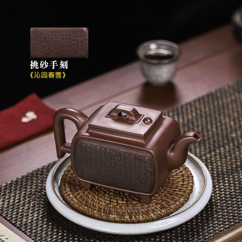 商品名称:宜兴手工紫砂壶证书全家藏紫泥四方开窗易包浆出水暴爽滴水不漏